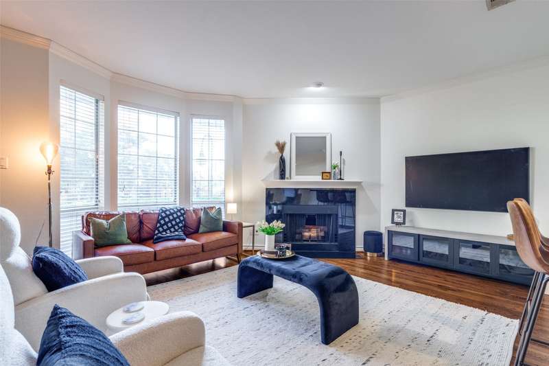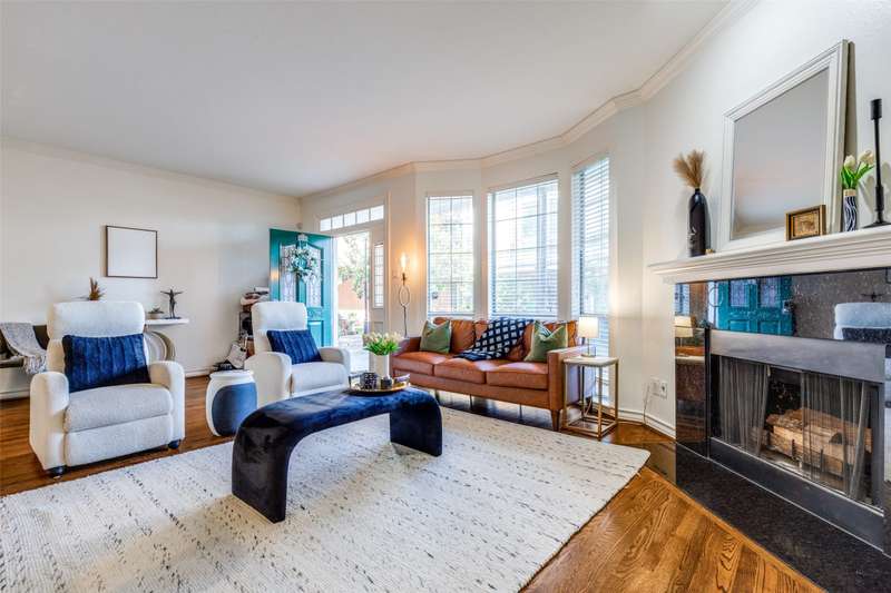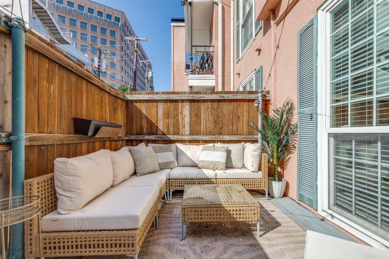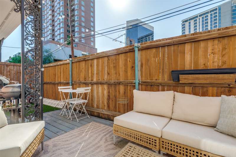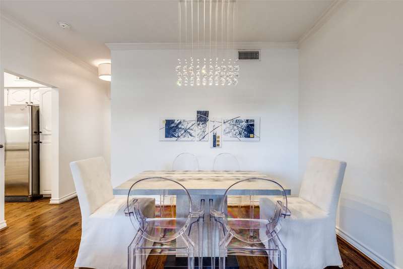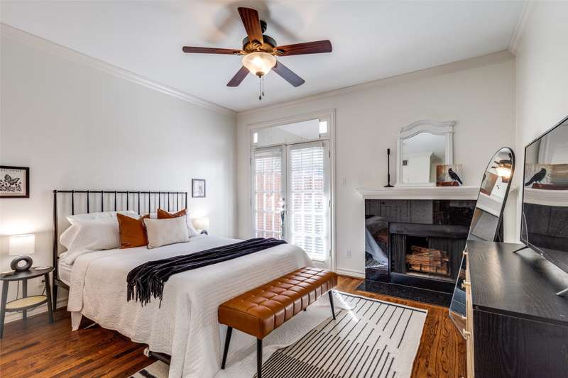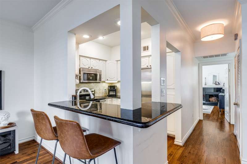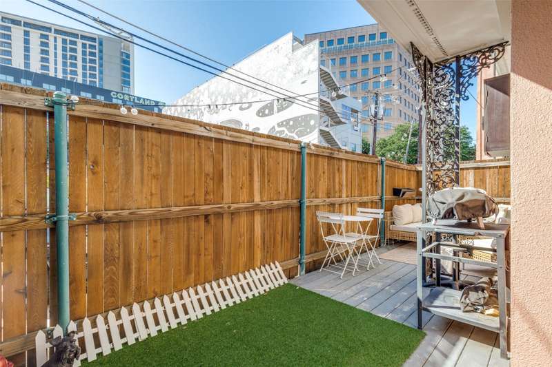 Move in ready, beautiful Uptown Condo with private oversized patio plus a community pool in a stellar location steps from McKinney Avenue with 4-parking passes, including garage space #50. Sophisticated condo with all wood flooring plus tons of natural light with an open floor plan. Private fenced patio area that is 22x9 and offers a great spot for entertaining with friends. Faces a beautiful courtyard with easy access to the sparkling pool. Two wood burning fireplaces add to the overall ambiance. Kitchen is open to the living and dining areas with lots of storage. The primary master bedroom has a custom closet system that is walk-in. Guest bedroom is good sized with a large closet space. Close to vibrant restaurants, night life, grocery, Katy Trail, West Village Shopping & Northpark Mall, Love Field & DFW Airports, Dallas North Tollway, 75-Central Expressway, Downtown Dallas, McKinney Avenue Trolley which is free to ride, Medical District and much more! The location is close to the new Goldman Sachs and Scotia Bank offices. Washer, dryer and refrigerator will convey with the sale of the property. Two pets are allowed with a weight limit of 35 pounds. Washer, dryer and fridge to convey!