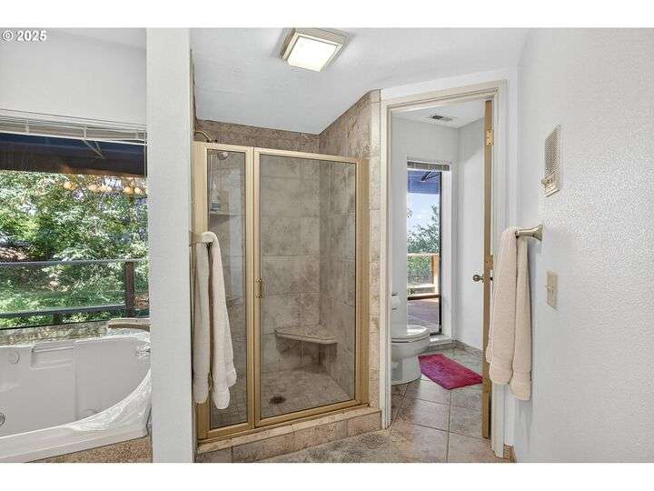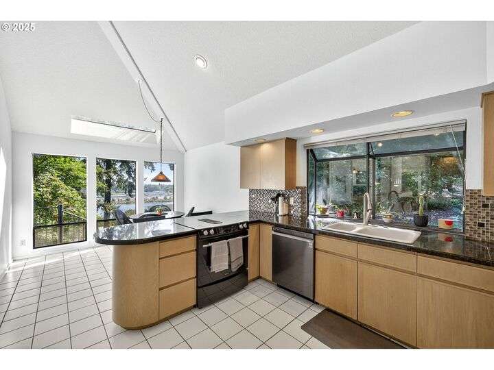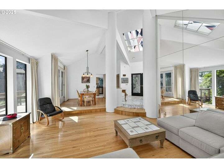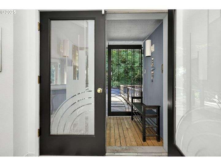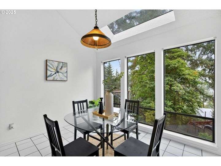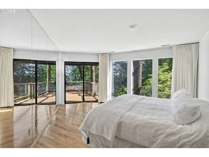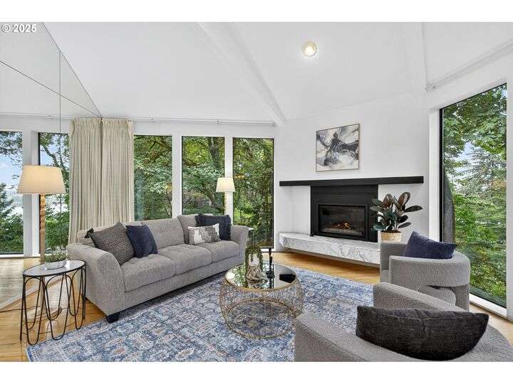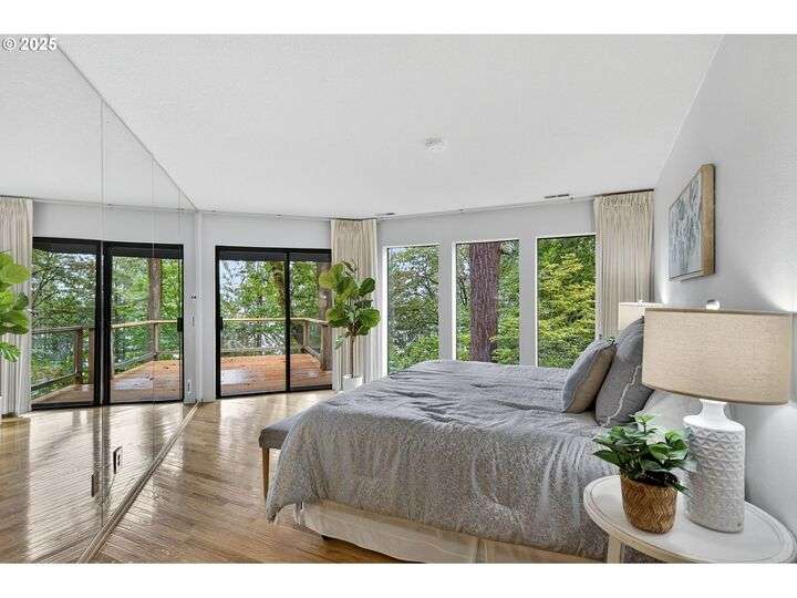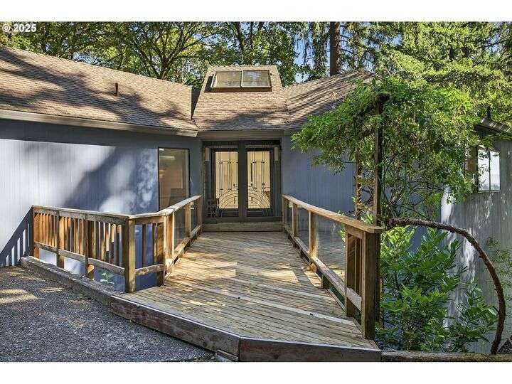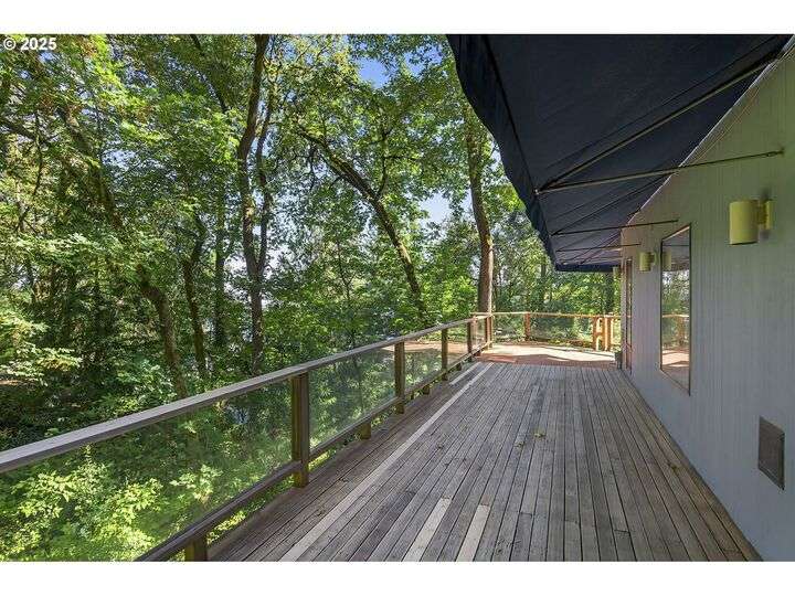 Unique 1980's Northwest Contemporary Home featuring vaulted ceilings on the main, floor to ceiling windows and cedar decks on both upper & lower floors for endless views of the forest & Willamette River. Gas fireplace offers warmth as you take in the endless river and forest views. Solid pier post & beam structure with the original architectural plans available to new owner. The Marbled entry with overhead stained glass skylights flood natural light into step-down living and platform dinning rooms boasting newer oak hardwood floors. The roomy kitchen continues to offer endless river and forest views from the eat-in area and cooktop island. Granite countertops, stainless steel appliances and tile floor compliment an open functional kitchen for more than one chef. All first floor windows reveal river & forest views. Full bathroom & office/den on the main. Primary ensuite two additional bedrooms and a family/entertainment room with wet bar on the lower level. Private lane off Germantown Rd leads to your urban oasis, 15 minutes to downtown, less to Sauvie Island & St John's downtown. Trailhead to Forest park across the street. [Home Energy Score = 1. HES Report at https://rpt.greenbuildingregistry.com/hes/OR10241302]