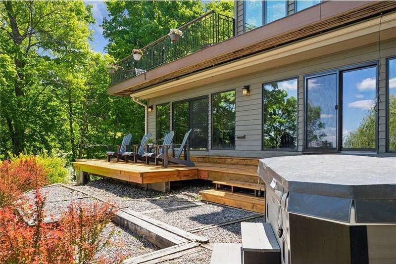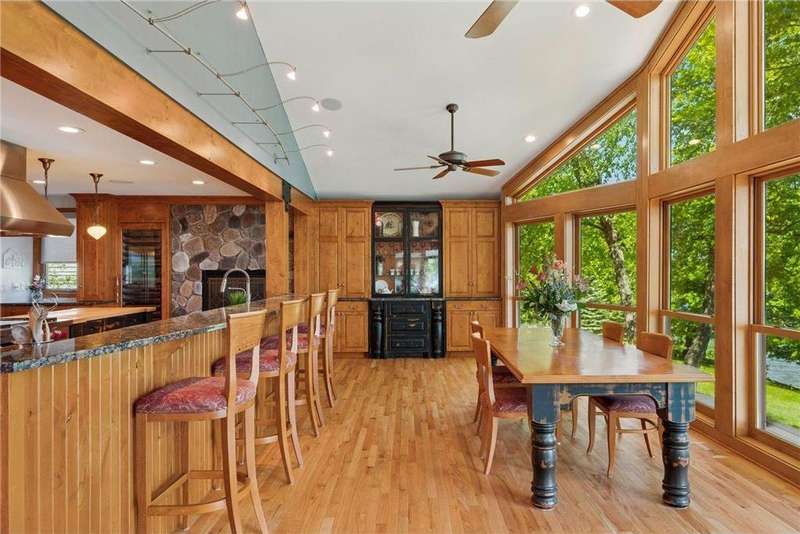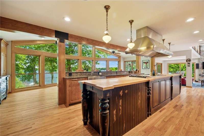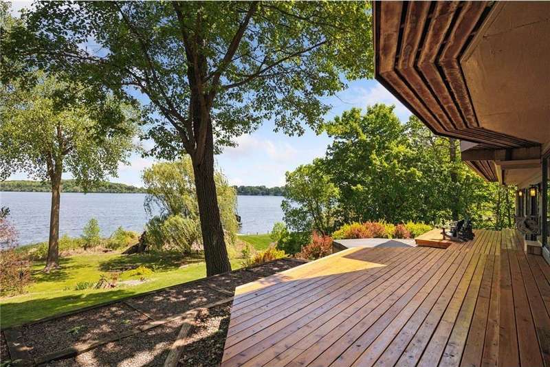 Lake Minnetonka Entertainment Oasis; 4 BR, 4bath, on Halstad’s Bay with $1M+ of updates and upgrades by this owner since their purchase including $100k of Anderson doors and windows that provide commanding lakeside views from nearly every room in the house. Any of these rooms could be next owners’ favorite, but the envy inducing kitchen is matchless, fronted by an entertainment bar all dominated by the 12’ backdrop of floor to ceiling bow-windows. The uber appliance suite includes nearly all that Wolf and Sub-Zero have to offer. The adjacent rooms don’t play second fiddle with choices from the 2-story Sunroom, the Great room centering on the split rock fireplace or the Main Floor ensuite that opens to the magnificent deck. The approach to this private site initially winds through a family friendly n’hood before turning onto an alluring drive flanked heavy woods that protect the site.