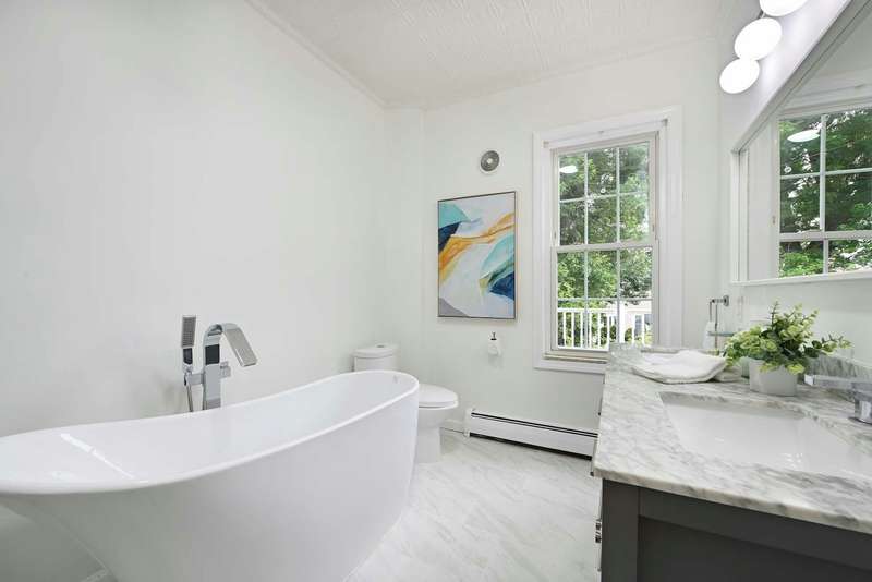 Amazing location! Make an appointment to view this 4 bedroom, 3 bath home located on a beautiful tree-lined street in the heart of Secaucus. The home features hardwood floors, an upgraded kitchen with stainless steel appliances, washer and dryer, ample closets and storage space, wood burning fireplace, and a large balcony on the second level of the home. This residence is complete with a luxury primary bath with an oversized walk-in shower, freestanding soaking tub and double vanity. The finished basement area includes a summer kitchen, a full bath, and a generously-sized cellar area. The home is complete with a backyard to make the perfect combination for seasonal entertaining. Enjoy the built-in BBQ and bar area, have a refreshing drink outside under the shade of the beautiful European-esque trellis and the whisper of the stone water fountain, how relaxing can life get! There is a one-car detached garage with shared driveway. Easy commute to NYC, located at the corner of Grace Avenue and Paterson Plank. Minutes to Route 3 and the lovely downtown area of Secaucus. 4 minutes from American Dream Mall - perfect for shopping, dining, and entertainment. 24x7 NYC bus connectivity - Commuter buses NYC-bound (NJT buses #122) are just 1/2 block away during peak hours, and additional buses (NJT buses #190) are 10-minute walk any time of day. Some pictures have been virtually staged.
