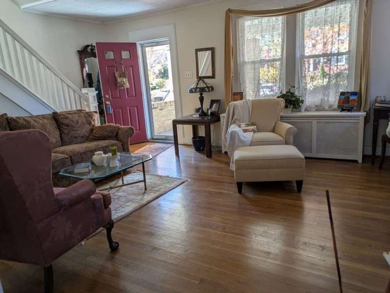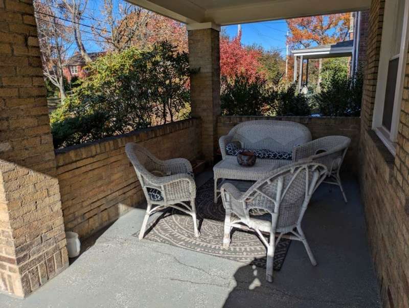 Great location on beautiful, level brick street lined with shaded sidewalks. Classic Four Square architecture. Covered front porch. Dining room with door to 20' x 14' rear deck surrounded by rhododendron. Level yard. Sone faced, gas fireplace in living room. Kitchen has room for small table. Separate Laundry area. Side entrance, integral garage.