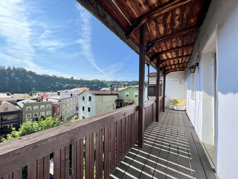 This historic residential building, known as the former Stadtschergenhaus, is situated in a unique location on the edge of Burghausen's old town and offers a fantastic view over the rooftops of the town. The core of the listed building dates back to the late 16th and early 17th century and impresses with its authentic charm and solid substance. On the street side, the house has two storeys, while on the garden side it extends over three storeys - a characteristic of the hillside location, which gives the house a special spatial effect and flexibility. With a living space of approx. 136 m², the building offers a wide range of possible uses. Access is via a quiet pedestrian street. From there, you enter a spacious hallway, from which individually usable rooms open up on both sides. At the rear is a guest WC, the staircase to the upper floor and access to the basement. Particularly noteworthy is the large, bright kitchen with direct access to a long balcony on the garden side - here the view opens up over the garden and the old town and invites you to linger. Adjacent is a cozy living room that rounds off the first floor. The well thought-out floor plan continues on the upper floor: two further rooms on the street side as well as an additional kitchen and a living room with another balcony, this time on the second floor on the garden side, offer ideal conditions for individual living concepts. A bathroom with bathtub is also located here. The top floor offers plenty of storage space and potential for expansion, while the spacious basement - also with direct garden access due to the hillside location - opens up a wide range of possible uses. The idyllic garden can be accessed both from the house and via a separate gate and offers a green oasis in the middle of the city. The building as a whole is in need of renovation and is a listed building. It offers you attractive tax advantages and a wide range of funding opportunities. We will be happy to put you in touch with the right contacts. This property is a real collector's item due to its location, history and substance. It is ideal for people with a sense for the extraordinary who are prepared to make this rough diamond shine with sensitivity and commitment. Come and see all the details and potential of this historic property for yourself and arrange a non-binding viewing appointment with us. As a first step, please send us a written inquiry (via the real estate portal, our homepage or by e-mail) with your full contact details. We look forward to hearing from you!