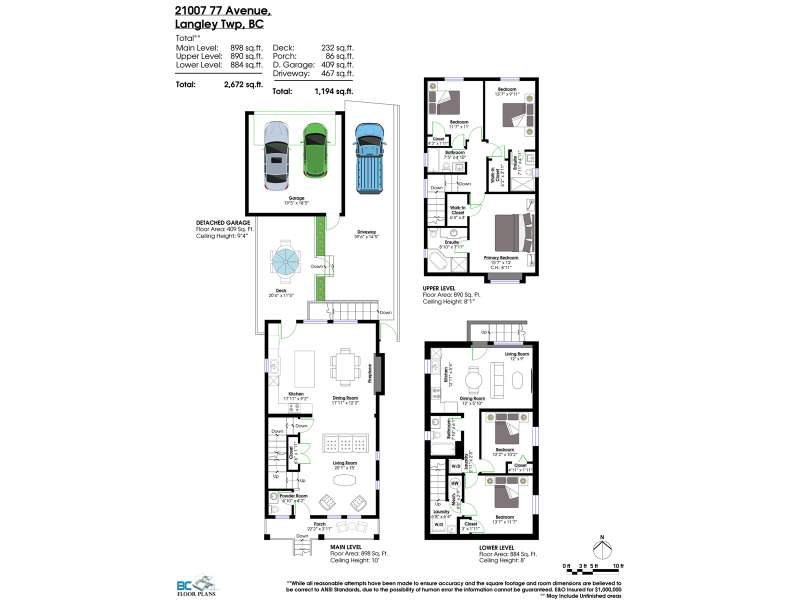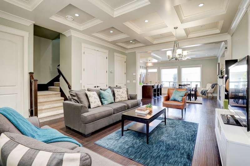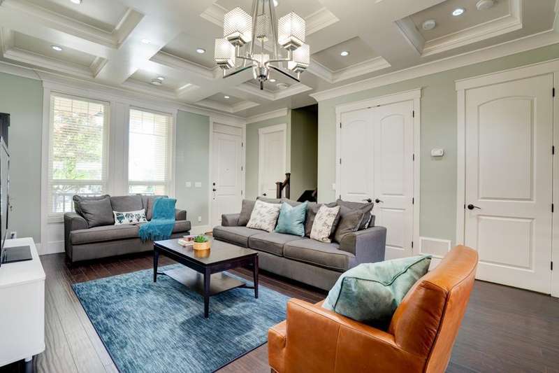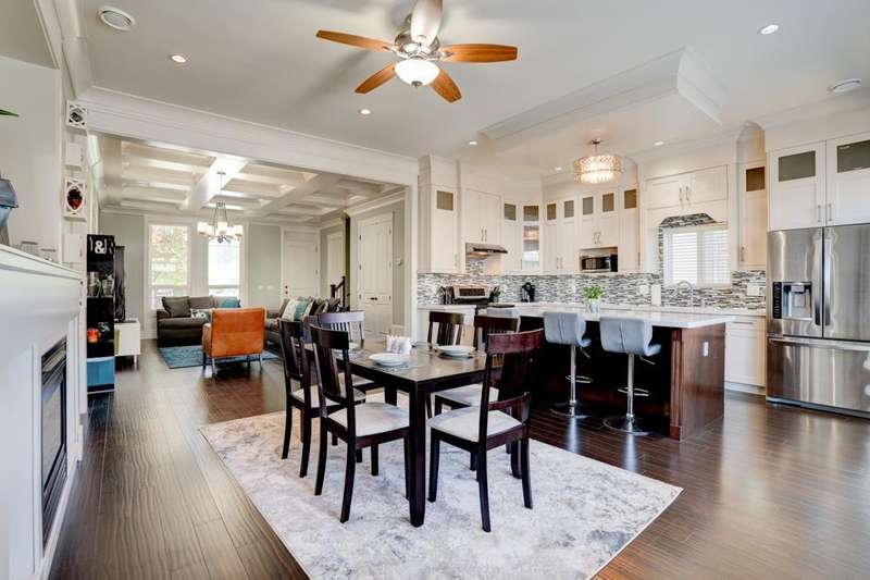 Luxury and comfort meet in this stunning 5 bed, 5 bath Yorkson home. Quality craftsmanship shines with 10' ceilings, coffered details, rich millwork, and a bright open layout. The chef's kitchen features white shaker cabinetry, a massive quartz island, and seamless flow into a spacious living room-perfect for entertaining. Upstairs offers 3 bedrooms, each with a spa-like ensuite; the primary includes a 2-person jacuzzi tub. Bonus: 2 laundry areas and a 2-bed legal suite with a great tenant. Enjoy A/C, pro landscaping, mature trees for privacy, and a two car garage plus 2 extra parking spots. Ideally located in a quiet cul-de-sac in prime Willoughby-close to top schools, parks, shops, dining, Hwy 1, and the upcoming Smith Athletic Park just a block away. (id:58403)