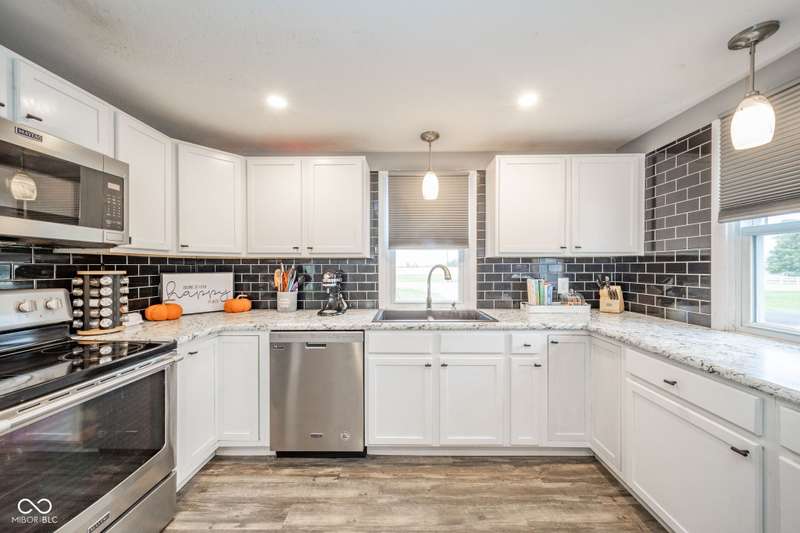 Welcome home to this inviting 4-bedroom, 1.5-bath home offering 1,620 sq ft of comfortable living on a generous 1.23-acre corner lot. Enter into a large living room that flows naturally to an open, updated kitchen with a tile backsplash, ample cabinet space, and wonderful natural light. Straight through the living room, french doors open to an enclosed porch that overlooks the large, fenced backyard - complete with a patio, paver firepit and storage shed, perfect for gatherings and outdoor play. Back inside, opposite the main living area are four bedrooms, highlighted by a spacious primary bedroom with double closets. The full bathroom features a double-sink vanity and a large linen closet. Off the kitchen area you'll find a convenient half bath, a laundry area, and access to the attached one-car garage and the basement. The basement includes a finished room that makes an ideal rec room, home theater, or play space. Curb appeal, ample parking, large yard, bedroom and storage space, make this home stand out on the market.
