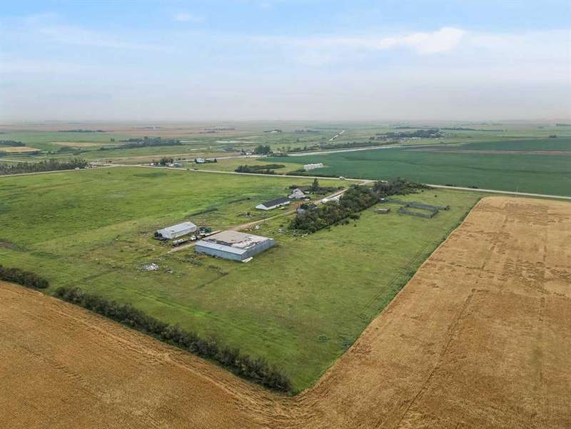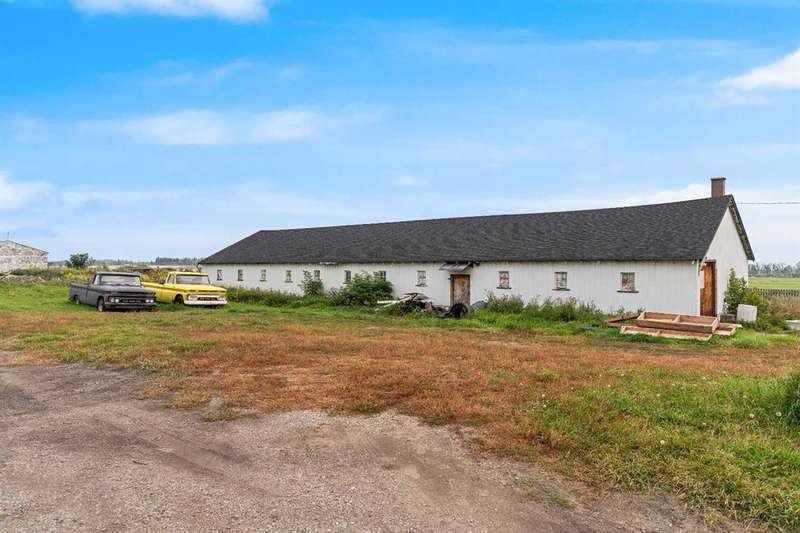 Located just minutes East of Calgary, close to Delacour Golf Course. This property has convenient direct access off the highway. Making it highly visible and ideal for future commercial or other redevelopment purposes (subject to approval and permitting by the city/ municipality). This massive parcel of land offers 13 acres has one primary residence, and several outbuildings. The primary residence consists of a 1575 sq ft bungalow with a newer roof and a fully suited basement. Offering 3 bedrooms up with 1.5 baths, a shared laundry space, and a 1 bedroom suite in the basement with its own kitchen area, two large rec rooms, a 3 pc bath and cold storage room. This is currently being rented along with two additional out-buildings. A 99’4” x 31’3” shop being rented to a car enthusiast, along with another workshop totaling 800 sq ft being rented as a storage area. There are currently 3 active tenants creating passive income. Please see private remarks for details and terms of lease agreements. This is a great hold property or ideal for someone with a vision. Due to the location and parcel of land it could be used for future residential development, storage facilities ( RV’s, boats, equipment), animal boarding, farming, event spaces, farmers market, shops etc. ( subject to approval and permitting by the city/ municipality). Interior photos of primary residence available upon request.