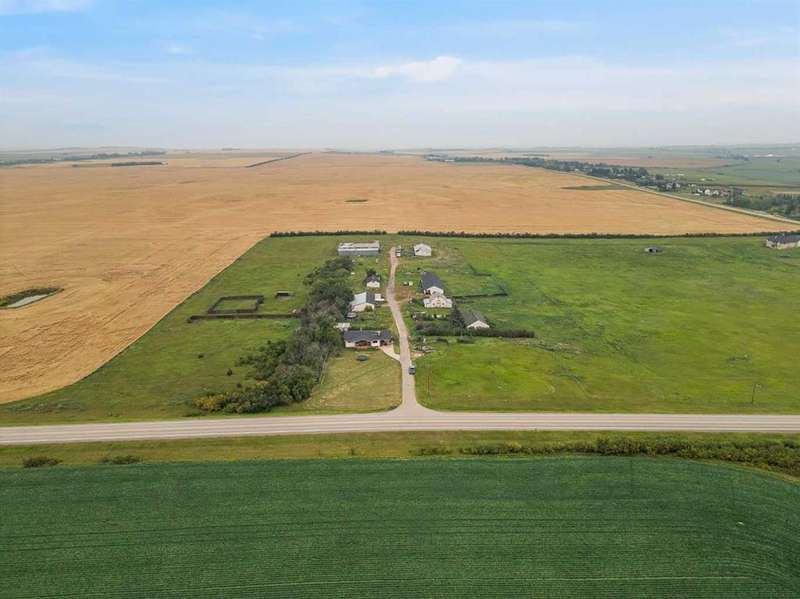 Located just minutes East of Calgary, close to Delacour Golf Course. This property has convenient direct access off the highway. Making it highly visible and ideal for future commercial or other redevelopment purposes (subject to approval and permitting by the city/ municipality). This massive parcel of land offers 13 acres has one primary residence, and several outbuildings. The primary residence consists of a 1575 sq ft bungalow with a newer roof and a fully suited basement. Offering 3 bedrooms up with 1.5 baths, a shared laundry space, and a 1 bedroom suite in the basement with its own kitchen area, two large rec rooms, a 3 pc bath and cold storage room. This is currently being rented along with two additional out-buildings. A 99’4” x 31’3” shop being rented to a car enthusiast, along with another workshop totaling 800 sq ft being rented as a storage area. There are currently 3 active tenants creating passive income. Please see private remarks for details and terms of lease agreements. This is a great hold property or ideal for someone with a vision. Due to the location and parcel of land it could be used for future residential development, storage facilities ( RV’s, boats, equipment), animal boarding, farming, event spaces, farmers market, shops etc. ( subject to approval and permitting by the city/ municipality). Interior photos of primary residence available upon request.
