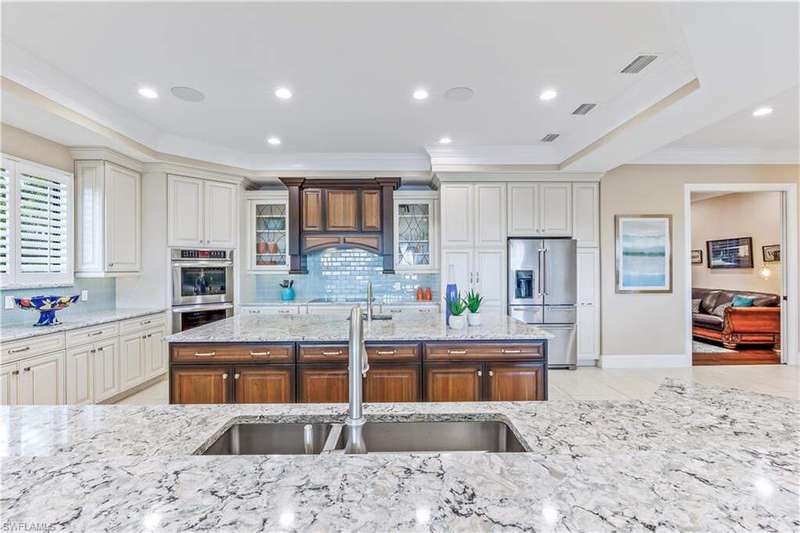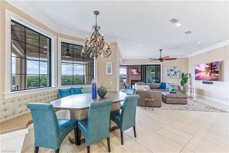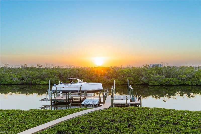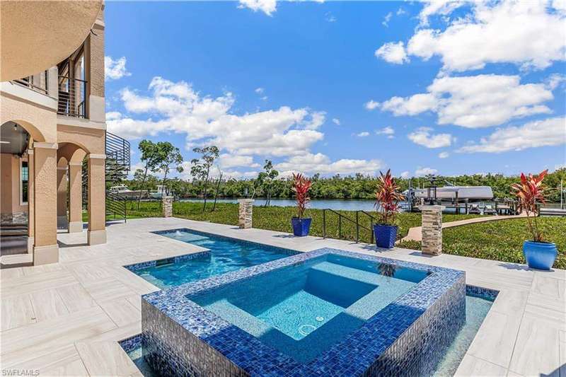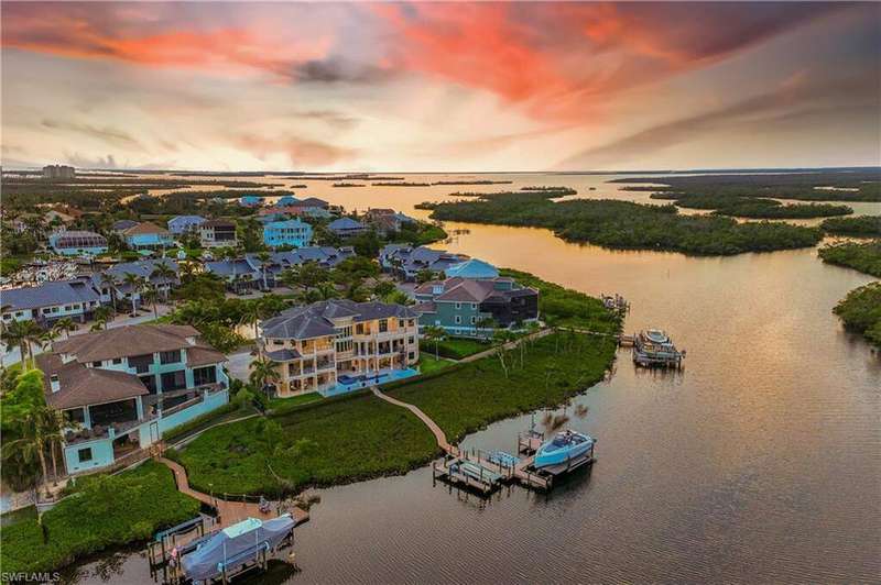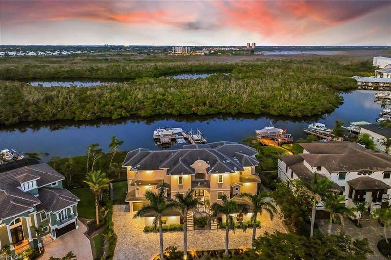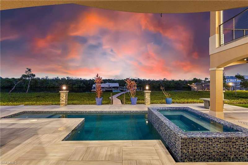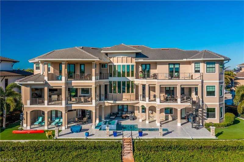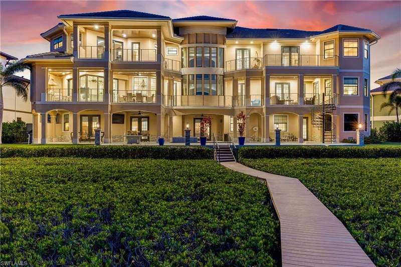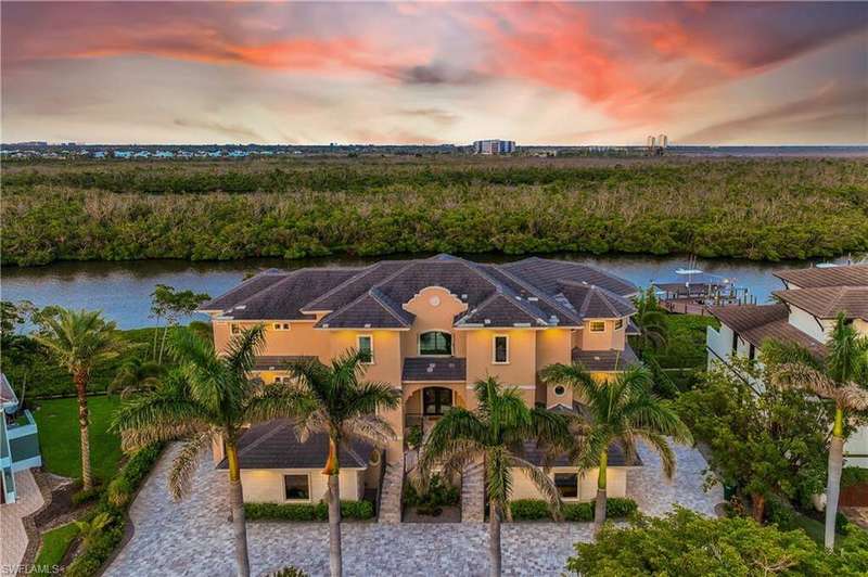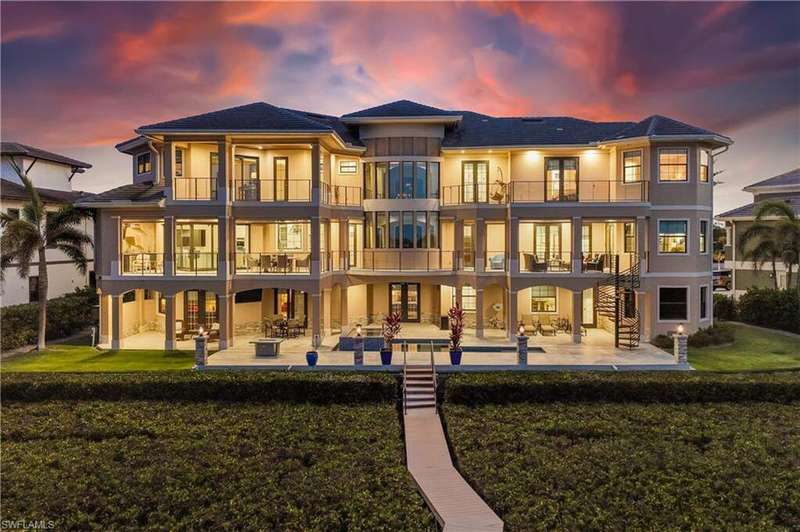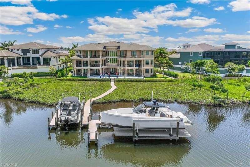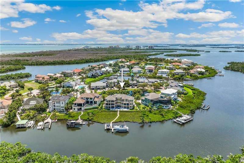 WATERFRONT LIVING AT ITS FINEST....Masterful design & coastal contemporary are uniquely embodied in this luxurious estate on a private island in Jonathan Harbour. Spanning over 13,000 SF, this magnificent waterfront residence is a haven for gazing at bay front views from multiple vantage points. Whether its the gourmet kitchen featuring premium custom cabinetry, quartz counters, large peninsula island breakfast bar, walk-in hidden pantry and stainless appliances; or the two-story sophisticated dining room with volume ceilings and windows; or the cozy great room allowing you to entertain in style while guests spill out to the outdoor living area with built-in BBQ grill + gas fireplace; this 5B/6.5BA home defines true modern day elegance. The fully furnished, multi-level home includes an elevator; exercise room; den; home office; extra large laundry/utility room; pool; spa; gas fire pit; oversized 5-car garage and a non-conforming lower level with 2 bedrooms, full bath, full size kitchen, great room and an impressive full size bar -- allowing space and privacy for the long-term out of town guests. The primary suite features breathtaking sunrise views on its large private balcony, opulent his/her en-suites and dual custom closets. Additional private guest suites - all include en-suite baths, generous closets and bay views as well. Nestled along the serene shores of Connie Mack Island, this stunning coastal retreat comes with two large boat slips w/ lifts (27k lb + 10k lb) with direct access to the Bay and Gulf in minutes. Truly a boater's paradise perfectly situated near Sanibel and Captiva Island. If you are pursuing the ultimate Southwest Florida Coastal Lifestyle....we invite you to view this exclusive waterfront property.