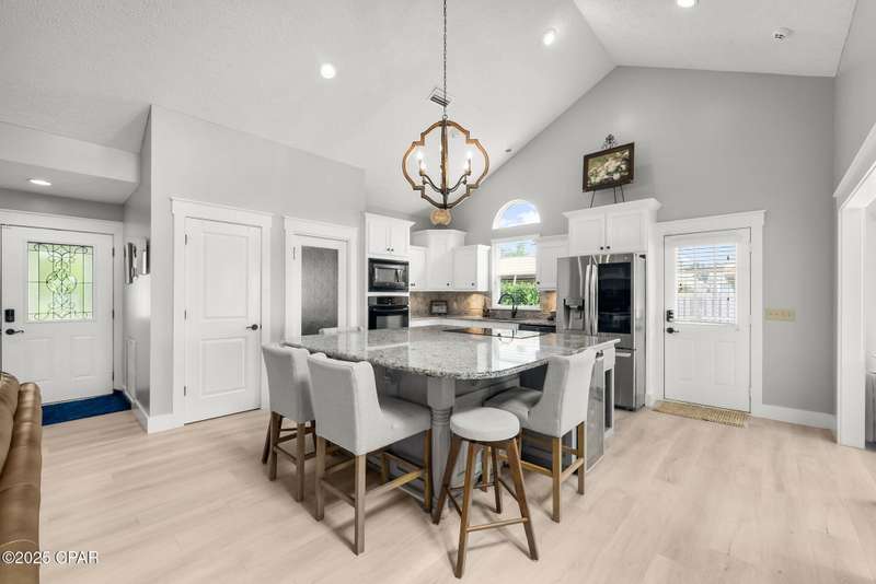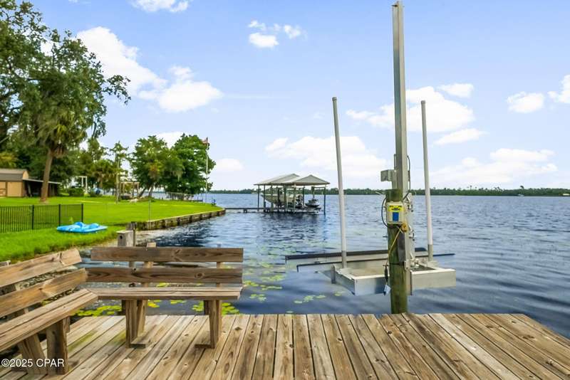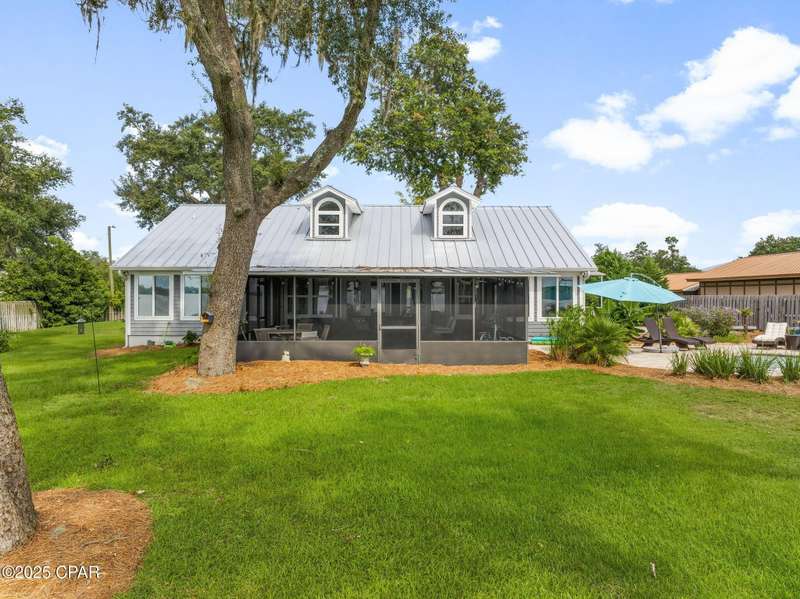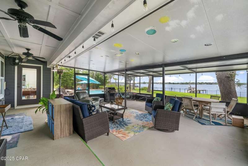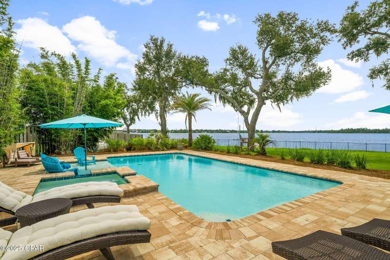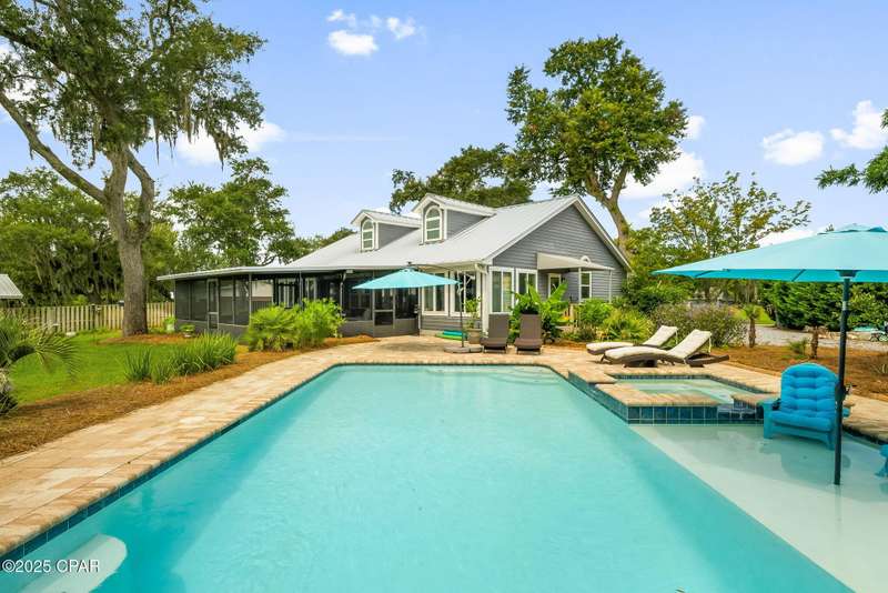 Situated on a spacious .62-acre lot, this inviting lakefront home boasts high ceilings and an abundance of natural light, creating a warm and open atmosphere. The open floor plan includes 3 bedrooms and 2 bathrooms, providing ample space for both relaxation and entertaining. Step outside to the expansive screened in back porch, that allows you to enjoy the tranquil lake views while staying protected from the elements. Surrounded by majestic oak trees, this outdoor oasis offers the perfect setting for entertaining, dining, family activities or simply unwinding with a good book.With a private dock featuring a jet ski lift, a newly installed saltwater pool with a sun ledge and hot tub, and a prime location on a private road, this lakefront home offers the ideal combination of luxury and comfort. Don't miss the opportunity to make this charming property your own personal lakeside retreat.