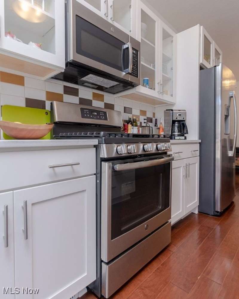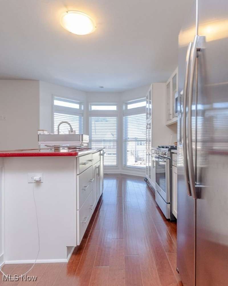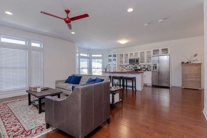 AVAILABLE NOW! Fabulous contemporary 3-story loft inside CROCKER PARK with 2 bedrooms, 2 ? baths and a PRIVATE ROOFTOP DECK for outdoor entertaining. PERFECT END UNIT location with greenspace, woods, and garden views. Enter into an elegant foyer leading to the second floor living level, with hardwood flooring in the dining room and kitchen. UPGRADES include: custom white glass cabinetry, stainless steel appliances with gas stove, designer lighting fixtures, deluxe pantry, and a breakfast bar with quartz countertop. The Master suite & guest bedroom are on the third level. Master has a wall of windows, an on-suite bathroom with double vanity sinks, an enormous walk-in 2-person tiled shower, skylight, and large walk-in closet. For convenience, a washer and dryer are also located on the bedroom level. Deluxe 2-car attached garage. **Owner has installed two new wall mounted TV's in this townhome for Tenants usage. Walk to shopping, restaurants, the wine bar, etc., RIGHT OUTSIDE your front door. Close to I-90, I-480, downtown, and the airport.
