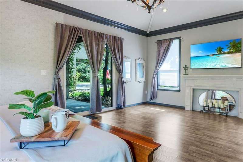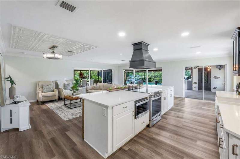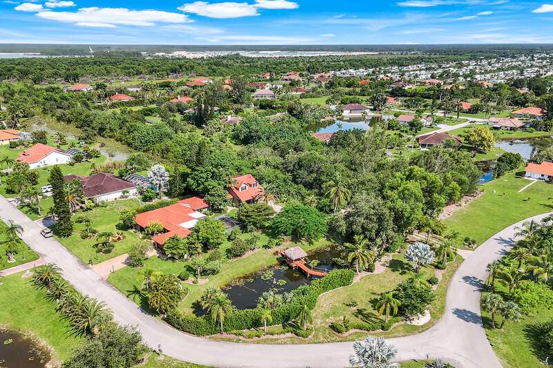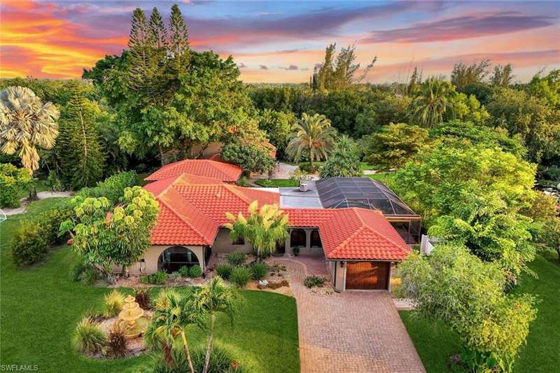 A triumph of timeless design, craftsmanship, and grandeur, this extraordinary ~5,000-square-foot in total Spanish-inspired villa is truly one-of-a-kind. Nestled on 1.54 acres with an additional bonus lot and separate street access, this rare single-family compound spans over 2.5 lush, private acres in the highly desirable Bell Villa-now part of the vibrant Bonita Terra community in the heart of Southwest Florida. Remodeled in recent years, the estate blends privacy, space, and versatility-ideal for those who crave comfort and freedom. Whether you're looking to garden, entertain, work from home, raise a family, or simply relax in your own sanctuary, 12305 Avida Lane delivers it all. The meticulously landscaped grounds unfold like a private oasis: a serene pool with waterfalls and fountains, a pond framed by lush gardens, romantic fountains, and a private tiki hut-perfect for morning coffee or sunset cocktails. The expansive lawn provides space for gatherings and grand entertaining. And just when you think that's all-this home continues to impress. A new oversized, air-conditioned garage with 8-foot doors comfortably fits 3-4 vehicles plus all your toys, and includes an upstairs guest suite and game room-the ultimate escape for fun and relaxation. An attached mother-in-law suite with a full kitchen, private bath, and separate entrance offers income potential or seamless integration into the main living space for multigenerational living. Inside the main home, the gourmet kitchen features quartzite counters, induction cooktop, and ample storage-sure to delight the chef in the family. Enjoy year-round alfresco dining with a fully equipped outdoor kitchen in the screened lanai. The tile roof was replaced in 2019, and the septic and drain field were updated in 2016. The property is a garden lover's dream, with mature fruit trees, and magical landscape lighting throughout the property for stunning twilight ambiance. As a resident of Bonita Terra, you'll also have the option to enjoy resort-style amenities for a nominal fee, including tennis, pickleball, bocce, shuffleboard, two pools, clubhouse, gym, and a ball field. The community comes alive in season with pickleball tournaments, golf cart parades, and social events galore. This estate is more than a home-it's a lifestyle sanctuary waiting for its next chapter.