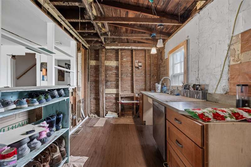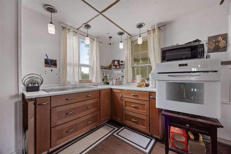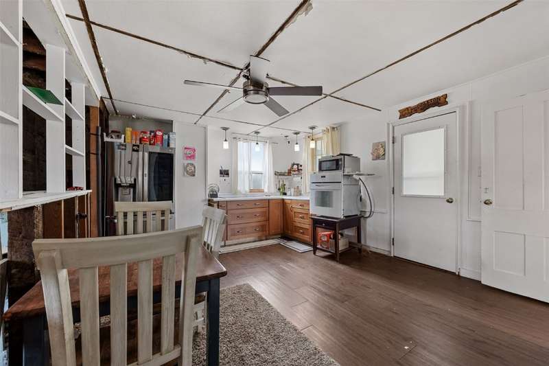 This home is in a very nice location in Watkins. This property has over ½ acre and boasts of a newer 4-car (1008 sq ft) detached garage, a 3-bedroom 1.75 story home with a large deck. In 2022 new siding, soffits, fascia, gutters were added to the house and garage. There is a fenced yard, pet fence and garden area. Kitchen, first floor laundry and bath were being remolded when sellers decided to sell. Refrigerator, washer / dryer new in 2022, induction cooktop new in 2023. There is several items that will be included with the house; Kitchen cabinets that are all quarter-sewn oak with soft close and hinges, including 2-pull out spice cabinets, toe kicks, a tall unit for the wall oven and microwave, 3 x 5 shower, including base pan, surround, glass doors, a jet tub, several building supplies; plywood, insulation, dry wall etc. This property is sold “as is”. Seller says "make an offer".
