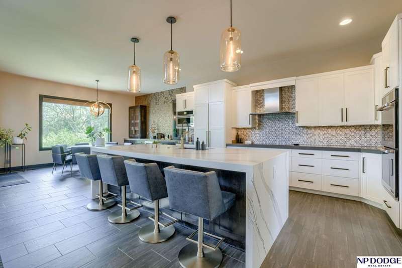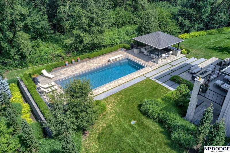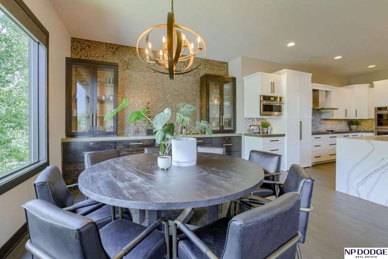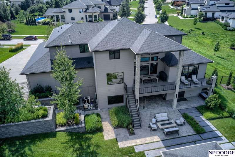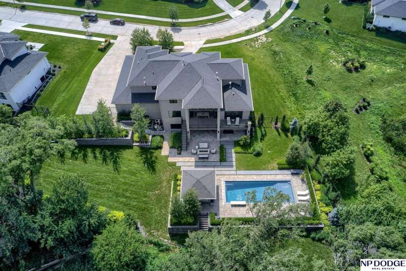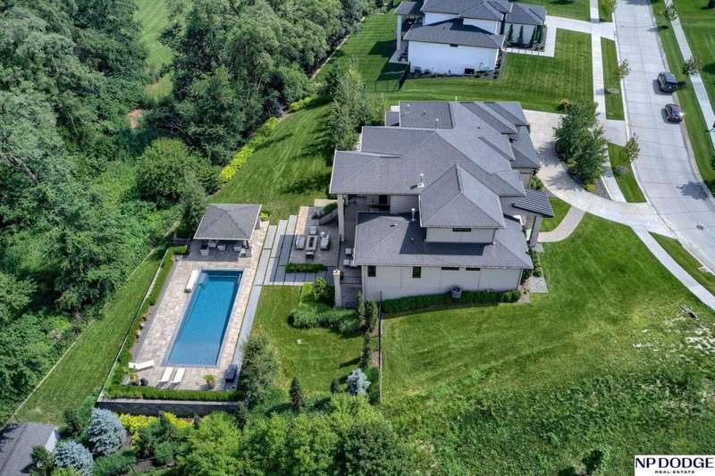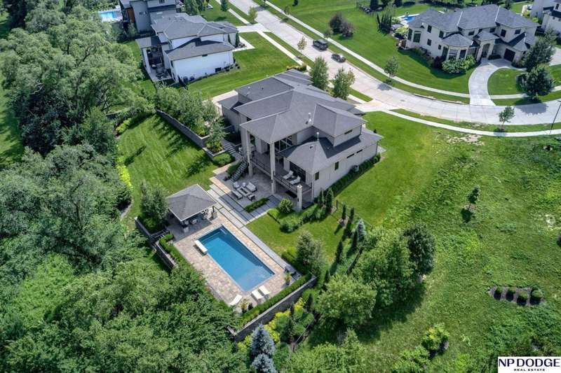 Over 6,200 sq. ft. of luxury in this 6 bed, 6 bath home with 5-car garage on an oversized private lot backing to trees. Thoughtfully designed with expansive rooms, custom built-ins, and high-end finishes. Gourmet kitchen with top-of-the-line appliances and dual-entry oversized pantry. All second-floor bedrooms are en-suite with walk-in closets. The primary suite offers a private deck overlooking the pool, spa-like bath with soaking tub, walk-in shower, and oversized custom closet. Lower level includes large living spaces, designer wall features, full bar, and temperature-controlled glass wine room. Outdoors features a resort-style pool with custom cover, freestanding lanai, and built-in BBQ station. No neighbor on north side ensures exceptional privacy. Located in the desirable Elkhorn School District.