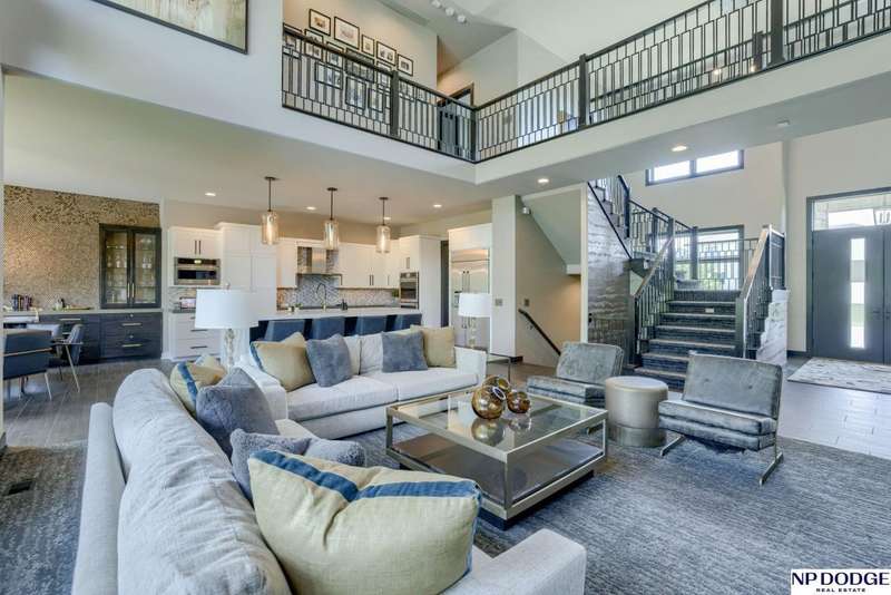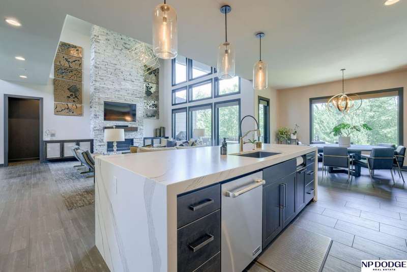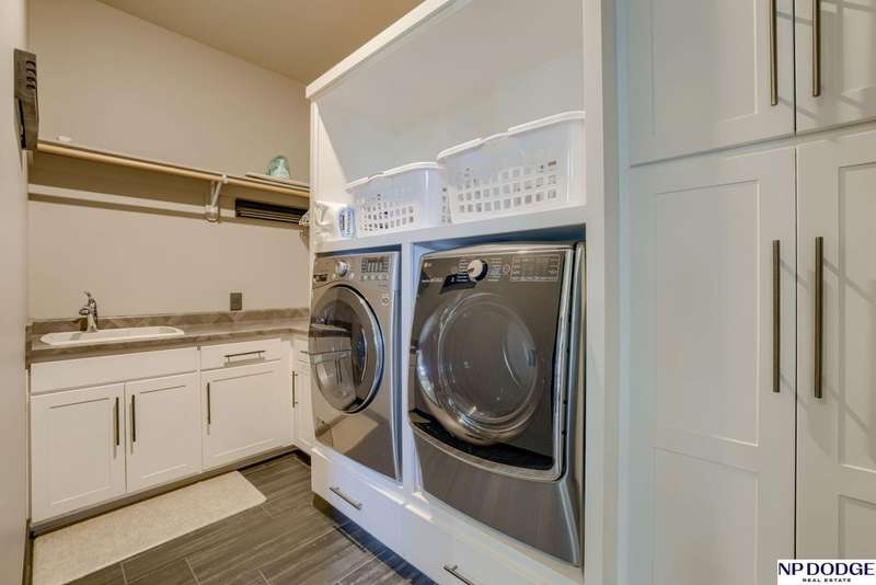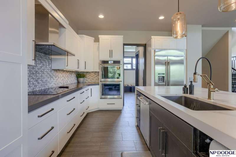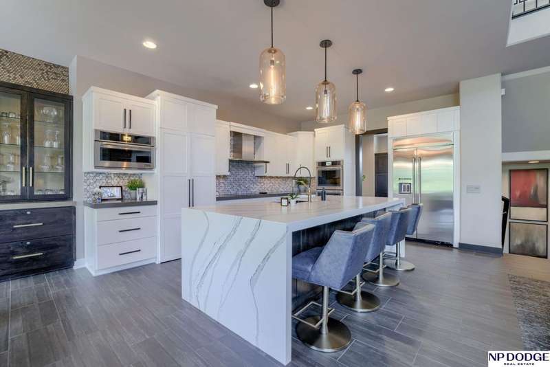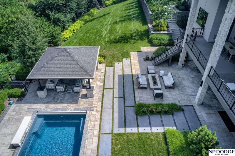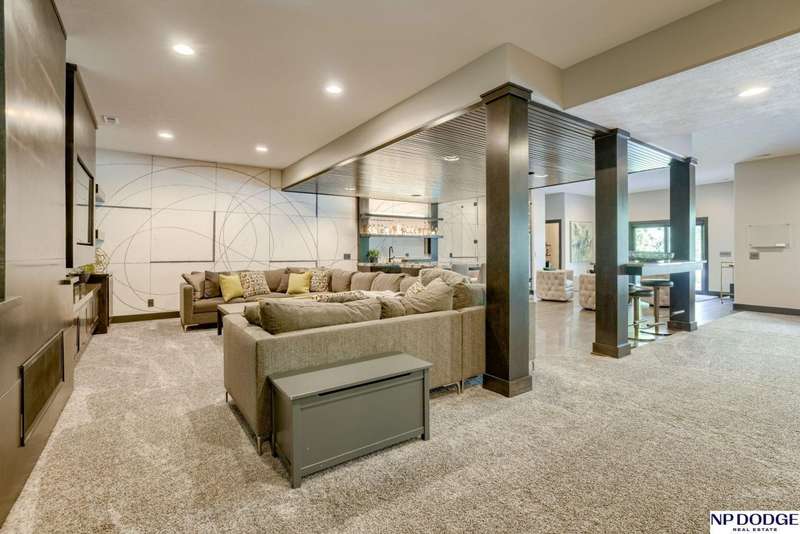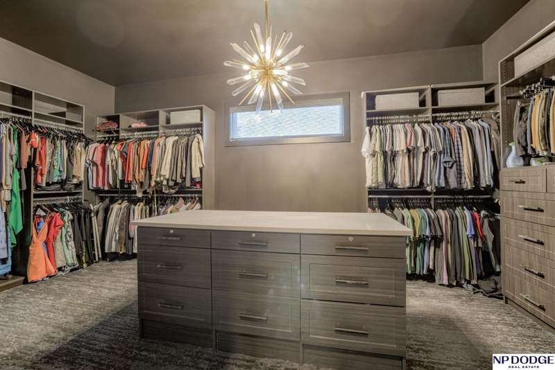 Over 6,200 sq. ft. of luxury in this 6 bed, 6 bath home with 5-car garage on an oversized private lot backing to trees. Thoughtfully designed with expansive rooms, custom built-ins, and high-end finishes. Gourmet kitchen with top-of-the-line appliances and dual-entry oversized pantry. All second-floor bedrooms are en-suite with walk-in closets. The primary suite offers a private deck overlooking the pool, spa-like bath with soaking tub, walk-in shower, and oversized custom closet. Lower level includes large living spaces, designer wall features, full bar, and temperature-controlled glass wine room. Outdoors features a resort-style pool with custom cover, freestanding lanai, and built-in BBQ station. No neighbor on north side ensures exceptional privacy. Located in the desirable Elkhorn School District.