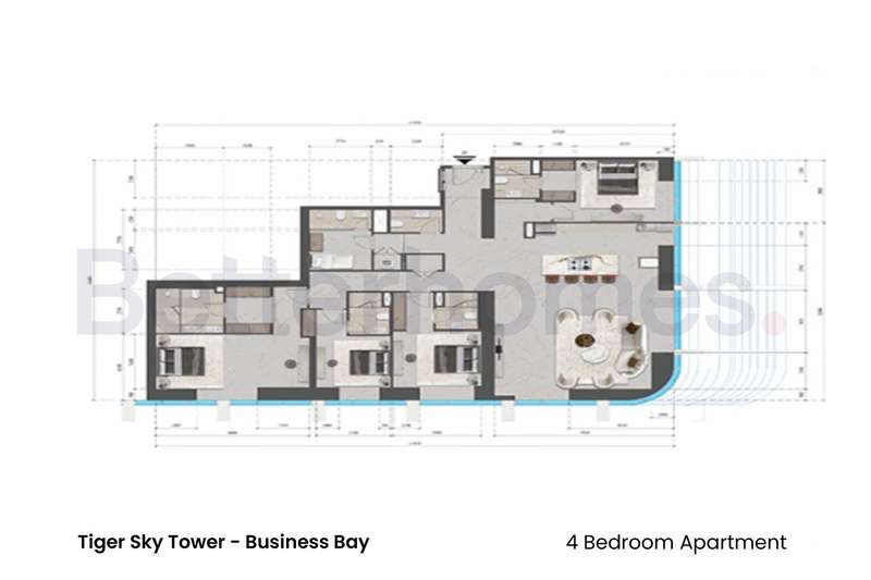 Betterhomes is thrilled to offer this remarkable off-plan four-bedroom apartment located in the iconic Tiger Sky Tower, a stunning example of modern architecture in Business Bay, Dubai. With a generous 2,889 sq. ft. of living space, this luxurious residence provides sweeping views of both Dubai Creek Harbour and the vibrant Dubai Design District, seamlessly combining upscale elegance with contemporary flair. Unit Features: - Four bedrooms, each meticulously designed to maximize comfort and sophistication. - Six well-appointed bathrooms, offering privacy and luxury for each room. - Open-plan living and dining areas that seamlessly blend style and functionality. - Panoramic views of Dubai Creek Harbour and the vibrant Design District. Building Amenities: - Infinity pool offering serene views over Dubai Creek and the city’s dynamic skyline. - State-of-the-art fitness center equipped with the latest in training technology. - Dedicated children’s play area, ensuring a safe and enjoyable space for families. - 24/7 security and concierge services to ensure your utmost convenience and safety. Located at the heart of Dubai's most sought-after business and lifestyle hubs, Tiger Sky Tower presents an unparalleled opportunity to experience refined urban living in one of the city's most iconic locations.