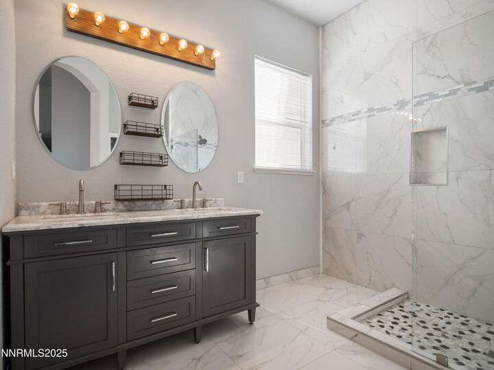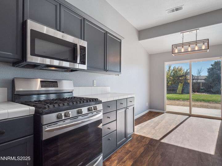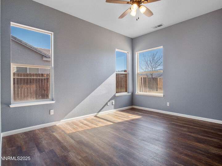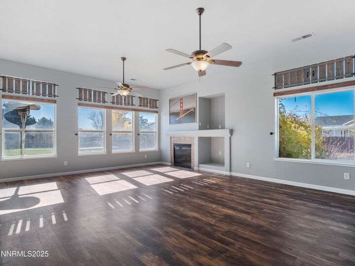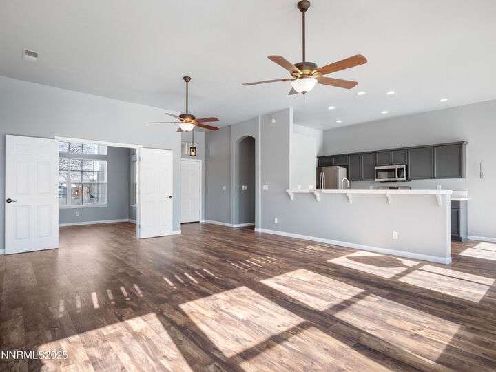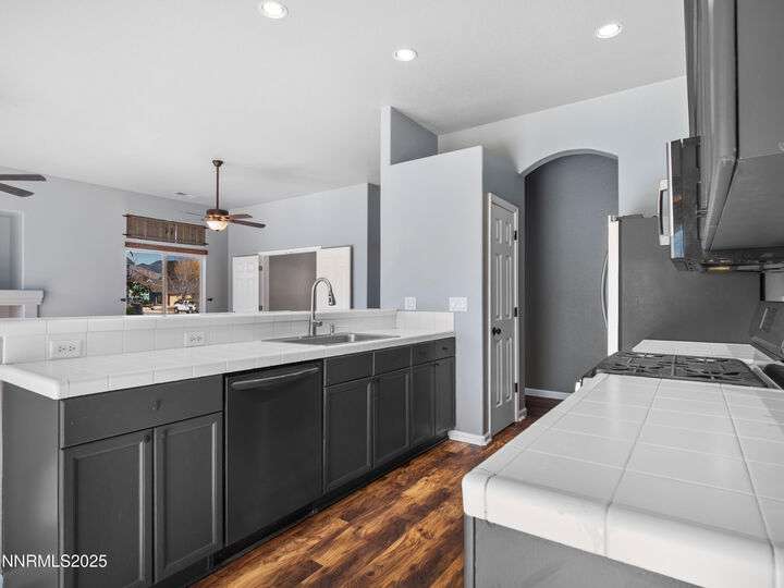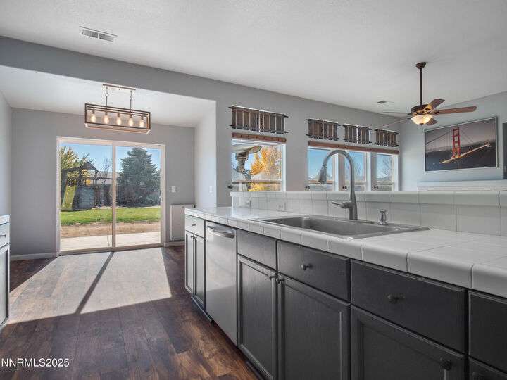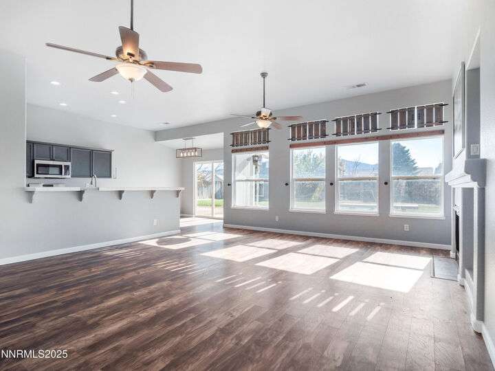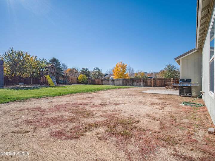 Welcome to 117 Elkhorn Drive — a beautifully updated home in Dayton's desirable Riverpark community with no HOA! This 3 bedroom plus office/den sits on a corner-lot property offers RV access, an oversized garage, and a spacious backyard complete with a storage shed and swing set included with the sale. Step inside to discover stylish LVP flooring throughout, updated LED lighting, and an inviting great room with a cozy gas fireplace and abundant natural light. The kitchen features stainless steel appliances and modern finishes, while the luxurious main suite bathroom impresses with tile floors, quartz vanity, and a large custom walk-in shower. Additional highlights include a water softener, open-concept layout, and a prime location just 20 minutes to Carson City and under an hour to Reno and Lake Tahoe. This move-in ready home blends comfort, convenience, and style — perfect for those seeking space, function, and value in a peaceful neighborhood