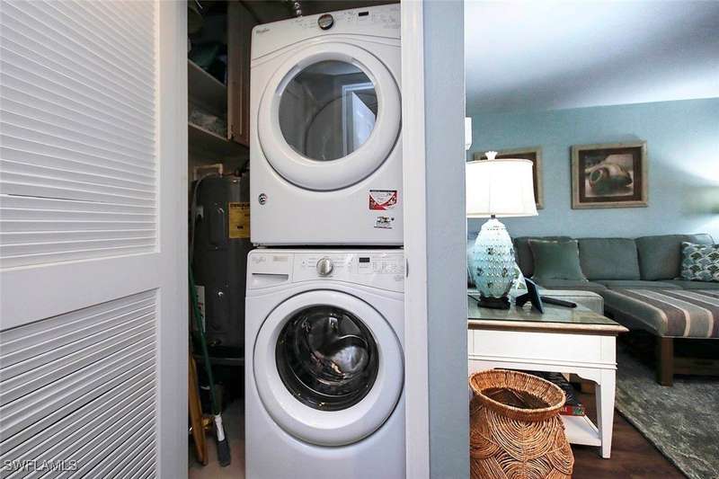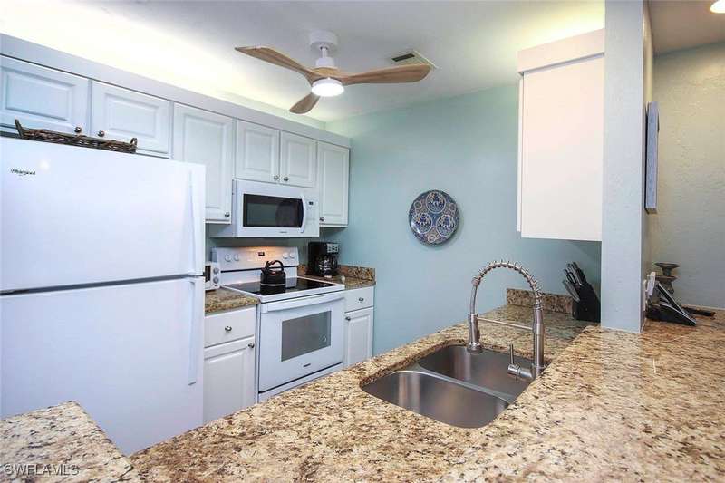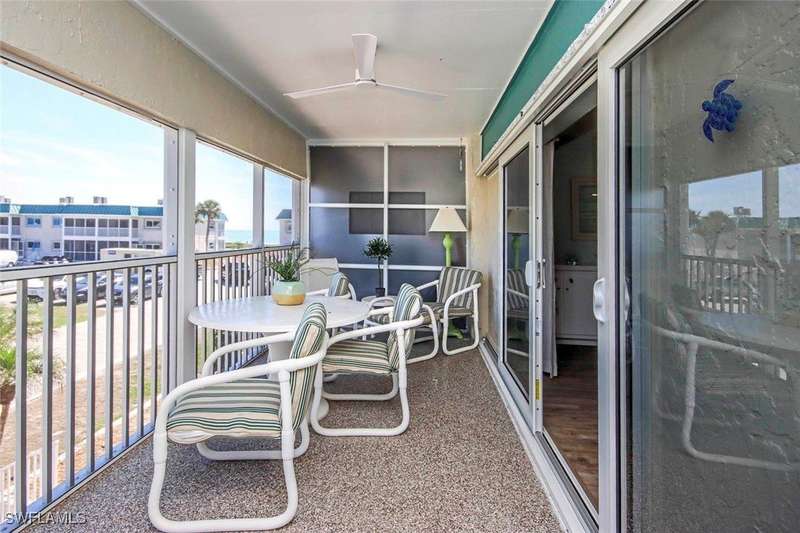 Coastal Elegance at Sanibel Arms West - Stunning 2BR/2BA Gulf-View Condo. Discover the perfect island retreat in this beautifully remodeled 2-bedroom, 2-bathroom condo, ideally situated on the coveted east end of Sanibel Island at Sanibel Arms West. Perched on the second floor, this light and bright residence offers a seamless blend of modern luxury and coastal charm. Step inside to find gorgeous flooring, a stylishly renovated granite kitchen, elegantly updated bathrooms featuring solid surface countertops and hurricane glass throughout. The open-concept living space is bathed in natural light, leading to a spacious screened lanai where you can unwind and take in breathtaking Gulf views. A convenient interior washer and dryer add to the ease of island living. Just steps from the pristine white sugar sand beach, this exceptional community also features a sparkling pool and offers an outstanding rental income opportunity. Nestled in a quiet east-end location, you'll enjoy effortless access on and off the island-without the congestion. Sold fully furnished and move-in ready, this exquisite condo is your chance to own a piece of paradise. Whether you're seeking a serene getaway or a lucrative investment, this Sanibel gem has it all!