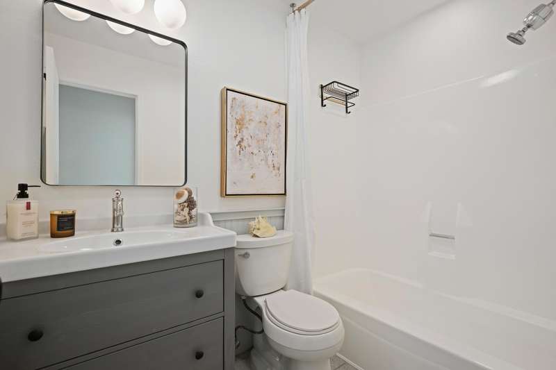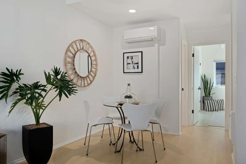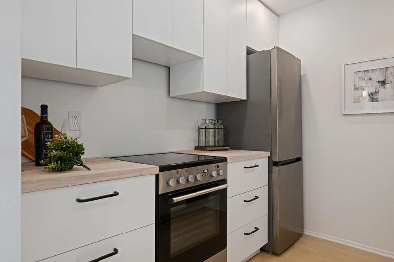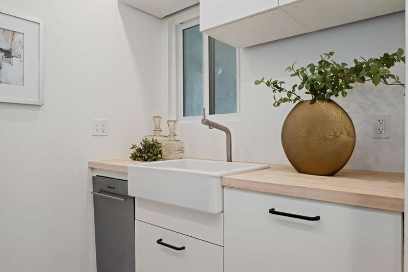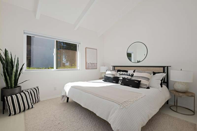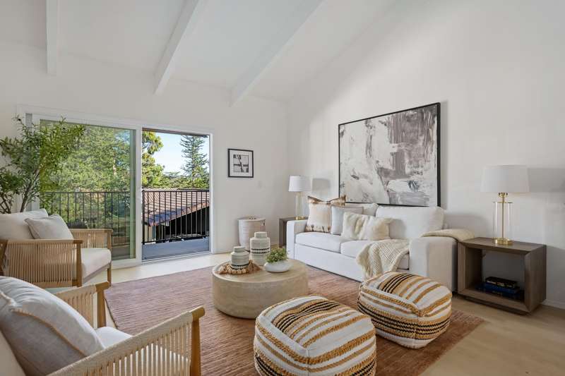 Bright and updated 1BD/1BA condo in Santa Barbara Highlands with soaring vaulted ceilings and sunny southern exposure. The remodeled kitchen features full-height cabinetry, stainless appliances, water filter, recessed lighting, and butcher block counters. Enjoy updated dual-paned windows and sliding glass door, a new electrical panel, all new electrical outlets, split A/C and heat, added attic insulation, and a renovated deck with a privacy screen. HOA allows in-unit laundry for this floorplan. Low HOA fee covers water, trash, sewer, insurance, exterior maintenance, and more. Community offers 2 pools, clubhouse, and a quiet, convenient location between the Mesa and downtown. Includes carport with large storage cabinets. Enjoy mountain views and peaks of the ocean.