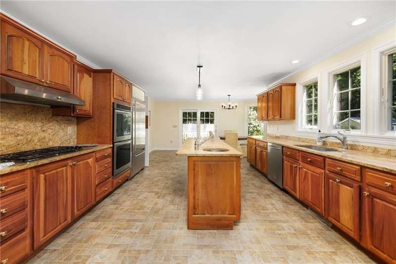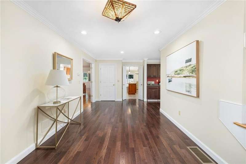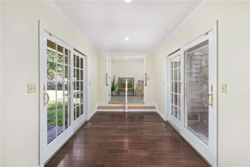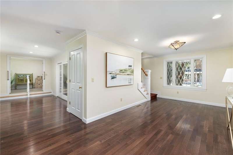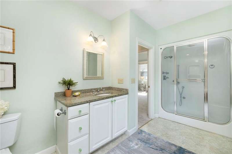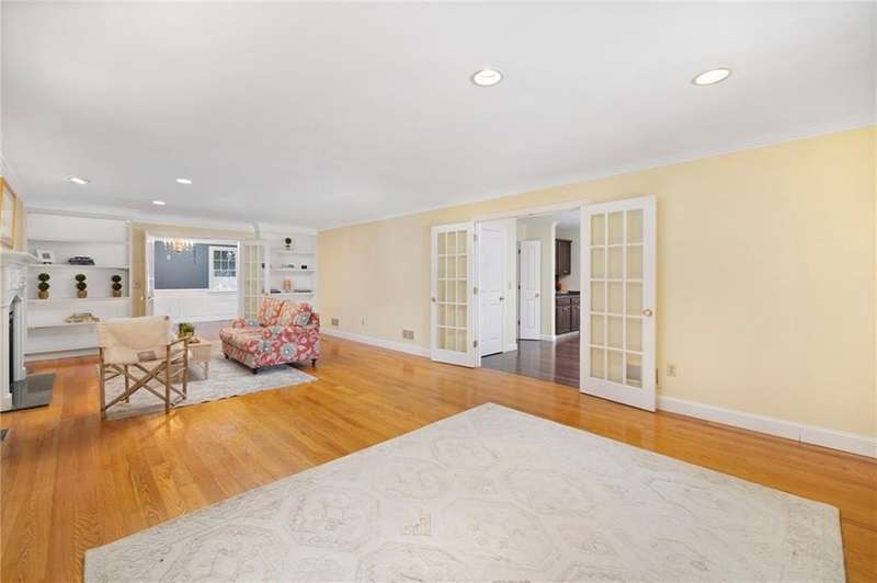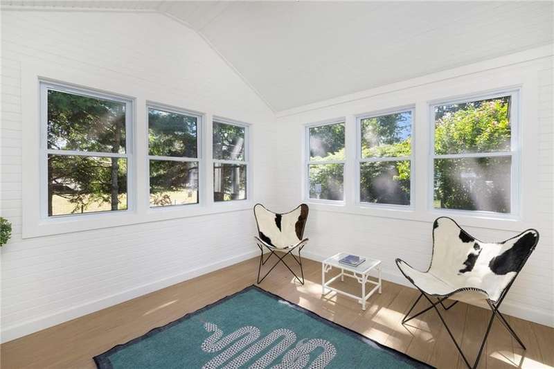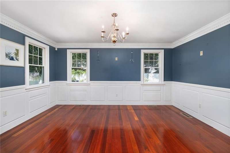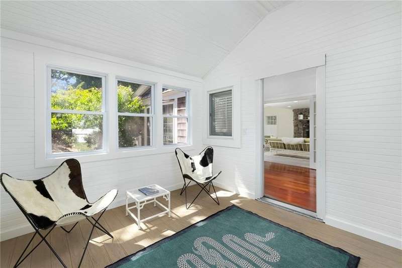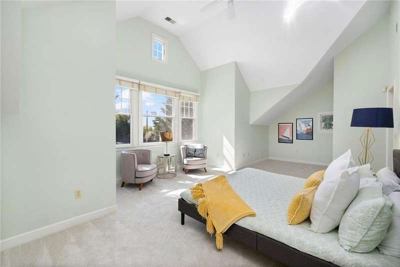 Tucked away at the end of a hidden lane in Jamestown Shores, this timeless shingle-style cottage is the definition of coastal quietude. Surrounded by natural beauty and set on a peaceful, private lot, the home blends classic charm with modern comforts. Inside, you'll find a gracious floor plan designed for easy living and entertaining. A welcoming formal living room with a gas fireplace flows into a sunlit dining area and a generous eat-in kitchen complete with center island and stainless appliances. Upstairs, two expansive ensuite bedrooms offer luxurious privacy, abundant storage, and space to unwind. The original wing of the home adds warmth and versatility with a cozy family room anchored by a traditional stone fireplace, a third bedroom opening to a glass-wrapped sunroom, a full bath, and access to a west-facing deck ideal for evening sunsets. This flexible space is perfectly suited for multi-generational living, guest quarters, or a dedicated home office. Outdoors, a fenced area provides a secure space for pets, while the open backyard invites gardening, gathering, or quiet moments under the sky. Minutes from Sunset Beach, Godena Farm and the Jamestown Bike Path, this home offers the best of island life.