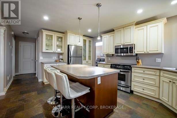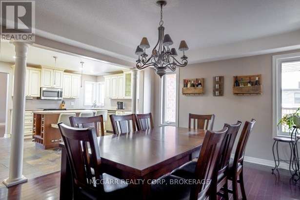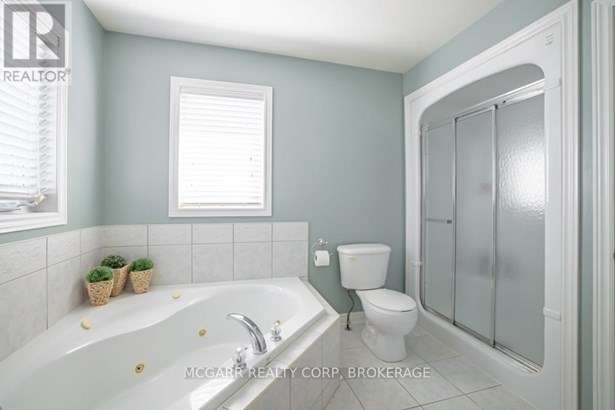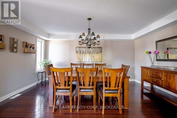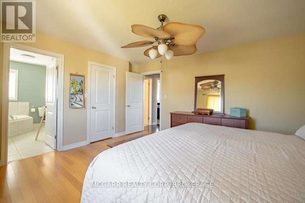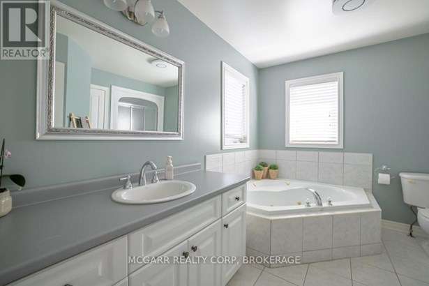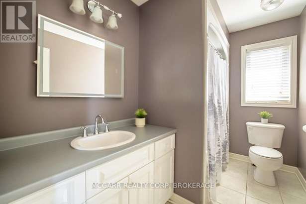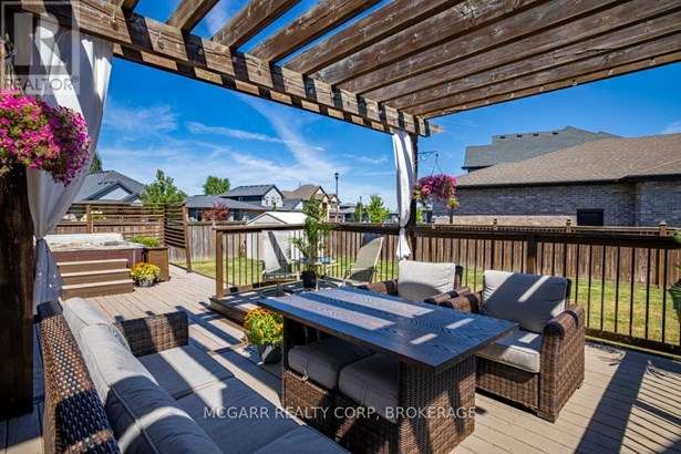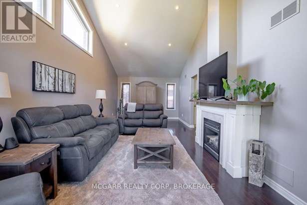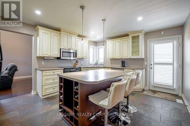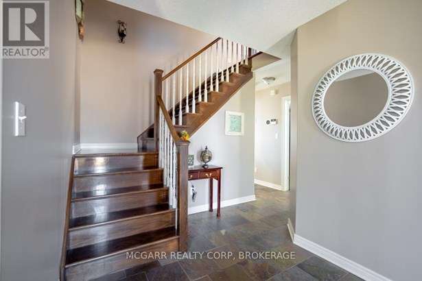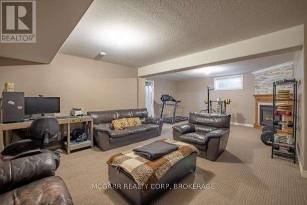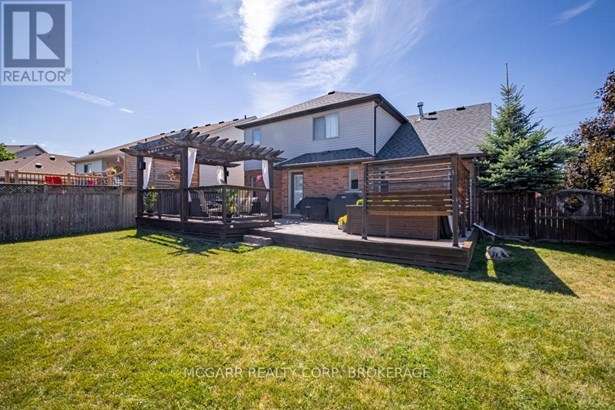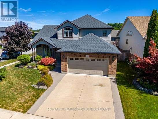 Come home to 38 Nicholas and enjoy all that it has to offer. The spacious double driveway leads to the double garage with an inside entrance. The front walkway and patio invites you to enter the very large foyer with slate floors that flow through to the powder room and in home office or mud room. The 29ft long living room has a vaulted ceiling, gas fireplace, and lots of natural light. You could do a combo living and dining. The family size kitchen features a sit at island and many cabinets with good counter space. The formal dining room could also be a family room. The door from the kitchen leads to a very spacious deck and fully fenced pool size lot with a vinyl shed with concrete pad. The hot tub can stay if wished. The upper level features 3 bedrooms and 2 bathrooms. A 4pc services the two carpeted bedrooms. The primary suite with bamboo floors has a walk-in closet and large 4pc ensuite with large jetted tub and a large separate shower. The lower level has a large family room with a thermostat controlled gas fireplace. If you need more bedrooms there is space for another one plus a R.I. bathroom. Extras include alarm system, water back flow in the wine cellar. R.I. for 4th bathroom, hard wired for smoke and carbon monoxide detectors, sump pump and reverse osmosis water filter. Seller is flexible on closing and can accommodate a quick closing.