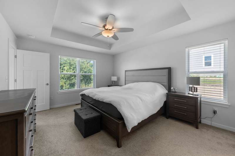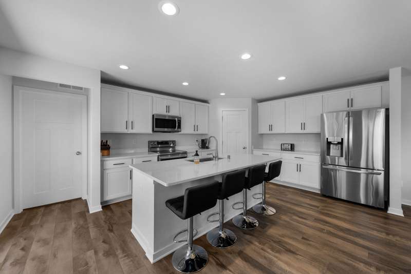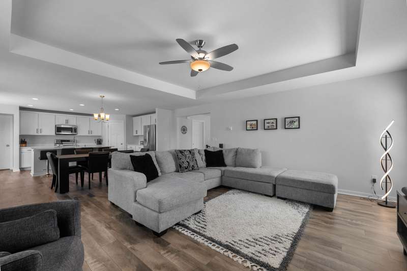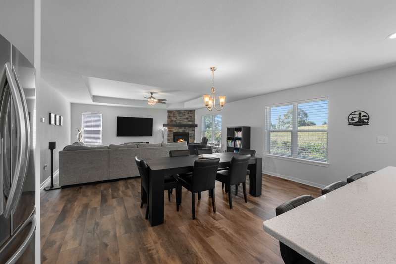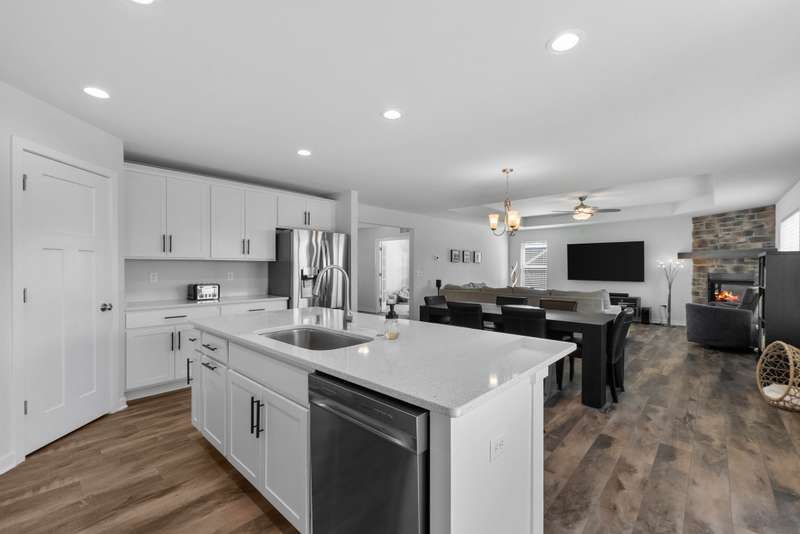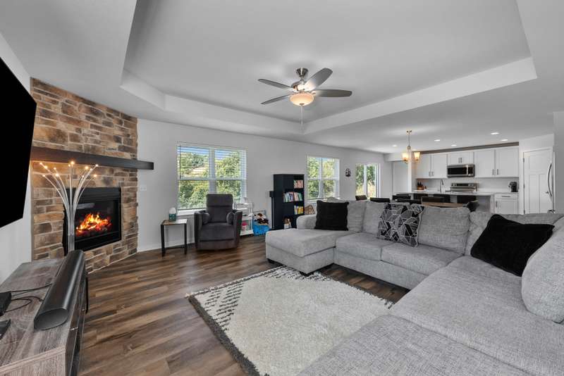 This beautiful Laine model home was designed with today's lifestyle in mind. The open kitchen features quartz countertops, a spacious island with seating, and seamless flow into the family room, anchored by a floor-to-ceiling stone fireplace. With four bedrooms and three full bathrooms, including a private owner's suite with tray ceiling, walk-in-closet, and double vanity bathroom, there is room for everyone. A bonus main-level flex room offers endless possibilities - home office, playroom or fitness space. The oversized three-car garage provides plenty of room for storage for cars, gear, and hobbies. Stylish details and versatile spaces make this home the perfect fit for modern living. Only three years old means better than new with cement poured, landscaping already completed and energy efficient systems. Do not miss this great home!