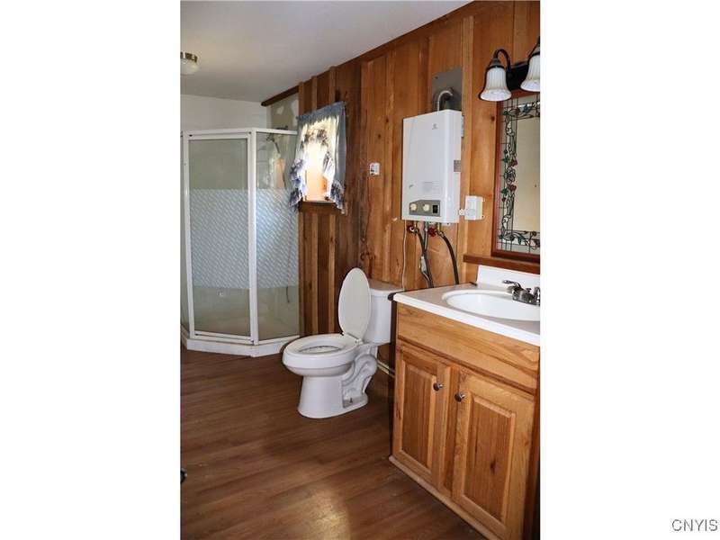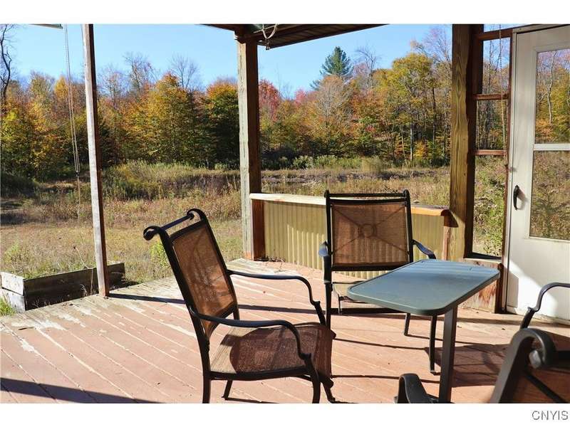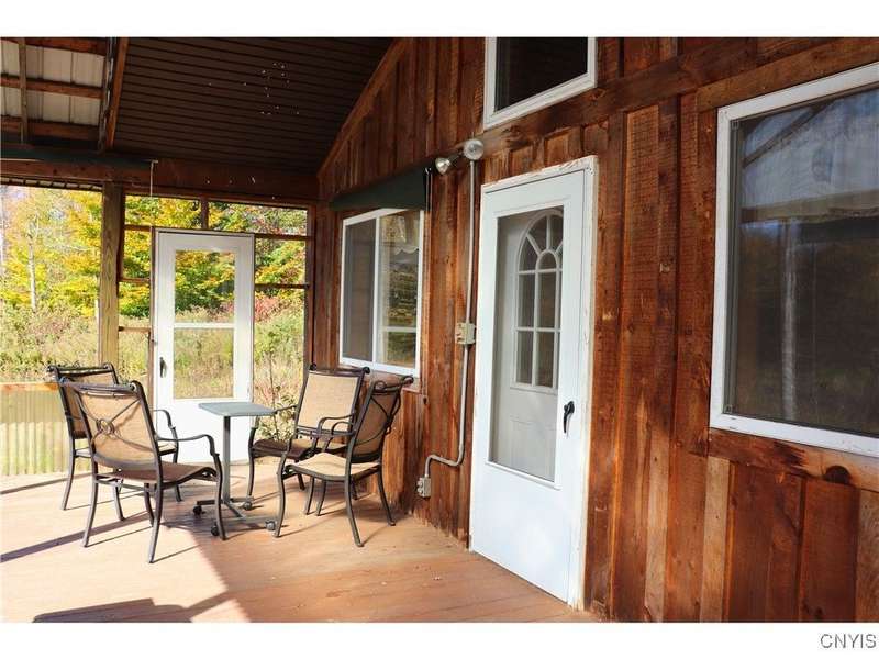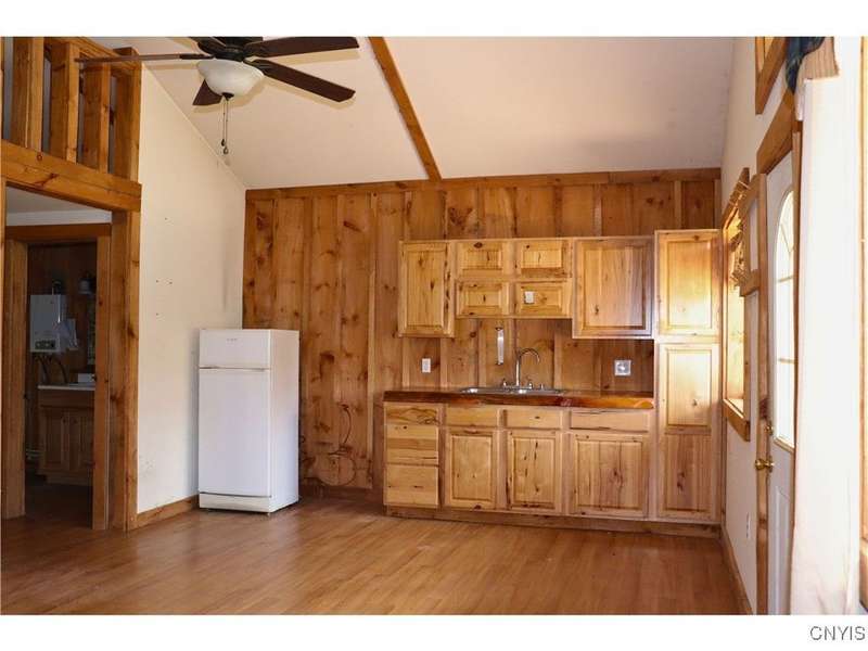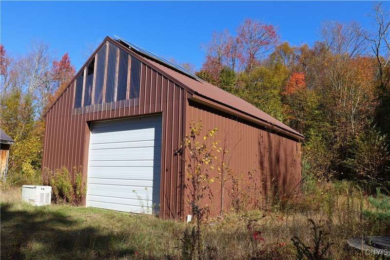 Escape to your own private off-grid retreat on 7.65 peaceful, mostly wooded acres with a pond in Williamstown! This cabin offers one bedroom, full bath, kitchen, living area, and loft space. This home may be off grid but has all you need to stay for a weekend, or an extended time-water is supplied by the dug well, and there is a septic system and even an outhouse for rustic charm. It has solar power with propane generator backup, plus propane heat, refrigerator, and water heater. This home has a beautiful natural log countertop from a tree cut right on the property. There is a large detached garage with two overhead doors, storage space, work shop space, and a secured area. If you need to stay connected there is a satellite dish. There is also an electrical hookup and space for an RV or camper. Set back a mile on a private road for privacy, yet close to Redfield Reservoir, Salmon River, and Lake Ontario for fishing, boating, and snowmobiling. A perfect year-round or seasonal getaway or outdoor enthusiast's basecamp!