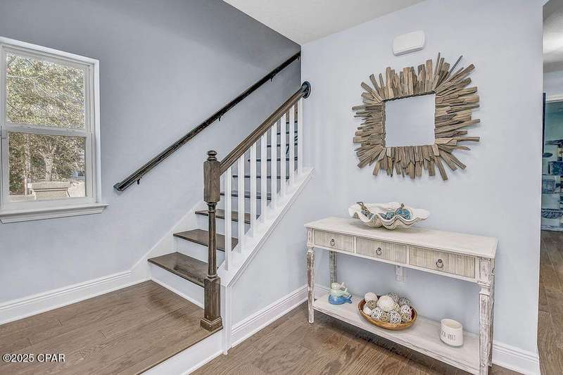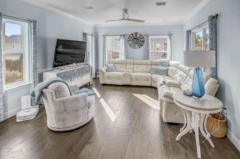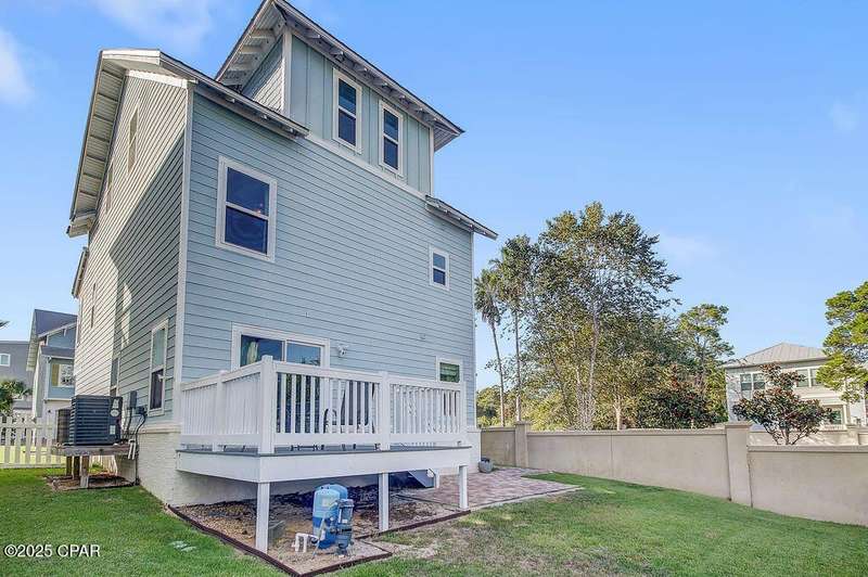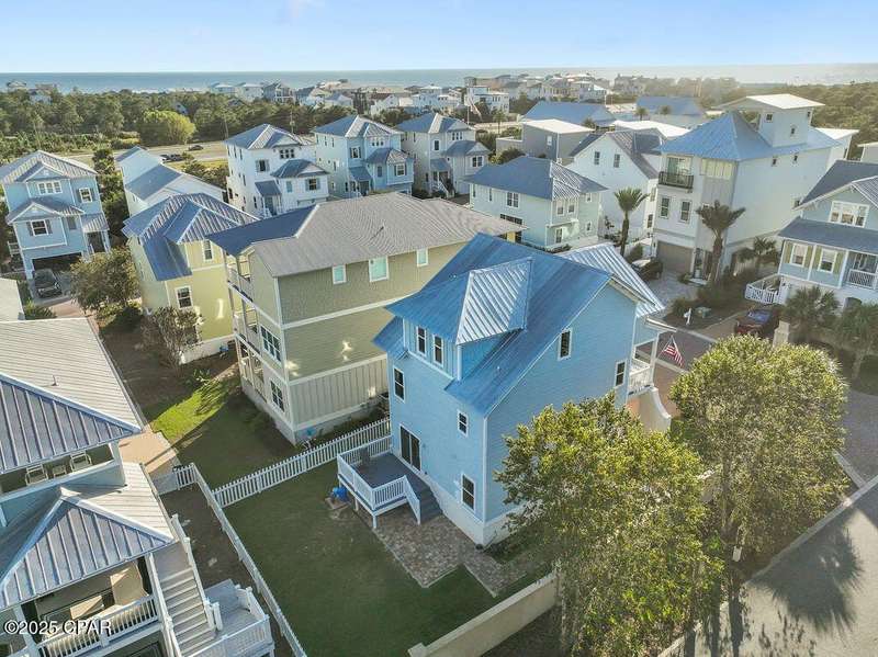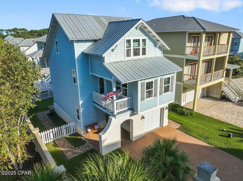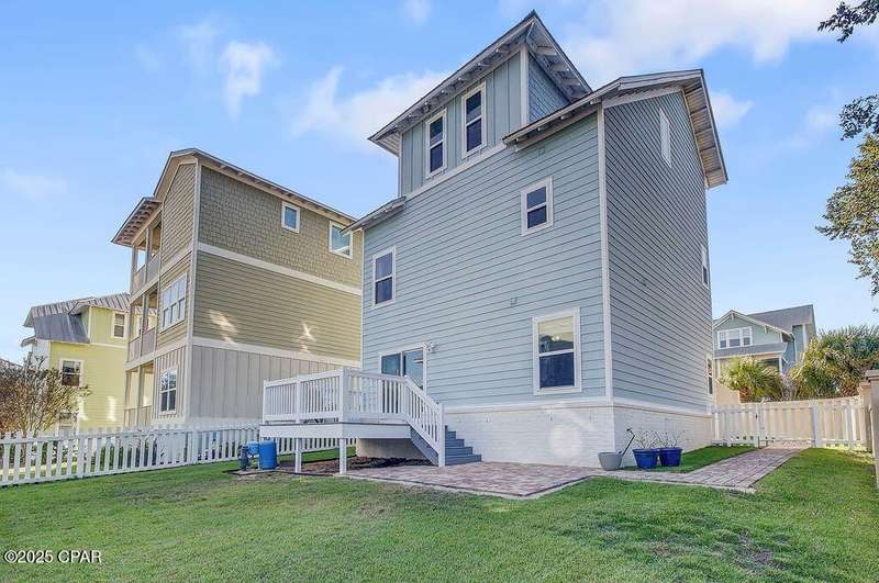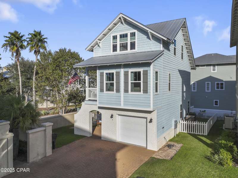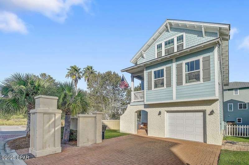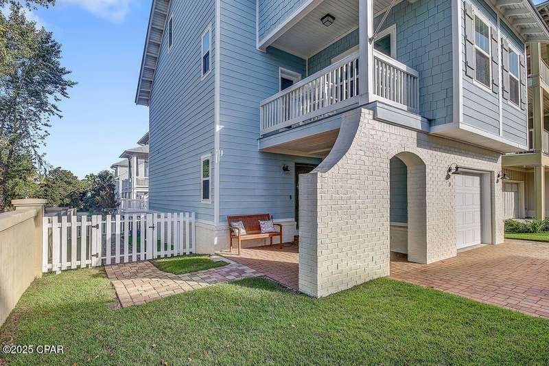 Welcome to 9 Inlet Heights Lane located in prime Inlet Beach -- a beautifully designed 3-bedroom, 3-bathroom beach-style home with a bonus room, located in the heart of the highly sought-after Inlet Heights community. Built in 2016 by Holiday Builders, this 2,239 sq ft residence offers a seamless blend of coastal charm, comfort, and functionality -- perfect as a primary home, vacation getaway, or short-term rental investment.From the moment you arrive, the home's curb appeal stands out with a brick paver driveway, welcoming brick archway, and manicured corner-lot setting. Step inside to discover stunning hardwood floors, a bright open-concept living and dining area, and a kitchen featuring granite countertops, stainless steel appliances, new tiled backsplash, and full-overlay cabinetry. A custom coastal bar and built-in cabinets adds to the dining area making entertaining effortless.The layout is thoughtfully designed with one bedroom and a full bathroom on the first level along with a spacious bonus room ideal for a kids' bunk room, media room, or extra guest space. Upstairs, the second level offers an additional guest bedroom and bathroom, along with access to a relaxing covered balcony perfect for your morning coffee or evening wine.The third floor is reserved for the show-stopping primary suite, complete with a tray ceiling, crown molding, oversized walk-in closet, and a luxurious en-suite bath with double vanities, granite counters, and a tiled walk-in shower. The suite also includes a generous sitting area that can serve as a cozy reading nook or home office, all bathed in natural light.Enjoy outdoor living on the open back deck overlooking the fenced yard ideal for cookouts, gardening, or relaxing after a beach day. The one-car garage offers plenty of storage space for your golf cart, bikes, fishing poles and beach gear.Community amenities include a scenic pool and dock overlooking Lake Powell one of the largest coastal dune lakes in the country. Located in Flood Zone X, this home does not require flood insurance. You're less than a quarter mile to the Gulf of Mexico's largest Walton County beach access and Lake Powell, and just minutes from Camp Helen State Park, 30Avenue shopping, Rosemary and Alys Beach, and top-rated dining and entertainment.Whether you're looking for a full-time residence, vacation home, or income-producing rental, this turnkey beach home offers an unbeatable location and exceptional value near some of 30A's most exclusive communities.