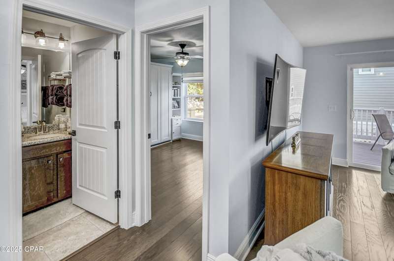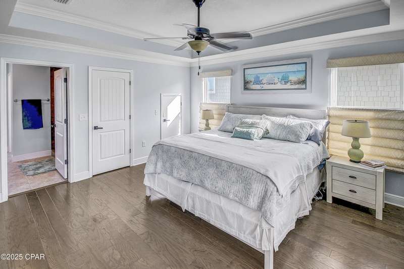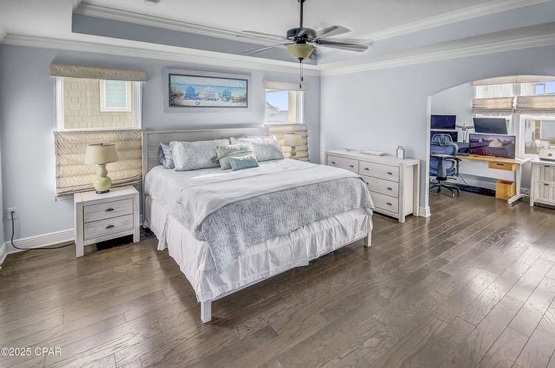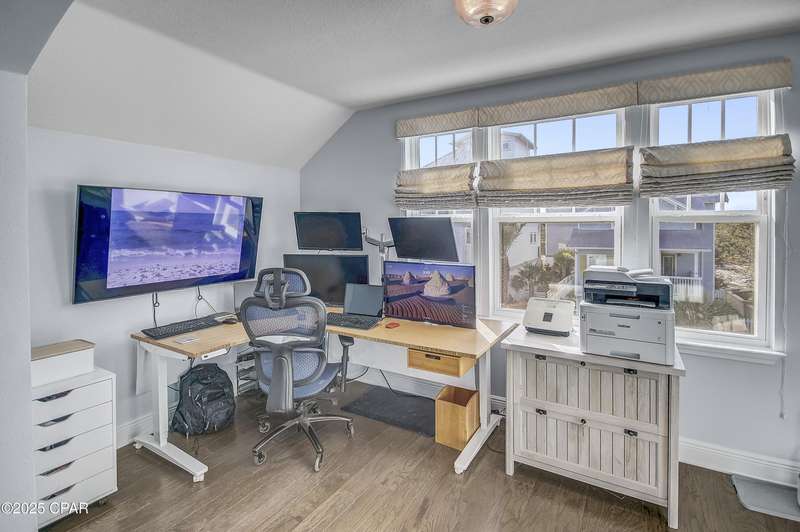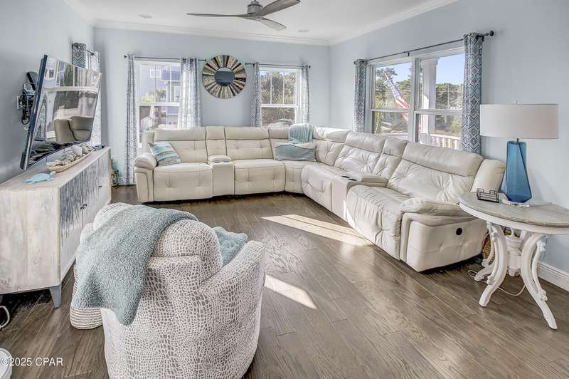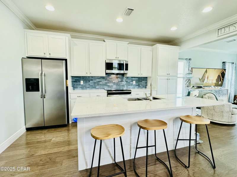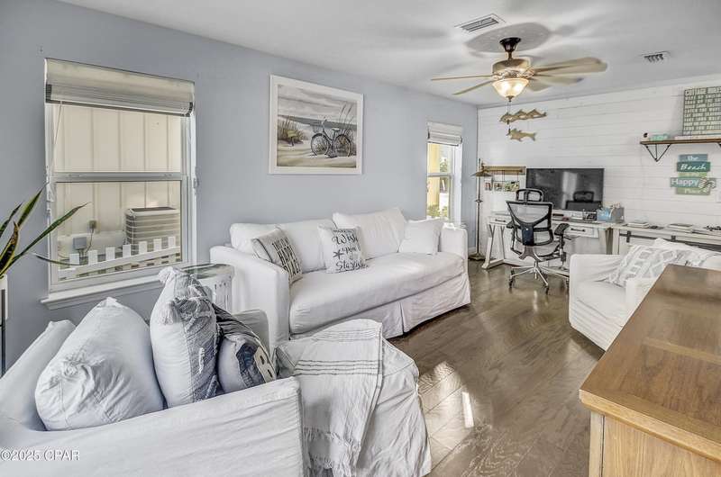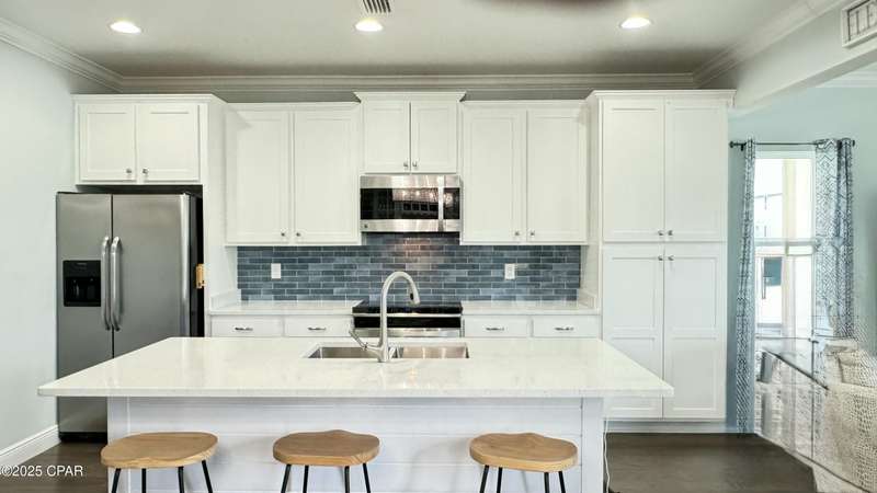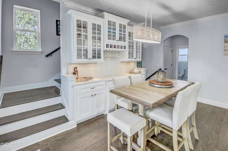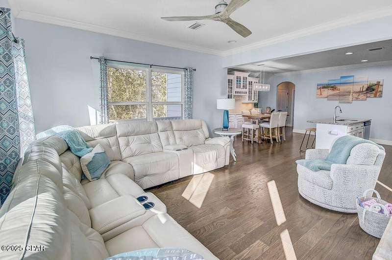 Welcome to 9 Inlet Heights Lane located in prime Inlet Beach -- a beautifully designed 3-bedroom, 3-bathroom beach-style home with a bonus room, located in the heart of the highly sought-after Inlet Heights community. Built in 2016 by Holiday Builders, this 2,239 sq ft residence offers a seamless blend of coastal charm, comfort, and functionality -- perfect as a primary home, vacation getaway, or short-term rental investment.From the moment you arrive, the home's curb appeal stands out with a brick paver driveway, welcoming brick archway, and manicured corner-lot setting. Step inside to discover stunning hardwood floors, a bright open-concept living and dining area, and a kitchen featuring granite countertops, stainless steel appliances, new tiled backsplash, and full-overlay cabinetry. A custom coastal bar and built-in cabinets adds to the dining area making entertaining effortless.The layout is thoughtfully designed with one bedroom and a full bathroom on the first level along with a spacious bonus room ideal for a kids' bunk room, media room, or extra guest space. Upstairs, the second level offers an additional guest bedroom and bathroom, along with access to a relaxing covered balcony perfect for your morning coffee or evening wine.The third floor is reserved for the show-stopping primary suite, complete with a tray ceiling, crown molding, oversized walk-in closet, and a luxurious en-suite bath with double vanities, granite counters, and a tiled walk-in shower. The suite also includes a generous sitting area that can serve as a cozy reading nook or home office, all bathed in natural light.Enjoy outdoor living on the open back deck overlooking the fenced yard ideal for cookouts, gardening, or relaxing after a beach day. The one-car garage offers plenty of storage space for your golf cart, bikes, fishing poles and beach gear.Community amenities include a scenic pool and dock overlooking Lake Powell one of the largest coastal dune lakes in the country. Located in Flood Zone X, this home does not require flood insurance. You're less than a quarter mile to the Gulf of Mexico's largest Walton County beach access and Lake Powell, and just minutes from Camp Helen State Park, 30Avenue shopping, Rosemary and Alys Beach, and top-rated dining and entertainment.Whether you're looking for a full-time residence, vacation home, or income-producing rental, this turnkey beach home offers an unbeatable location and exceptional value near some of 30A's most exclusive communities.