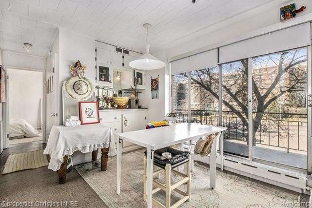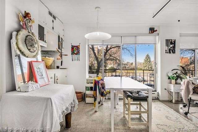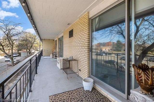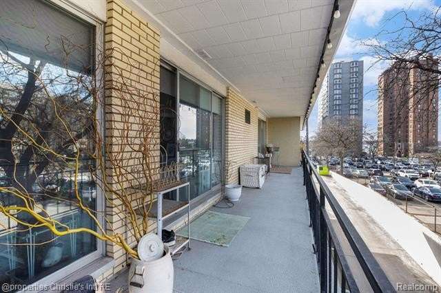 Welcome to Casa Balcona Terrace! Discover this exquisite cooperative residence, just steps away from the Detroit River. This spacious, open-concept 1-bedroom unit is situated directly across from one of Detroit's most renowned historic communities. Key Features: Modern Kitchen: Fully renovated with brand-new cabinetry, butcher block countertops, a custom backsplash, and stainless steel appliances, making it both stylish and efficient.? Updated Bathroom: Features contemporary fixtures and finishes for a fresh, modern feel.? Spacious Bedroom: Includes a generous walk-in closet, providing ample storage space.? Expansive Balcony: A 40-foot-long private terrace offers stunning water views and can be accessed from multiple points within the apartment, perfect for relaxation or entertaining.? Renovated Pool: A recently updated community-exclusive pool provides a refreshing retreat.? Private Storage: Each unit comes with its own storage locker for additional space.? Gated Park: Enjoy the security and tranquility of a private, gated park area.? Covered Parking: This unit includes one covered parking spot, offering protection from the elements.? Embrace the blend of historic charm and modern living at Casa Balcona Terrace. With its prime location and extensive updates, this unit offers a unique opportunity to experience the best of Detroit living. Don't miss out—schedule your viewing today! Enjoy the convenience of being within walking distance to Red Hook Coffee, Norms Diner, Two Birds, & Sister Pie to name a few.