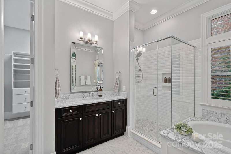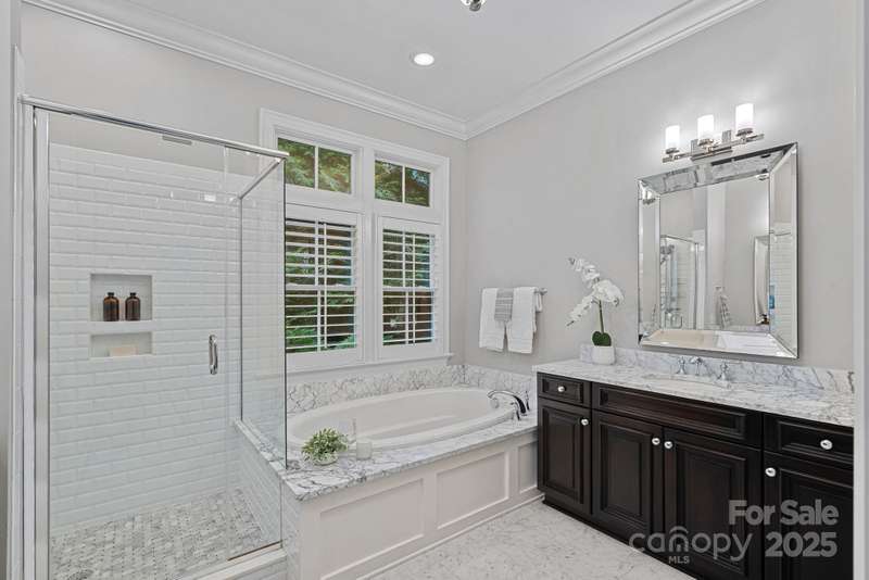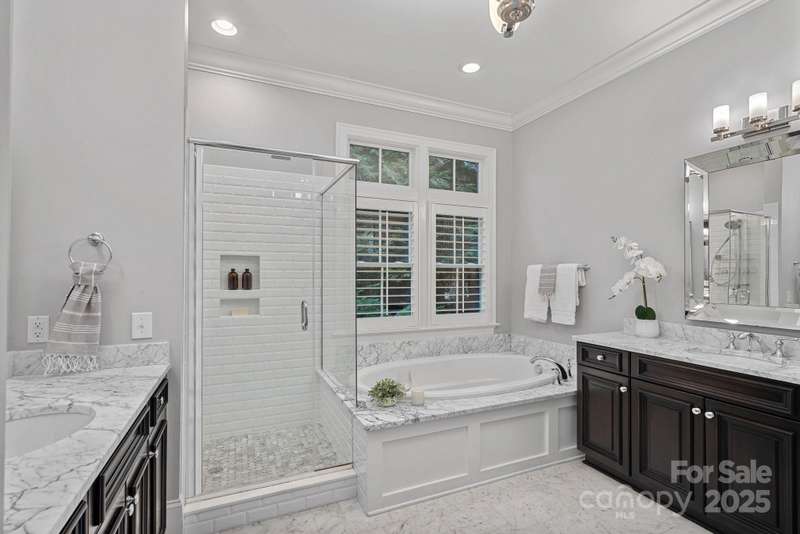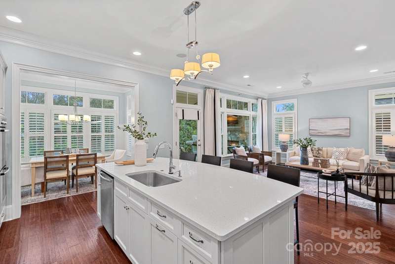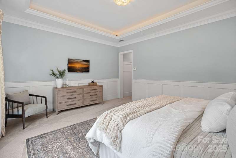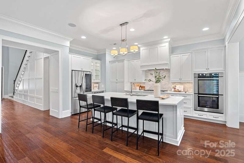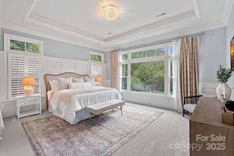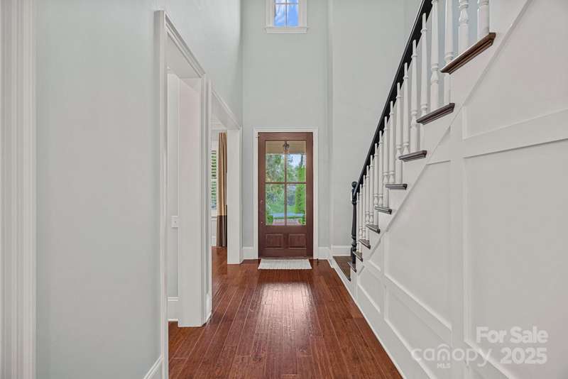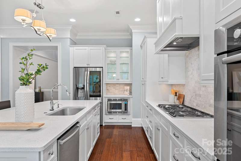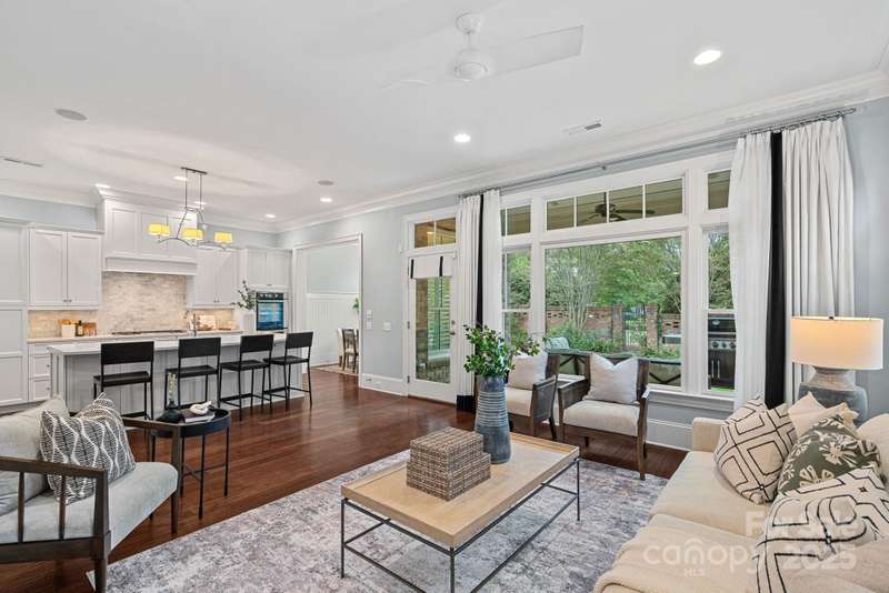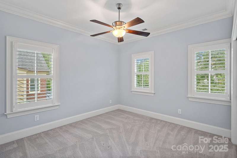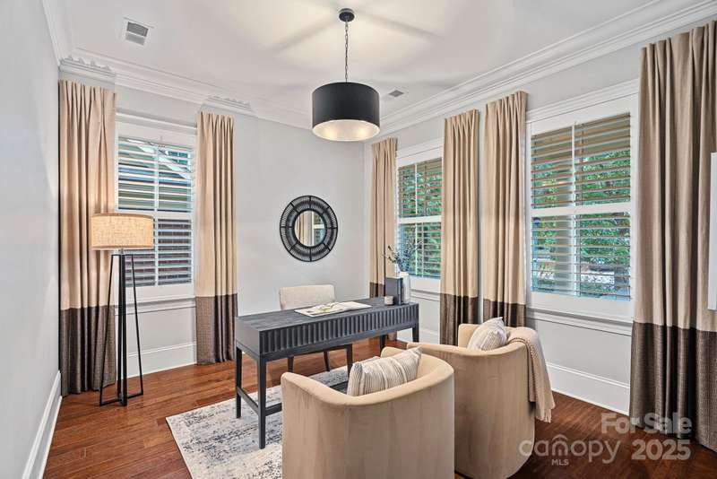 Stunning 4-bedroom home nestled in the highly sought-after gated community of Bellmore Hall. Built by Simonini Builders in 2010, this gorgeous home was the former model and blends sleek, modern lines with warm, inviting spaces. Inside you'll find a beautifully appointed kitchen featuring an abundance of cabinetry, a large center island, and a charming breakfast area with wainscoting and sunlit windows. The family room is open to the kitchen and boasts a see-thru gas fireplace to the dining room. Gather in the dining room with its coffered ceiling and enjoy the versatility of a stately front office or den. The primary suite is a true retreat, offering a spacious walk-in closet with a convenient washer/dryer hookup, stunning windows overlooking the lush backyard, an elegant tray ceiling with rope lighting and richly paneled walls. Adding to the home's appeal, a versatile bonus room serves as both a gym and rec/playroom. And for ultimate convenience, the two-car attached garage is equipped with an electric vehicle charging station. Enjoy direct access to the common greenspace and year-round outdoor living on the covered rear porch, complete with a cozy gas fireplace, mantel television and beautiful landscape lighting, front and rear, installed in 2023 and connected to solar photocell. Plantation shutters and quality millwork throughout! This home is truly a rare gem, offering a perfect blend of elegance, comfort, and modern convenience.