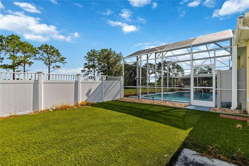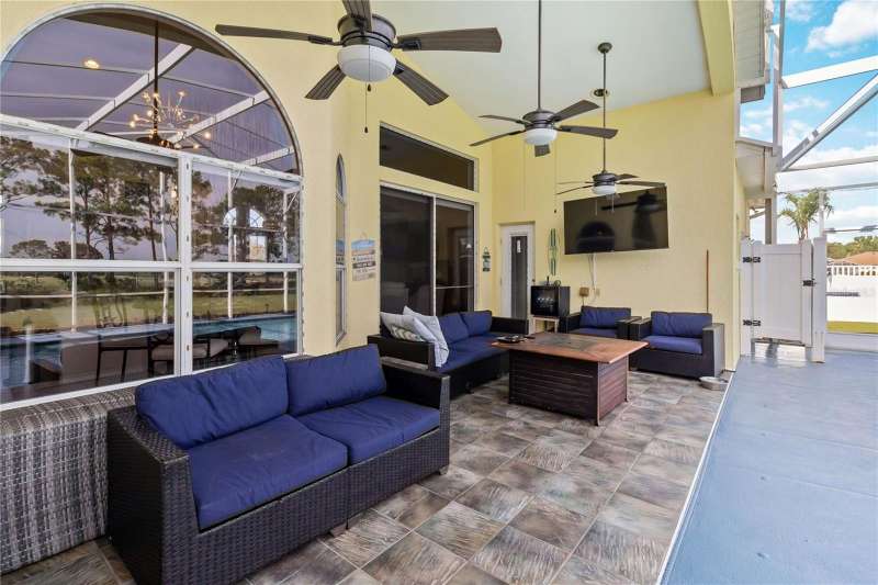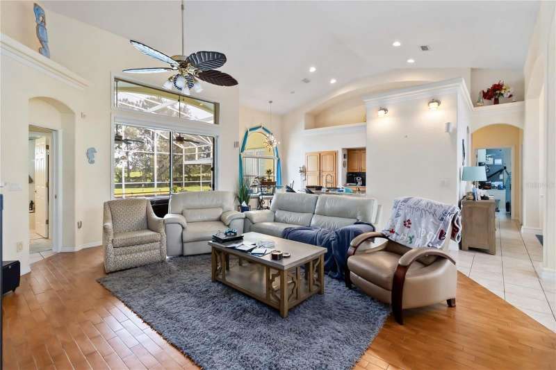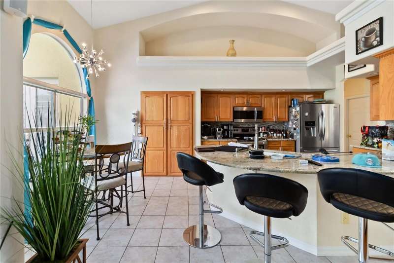 MAJOR PRICE IMPROVEMENT! Enjoy this amazing home! 4 bedroom 2 bath POOL home, 2 Car Garage & Royal Golf course view. No rear neighbors! Formal dining, living room, kitchen and dinette over looking great room. Split bedroom floor plan, inside laundry room, updated kitchen appliances, custom cabinets, pantry, backsplash, granite counter tops and extended breakfast bar. Light and bright great room with large sliders leading to screened lanai. Imported Italian marble flooring and decorative plant shelves. Main bedroom with tray celling, french doors to lanai with built out closet. Main bath with dual vanities, garden tub and walk-in shower. Outside retreat has large screen enclosure, encompassing gorgeous solar heated pool, 7 Foot at deep end, sun shades for privacy, pool cleaner, fully tiled with child safety fence and outdoor hot/cold shower! Garage extended an additional 5 feet for added storage. Central vac, decorative front door - Truly exquisite amenities await you.
