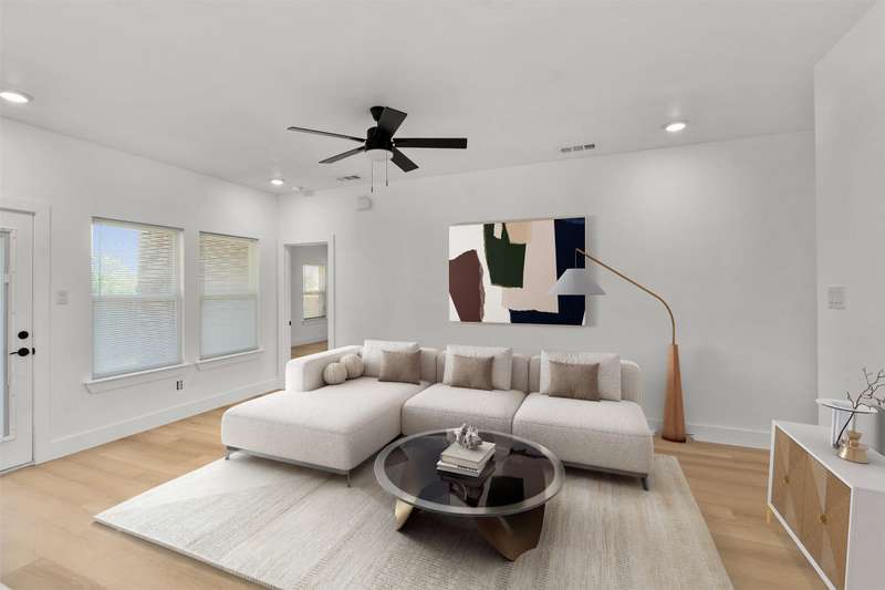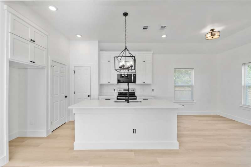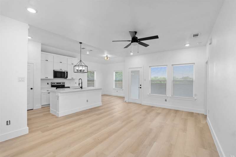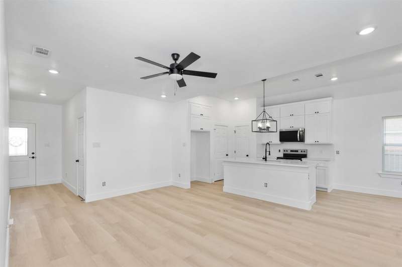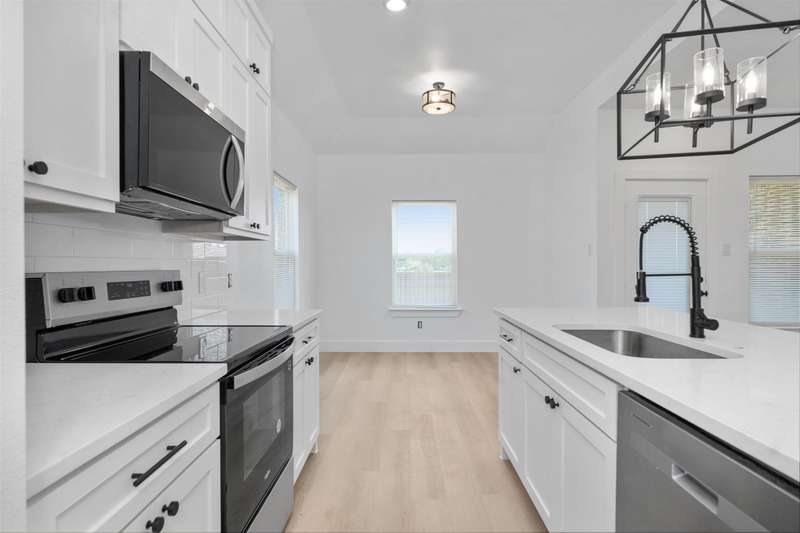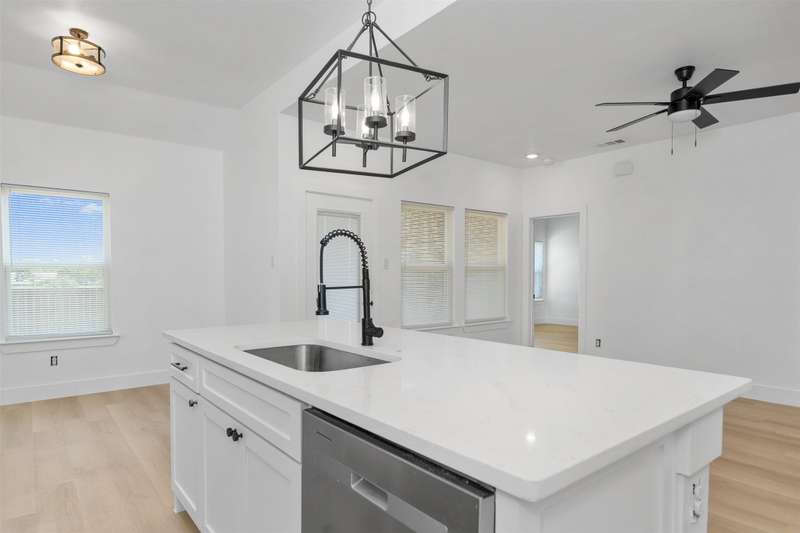 Another beauty by M & A Dream Homes! See the quality difference this builder offers with real hardwood flooring throughout the entire home! Pretty open living-kitchen-dining, featuring a quartz countertop kitchen with an island, full pantry, and an upgraded appliance package. The primary suite has a walk-in closet, dual sinks, and an enormous walk-in shower featuring beautiful tilework. Enjoy the pretty setting from your covered front and back porches, a large backyard with a wood privacy fence, and a sodded lawn ready for spring! Exterior is brick and Hardie plank siding to last through the ages, including rain gutters, and vents in eaves. Two-car garage with electric opener. Drive into home ownership now! More homes like this are availablecheck out 1037, 1043, 1042, and 1034 Springview. Completion is scheduled for the end of June, so hurry now to make your own design and color selections!
