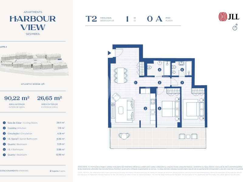 Apartamento T2 novo, com 90 m2 de área bruta privativa, terraço e estacionamento, no Harbour View II, em Sesimbra. O Harbour View II destaca-se pela sua singular harmonia com a natureza envolvente, oferecendo aos residentes uma experiência de vida única que valoriza o ambiente natural. Dispõe de duas piscinas exteriores que se integram perfeitamente na paisagem, um ginásio, uma sala de co-work, e uma sala multiusos. Esta combinação oferece um equilíbrio perfeito entre lazer, bem-estar e produtividade, tudo isto enquadrado pela beleza natural de Sesimbra. Sesimbra, uma vila rica em história e tradição, é reconhecida pelas suas praias deslumbrantes, porto de pesca e marina. O Harbour View II está localizado a apenas 2 minutos de carro da Praia do Ouro e a 5 minutos da Praia de Sesimbra. A 10 minutos, encontram-se a Aldeia do Meco e a Serra da Arrábida, enquanto o Cabo Espichel fica a 20 minutos. O Portinho da Arrábida está a 25 minutos, e as cidades de Setúbal, Seixal e Almada a 30 minutos. A Costa da Caparica é acessível em 35 minutos, e a capital em 40 minutos. Para quem necessita de ligações internacionais, o Aeroporto Internacional de Lisboa Humberto Delgado está a apenas 45 minutos de distância. Categoria Energética: A #ref:87986