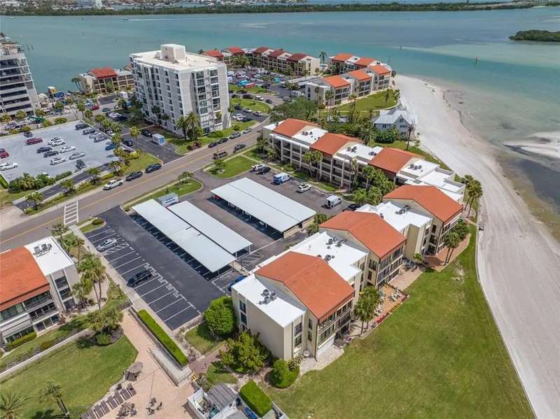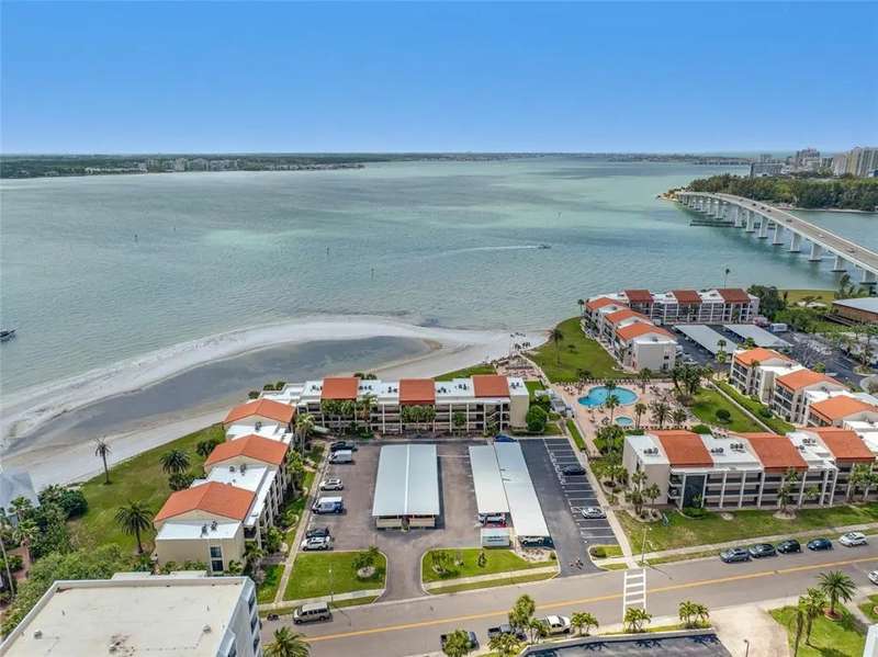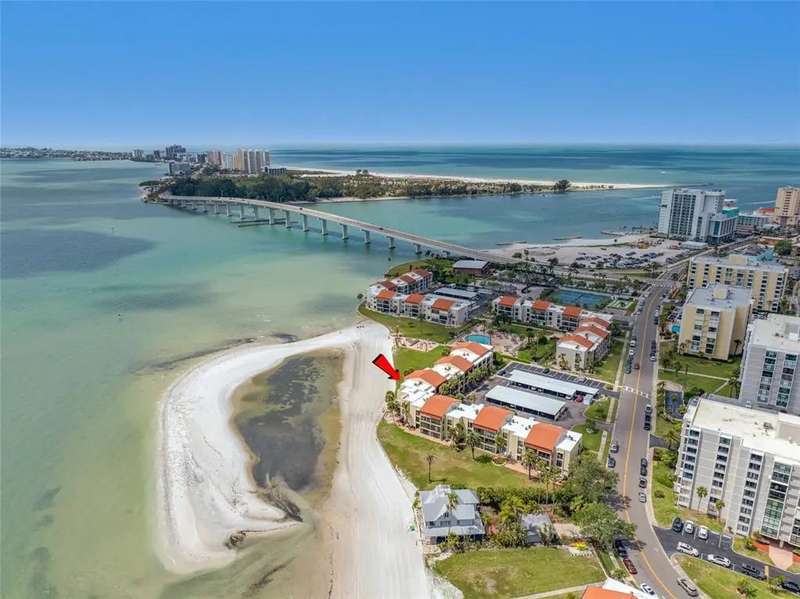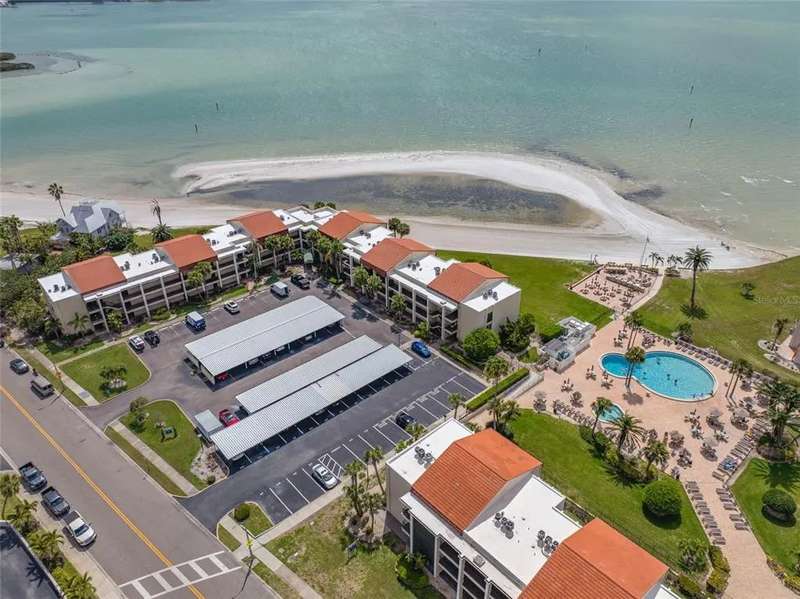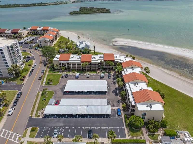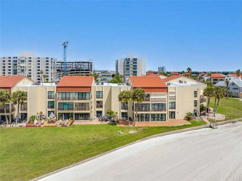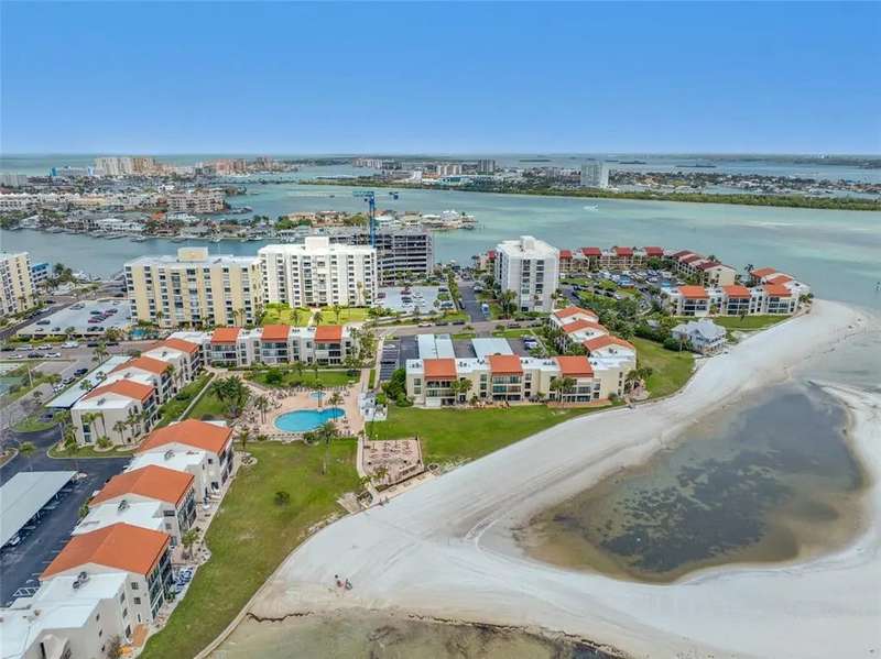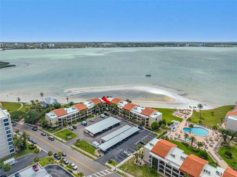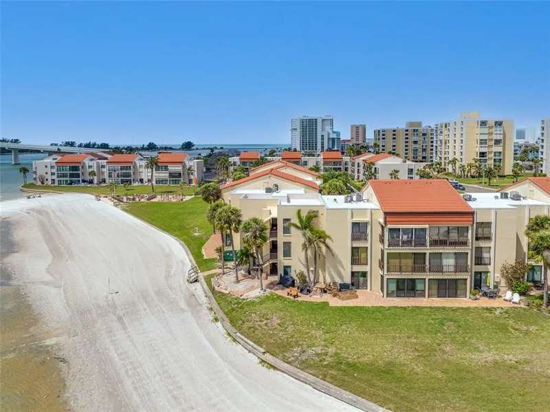 Welcome to the most desirable low rise building with breathtaking water views and your very own private beach. Here is a piece of paradise you have been waiting for! This 2 bedroom 2 bathroom open floor plan comes with an outdoor storage locker, covered parking space and a great outside entertainment patio with a fire pit. New A/C unit replaced in 2024. This community has 3 pools, tennis courts, shuffleboard as well as pickleball court and BBQ area. There is a common laundry on the first and third floor. Short term rentals and pets are not allowed! This is an amazing location within Clearwater Beach and an opportunity not to be missed. Units like this rarely come up for sale in this building! HOA fees are only $769 per month. This building passed the milestone inspection with flying colors! Close to all restaurants and shopping on the beach. Two international airports only 30 min away.