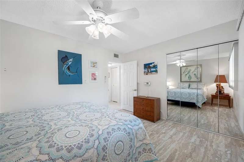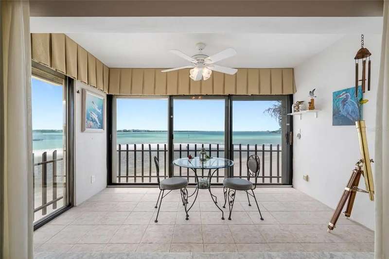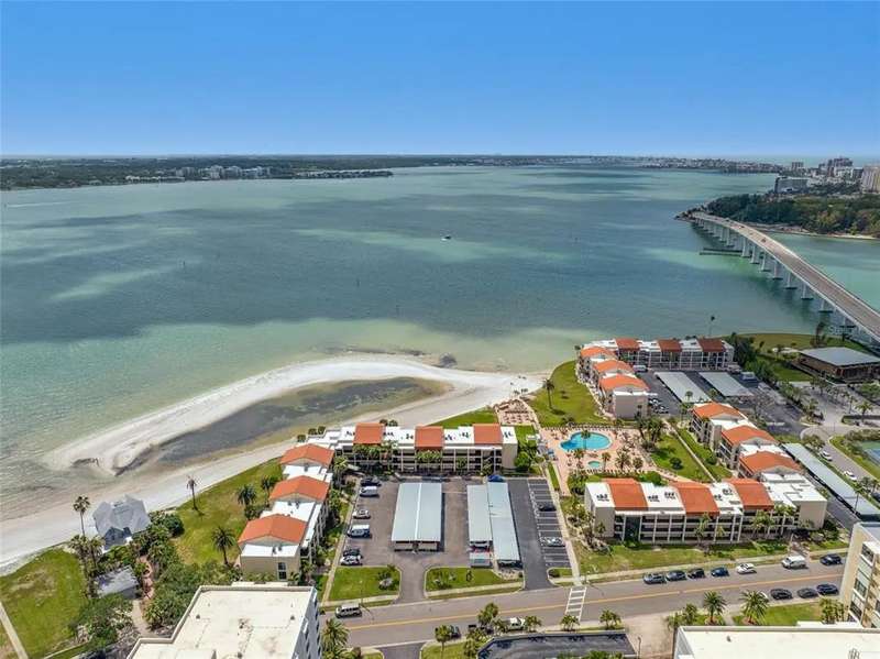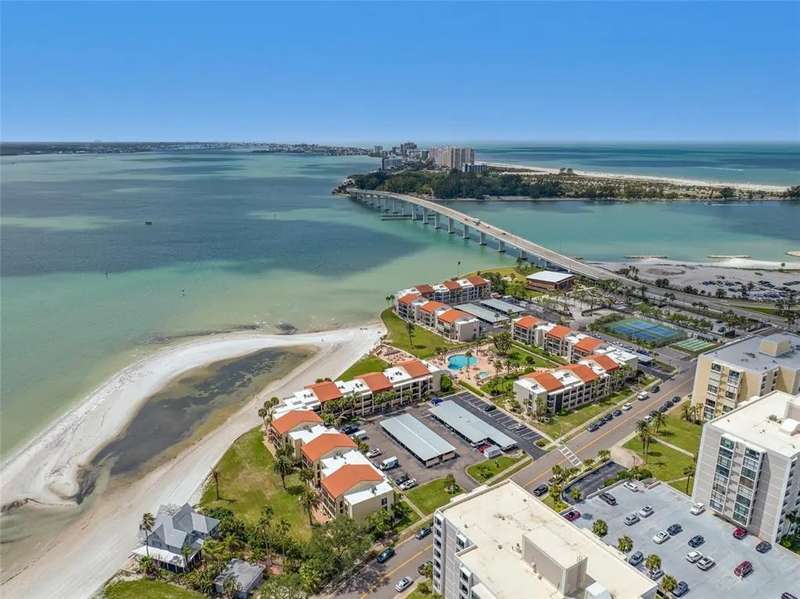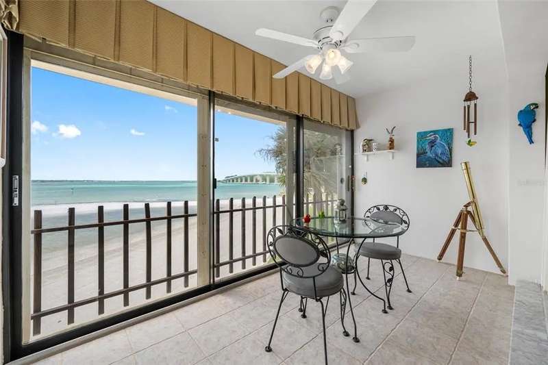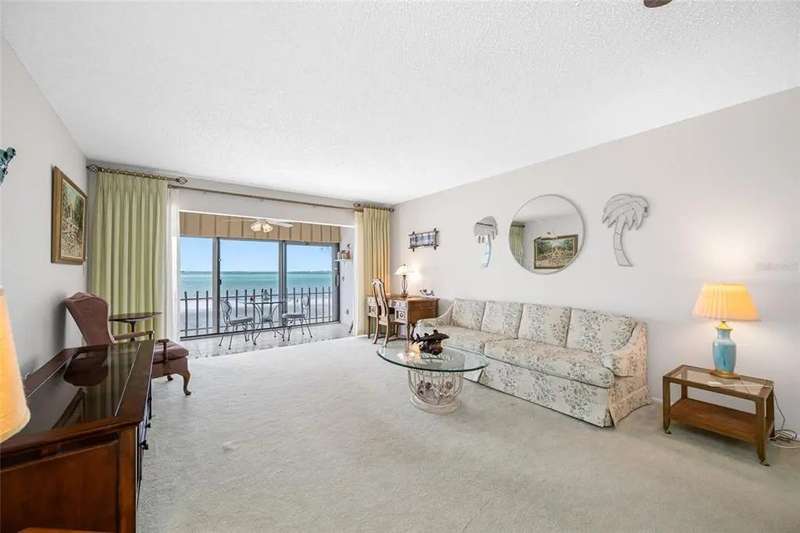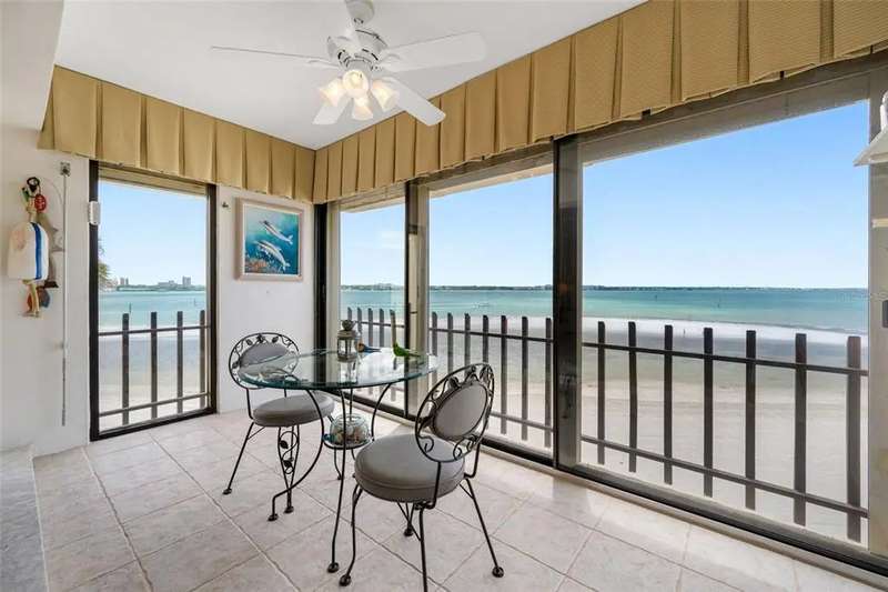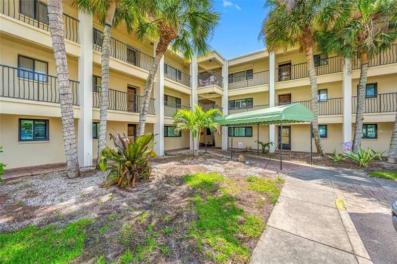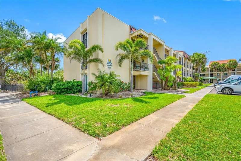 Welcome to the most desirable low rise building with breathtaking water views and your very own private beach. Here is a piece of paradise you have been waiting for! This 2 bedroom 2 bathroom open floor plan comes with an outdoor storage locker, covered parking space and a great outside entertainment patio with a fire pit. New A/C unit replaced in 2024. This community has 3 pools, tennis courts, shuffleboard as well as pickleball court and BBQ area. There is a common laundry on the first and third floor. Short term rentals and pets are not allowed! This is an amazing location within Clearwater Beach and an opportunity not to be missed. Units like this rarely come up for sale in this building! HOA fees are only $769 per month. This building passed the milestone inspection with flying colors! Close to all restaurants and shopping on the beach. Two international airports only 30 min away.