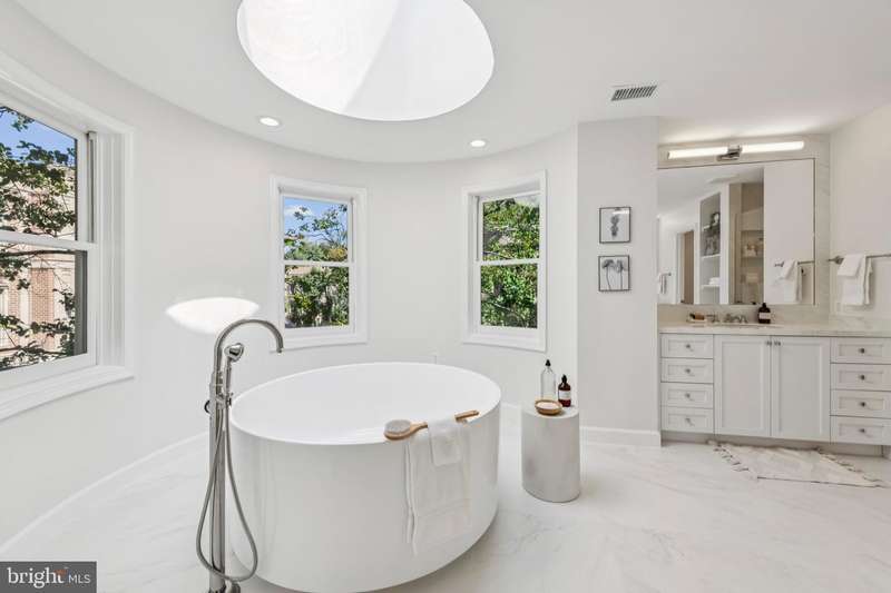 Welcome to this beautifully updated 4-bedroom, 4.5-bath brick home offering more than 4,500 square feet of light-filled living space on a quiet street in one of Washingtons most sought-after neighborhoods. Designed for both comfortable daily living and effortless entertaining, this residence combines timeless style with modern upgrades.The main level boasts a renovated eat-in kitchen featuring Neolith countertops, modern cabinetry, and new stainless-steel appliances. An elegant dining room, expansive sun-filled living room with dramatic floor-to-ceiling windows, and a convenient powder room create a seamless flow for gatherings both large and small.On the upper level, each of the three generously proportioned bedrooms enjoys a private en-suite bath. The luxurious primary suite includes two walk-in closets along with a spa-like bathroom complete with a soaking tub, walk-in shower, dual vanities with upgraded lighting, and polished nickel fixtures throughout.The walk-out lower level offers an expansive family room with a wall of windows overlooking the private garden and patio. This level also features a large bedroom with direct access to an updated bathroom, plus a versatile bonus roomideal for a gym, office, or media space. A storage room and a spacious laundry room with custom built-ins add to the homes exceptional functionality.Perfectly positioned just minutes from Georgetown, the C&O Canal, and Palisades shops and dining, this home offers the best of city living with a serene neighborhood setting.
