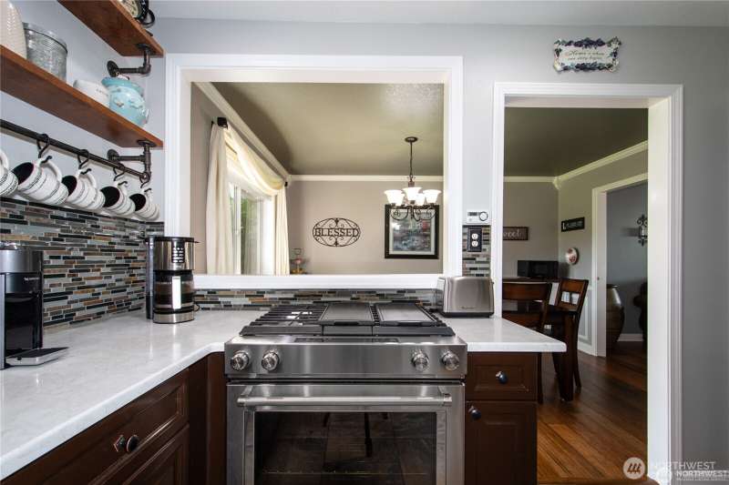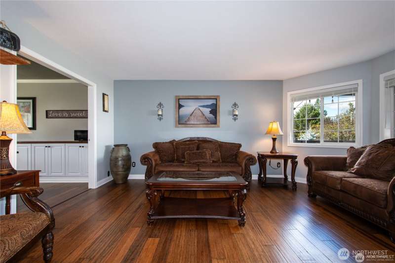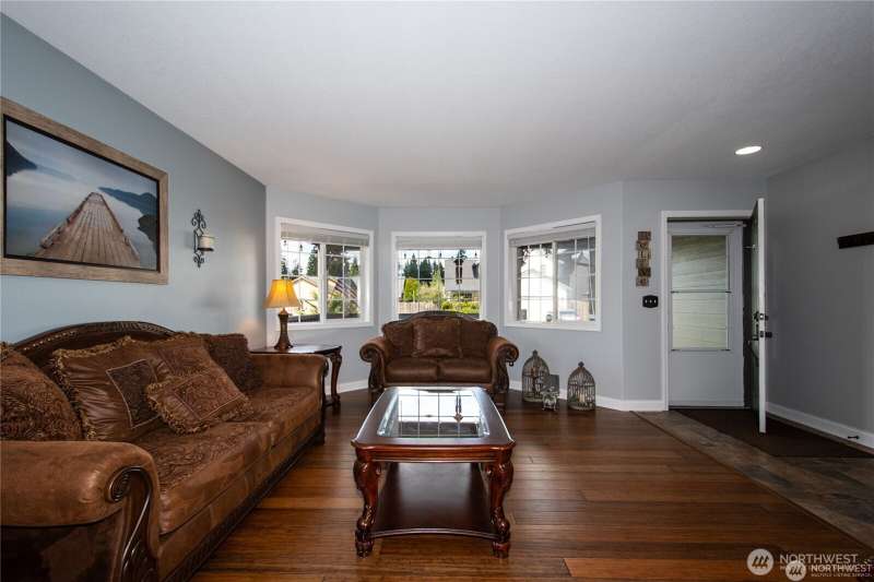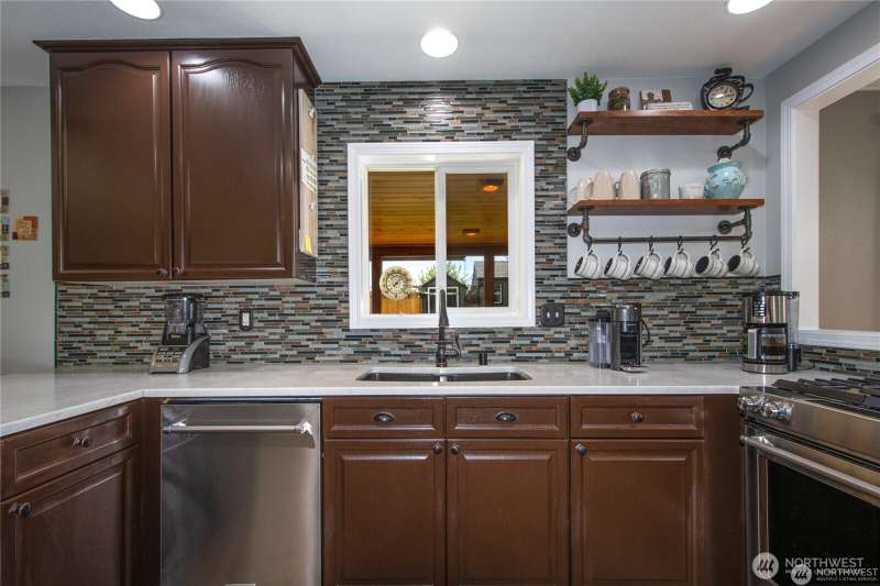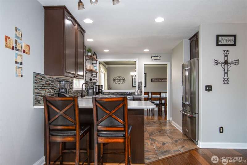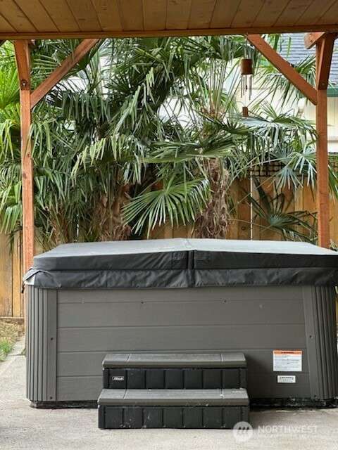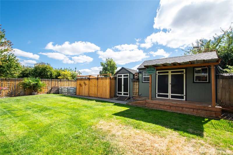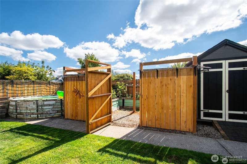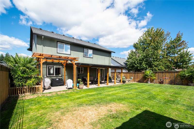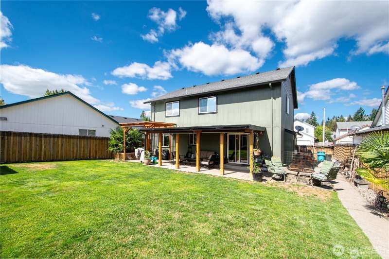 Entering this home you'll find beautiful bamboo flooring, porcelain tile, formal living & dining rm. w/black walnut countertop buffet. The kitchen boasts newer top of the line appliances, gas stove, quartz countertops, eating bar, pantry & 1/2 bath w/granite countertop. Lovely primary bedroom w/ensuite bath, & walk in closet. Upper level also offers 3 spacious bedrooms all with walking closets & an additional full bath. Step out to the great fully fenced backyard that features beautiful walkways, large covered patio, covered pergola, hot tub and more. 2 out buildings for ample storage (lg one has power), raised garden beds, firepit, & RV parking. The roof is 11 years old w/50-year warranty. This home is priced to sell!