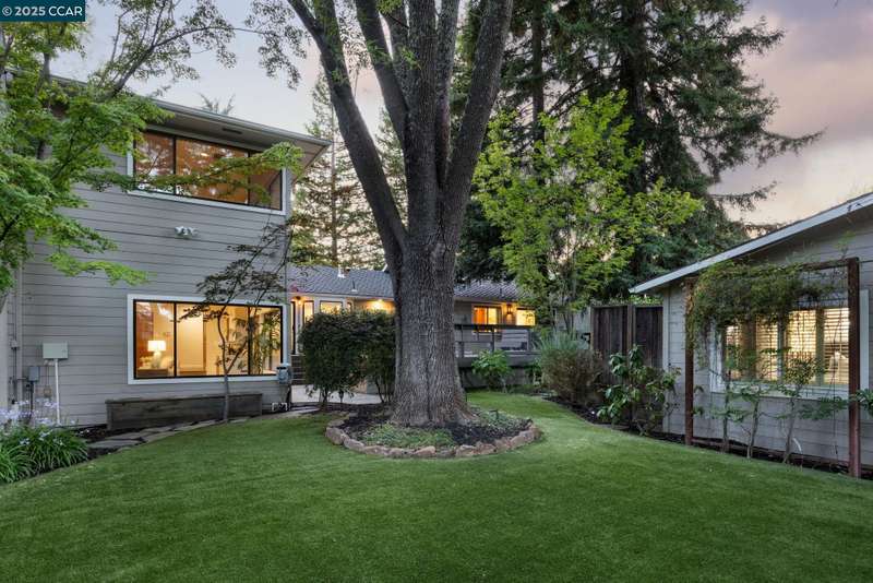 Luxury Home and Guest House set within an expansive private oasis in the heart of Reliez Valley. This exceptional property offers unparalleled luxury and privacy with 3,297 sq ft in the main house and 724 sq ft in the guest house, both updated for modern comfort and sophisticated design. The estate boasts a sprawling landscaped yard with a pool, spa, and various fruit trees, ideal for relaxation and entertainment. The main house features 4 bedrooms + office and 3 remodeled bathrooms, including a primary bath with a double shower, heated floors, and a light therapy jetted tub. The chef's kitchen is equipped with top-of-the-line Miele and Wolf appliances, stone counters, and an aquarium. A spacious family room with built-in cabinetry, fireplace, wine closet and sliding door that leads to the backyard. The guest house is a private retreat with a full kitchen, bathroom, laundry, and separate address and driveway, perfect for guests or tenants. This meticulously curated estate offers a serene, resort-like atmosphere in a coveted location with hiking, shopping, transportation and award winning Lafayette schools all in close proximity.