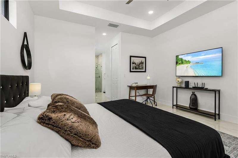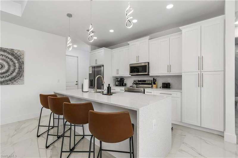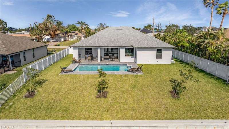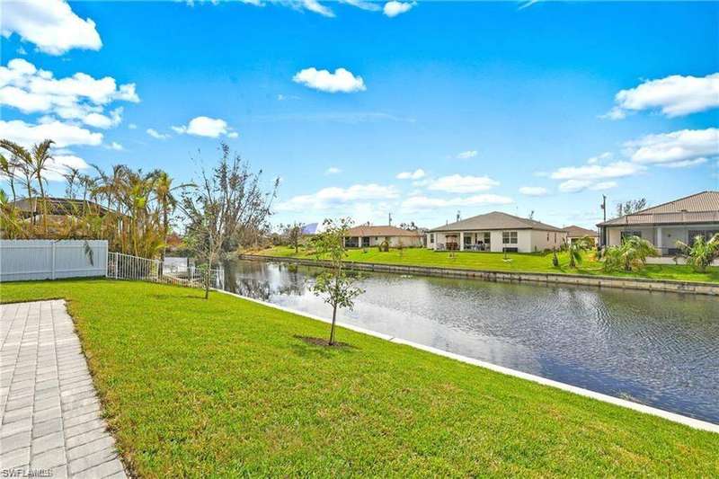 Welcome to Your Waterfront Paradise on a Beautiful Freshwater Canal! NO FLOOD INSURANCE REQUIRED. Nestled in a prime location, this stunning home exudes pride of ownership from the moment you arrive. As you approach, the double front glass doors open to reveal a bright, modern interior with soaring ceilings and high-gloss tile floors that set the tone for the rest of the home. The open-concept, split-bedroom layout is perfect for both everyday living and entertaining. Offering 4 spacious bedrooms and 2.5 bathrooms, this home is ideal for larger families and presents an incredible opportunity as an investment property. Currently operating as a successful Airbnb, it comes with upcoming bookings that can be transferred to the new owners, making it a truly turnkey property. Step outside and you'll find a large paved lanai with a sparkling inground pool, perfectly positioned to take full advantage of the southern exposure and soak up the sun all day long. The home also boasts an epoxy-finished garage floor, adding to its modern appeal. For water lovers, the freshwater canal offers endless opportunities for fun, whether you prefer kayaking, paddleboarding, or cruising on a paddleboat. No flood insurance needed. The large, fenced yard ensures complete privacy, making it the perfect place to unwind and enjoy the serene surroundings. This is more than just a home; it's where living begins-your own slice of paradise. Fully turnkey and ready for you to move in and start enjoying life on the water today! *VETERAN FRIENDLY*