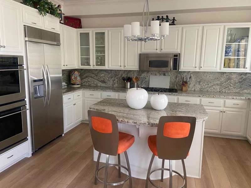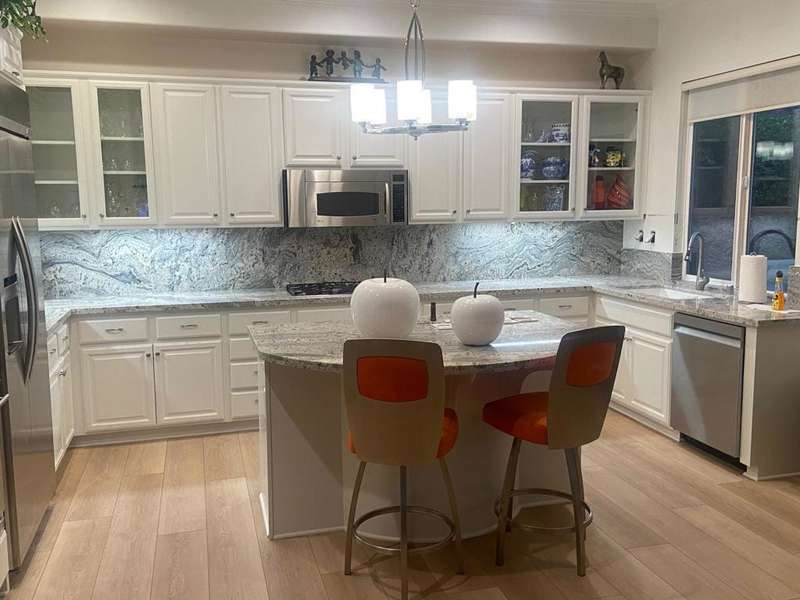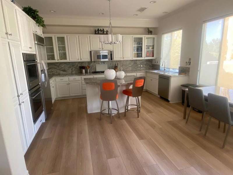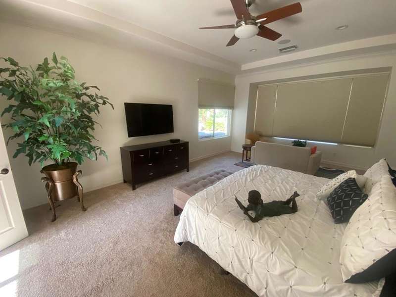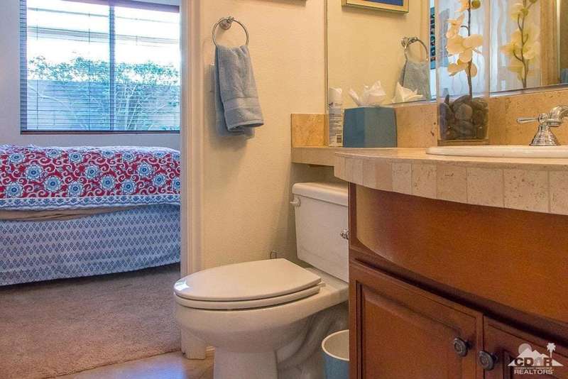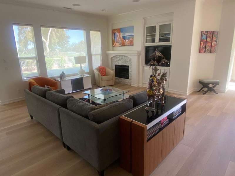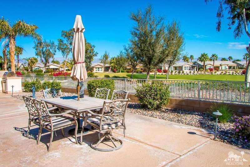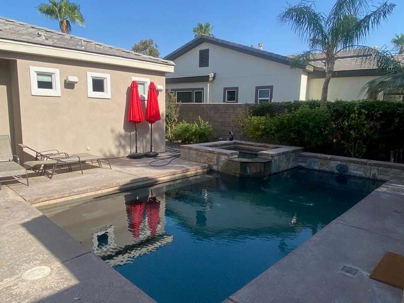This property is available all summer months. Available DEC. AT 5000.00 RENTED JANUARY 1-26 thru MARCH 1-31-2026 AT 9000. Available APRIL 2026 10,000.00. All other months available during summer at a lower price.. Book now for one of Trilogy at La Quinta's most desirable residences, this Mesquite plan with detached casita is located right on the golf course on 7th green and features beautiful views. An impressive home site boasts a gated entry courtyard with a pool, spa, rock waterfall, and a backyard space that is equipped with a built-in BBQ bar and outdoor seating around a cozy fire pit. Approx. 2,789 s.f., the 1-level design features tile, designer paint and carpet, custom window coverings, high ceilings, and a split 3-car garage. Enjoy 4 bedrooms, 4 upgraded baths, a den/office, formal dining room, a fireplace-warmed great room with surround-sound and media center, and a chef's kitchen with island, bar seating, pantry, custom backsplash, granite countertops, a nook, and stainless steel appliances.