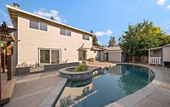 Large, 2,149 +/- sq ft home in fabulous Hamann Park neighborhood. Easily adaptable floor plan provides a great opportunity to customize and transform this house into your dream home. Downstairs is bright and spacious with large great room/family room, kitchen, primary bedroom, and bathroom with pool access. Large sliding doors from great room open to low maintenance rear yard with refreshing pool, and pavered patio. Lots of living space upstairs with 5 bedrooms and office, and spacious bathroom. Pavered driveway. Newer windows throughout. Close proximity to downtown Campbell and idyllic Hamann Park. Easy commuting access to Highways 17 and 280, Winchester, and San Tomas.