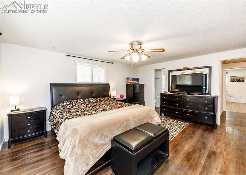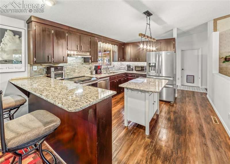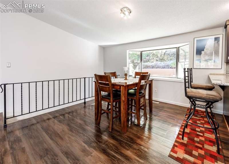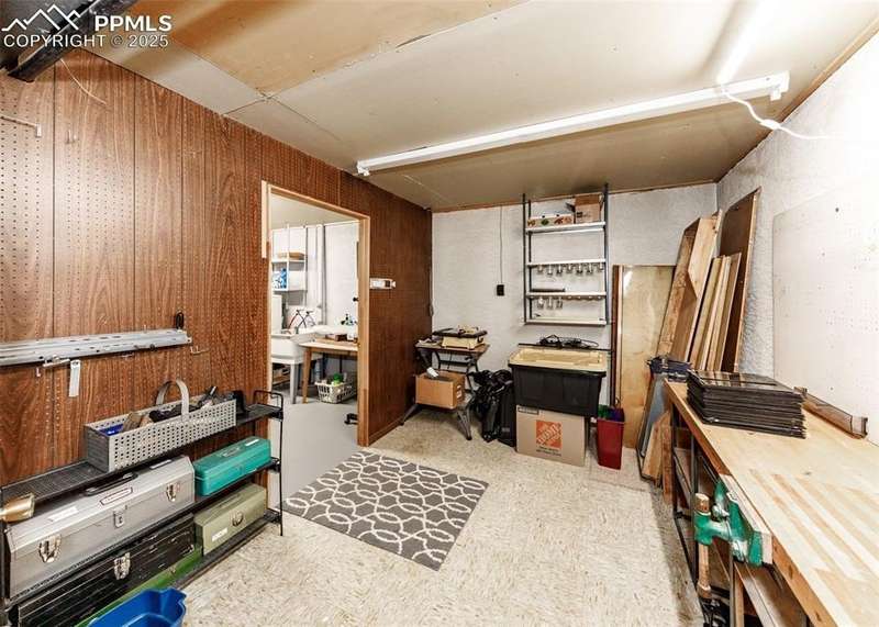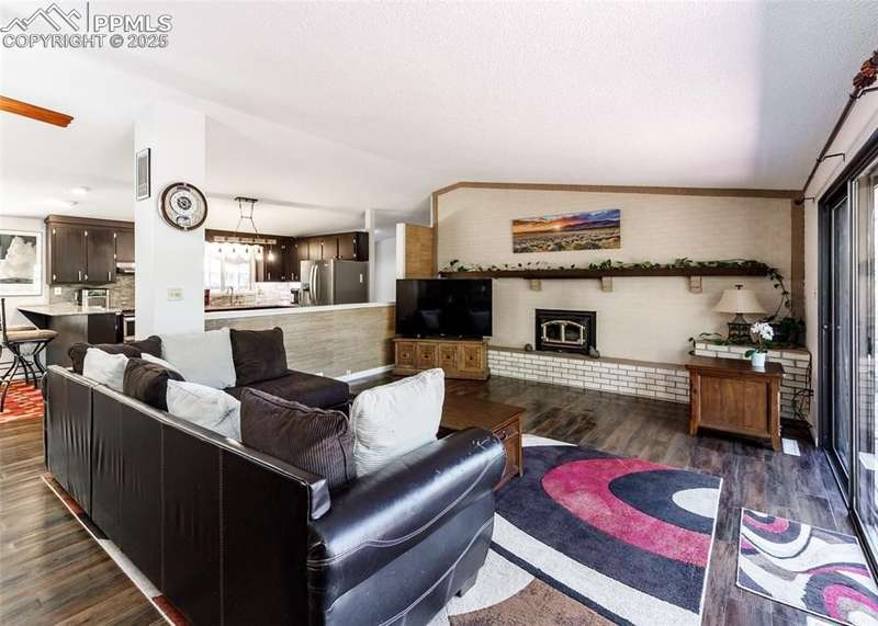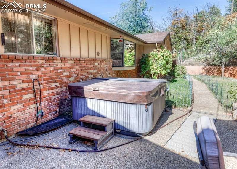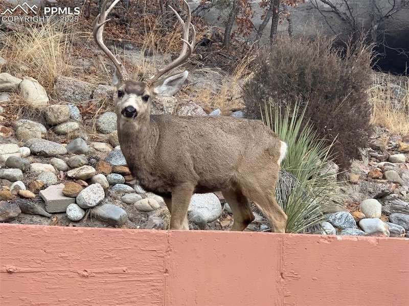 Hidden way way off the road behind towering pines & giant scrub oak with mountain, city & Pikes Peak views. One family custom 5 bedroom, 2 1/2 bath rancher on 2.5 forested acres with over 3600 sq ft, a 2 car attached garage + a 1 car attached carport ~ Open concept floor plan with lots of glass & sunshine, remodeled slab granite & stainless steel island kitchen ~ All LVP & hard surface flooring throughout except on the stairs ~ laundry sink ~ 2 fireplaces ~ Workshop with bench & vices~ whole house water filter & new reverse osmosis ~ A/C ~ hot tub ~ pond with waterfall ~ gazebo ~ paved south facing driveway ~ brand new roof ~ 2 wood burning fireplaces ~ 22x20 rear patio with hot tub, flat lawn area, large fenced in dog run, 27x12 new front deck ~ Hoodoo rock formations ~ newer furnace, a/c, 50 gal hot water heater, well pump & line to house, appliances, interior & exterior paint ~ septic just inspected, cleaned & certified ~ lot goes all the way to the top of the ridge where there is a walking path & breathtaking views ~ Horses allowed & there is room for a barn ~ county property surrounded by city. Other rooms are finished shop & unfinished storage room. Baths & windows are original- great family home with all oversized bedrooms- immaculate & "move in" ready. No HOA
