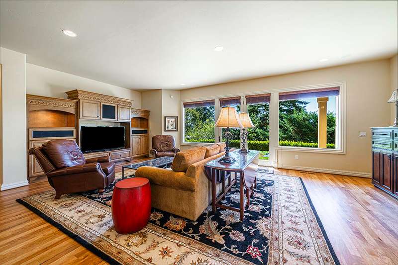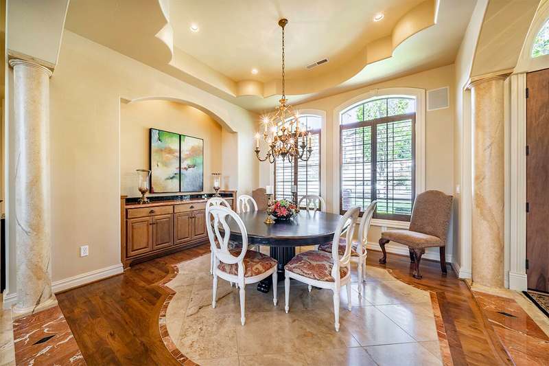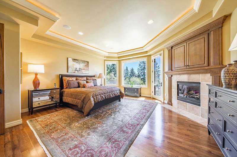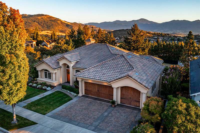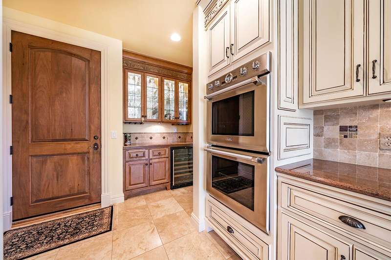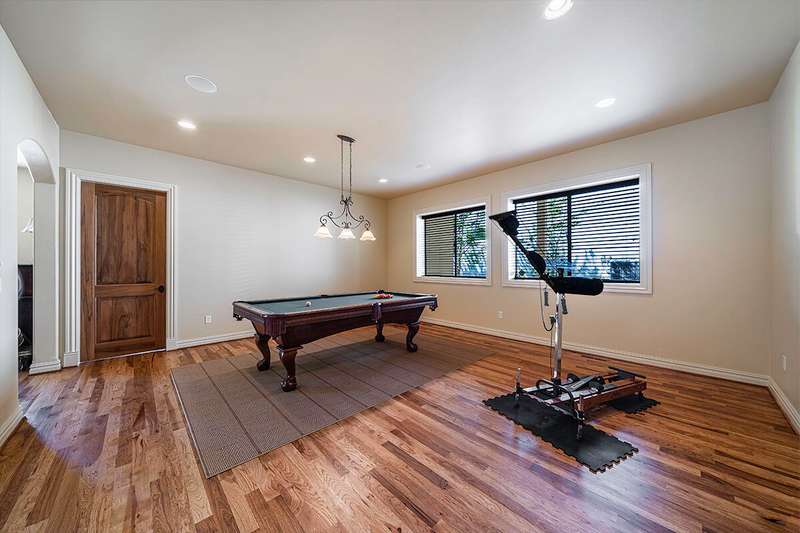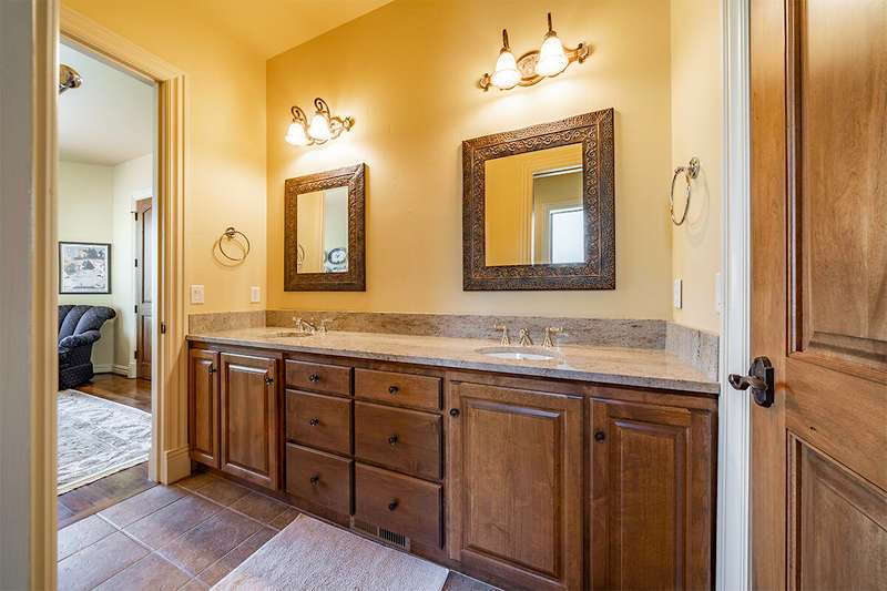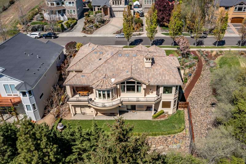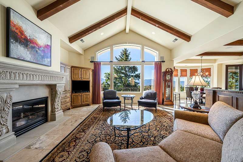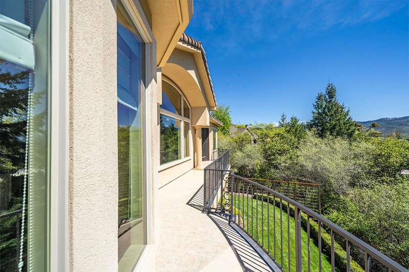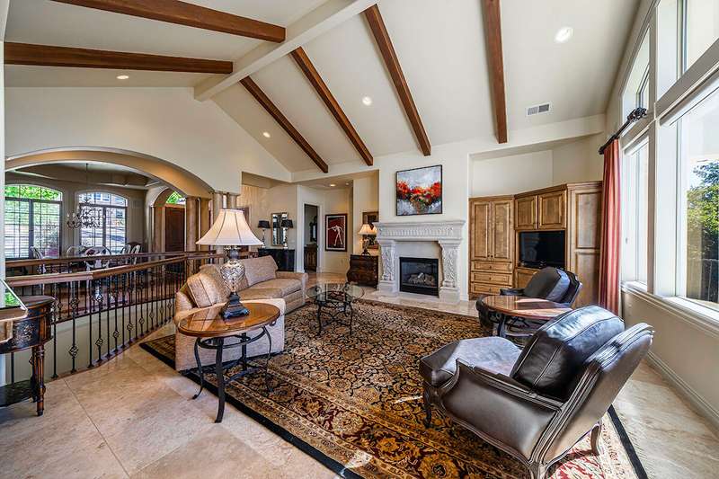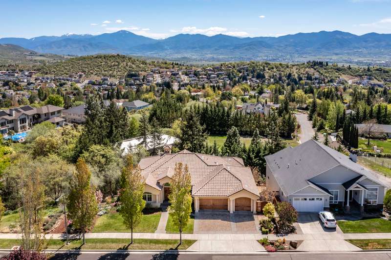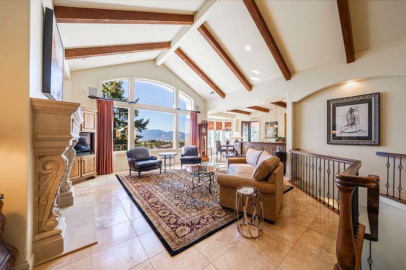 Luxury living, valley views, breathtaking Pagnini designed home. From vaulted/beamed/tray ceilings to travertine/hickory hardwood flooring, every detail exudes sophistication & style. Barrel ceiling in foyer. Cook's kitchen w/granite countertops, lg island w/butcher block, double ovens, gas cooktop, farmhouse sink, large pantry. Spacious living & dining rooms, generous laundry room w/utility sink, built-in cabinetry, pedestal for W/D. Stunning office w/custom cabinetry. Main level primary suite w/spa-like ensuite, dual vanities, jetted tub, oversized shower, walk-in closet, gas fireplace. In lower level, spacious family room w/wet bar, kitchenette & media center, large game/exercise/bunk room, plus 2 bedrooms w/Jack & Jill bath. 1200 sf dry storage area under house. Overlook valley/city lights from custom deck w/gas fireplace, Sun Setter awning. Conservancy borders east side of property adding privacy. Water fountain, stucco exterior, tile roof, private shop, oversized 3-car garage.