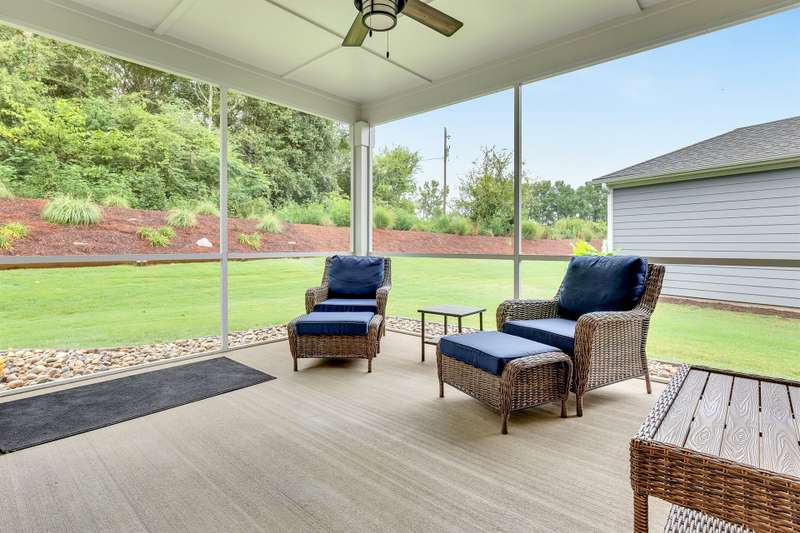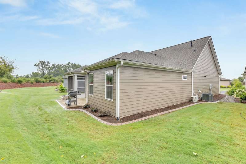 Custom Comfort and Style?All on One Beautiful Level (Plus Bonus!) This custom 1.5-story home showcases a well-planned layout, exceptional craftsmanship, and smart upgrades throughout?all designed for effortless living and timeless style. From the moment you arrive, you'll notice the intentional flow. Take a minute and re-enter through the garage into a drop zone that's perfect for unloading groceries, yard gear, or workout bags. From there, you can pivot into the kitchen or head through the laundry room and directly into the owner's suite?a smart layout that supports everyday routines. The main level includes three spacious bedrooms and two full baths, blending privacy with open, connected living spaces. 5? hand-scraped hardwood floors add warmth and character from the foyer through the great room, where tall ceilings and a beautiful fireplace create an inviting atmosphere. The kitchen is both functional and stylish, featuring soft-close drawers, slide-out shelving in the lower cabinets, generous counter space, pendant lighting above the island, and under cabinet lighting to enhance both ambiance and usability. The dining area connects seamlessly to the great room for easy entertaining and everyday gatherings. A screened porch at the back of the home invites quiet mornings or relaxed evenings, while the adjacent grilling pad makes outdoor cooking a breeze. Upstairs, the bonus room with a half bath adds flexibility?ideal for guests, hobbies, or a home office. A separate HVAC system (seller had this professionally installed - $11,000 addition) for the second floor ensures year-round comfort and energy efficiency. Outside, the exceptional care and attention to detail by the sellers shines through. While the HOA handles lawn care and irrigation, the backyard has been thoughtfully enhanced with concrete landscape edging, $2400 addition, fresh pine straw, and carefully selected plantings that turn the berm into a tranquil extension of the home. The property line does extend beyond the berm to the rear yard stakes, providing clarity on the full depth of the lot. Additional features include an electric vehicle charging station in the garage and an easy-flow design that supports comfortable, everyday living. Conveniently located close to shopping, dining, and entertainment, just minutes from downtown Simpsonville, and with quick access to downtown Greenville, this home pairs peaceful living with city convenience. From top to bottom, inside and out, this residence reflects quality, care, and thoughtful design?truly a standout home.