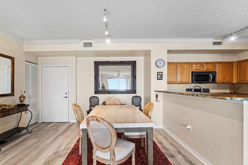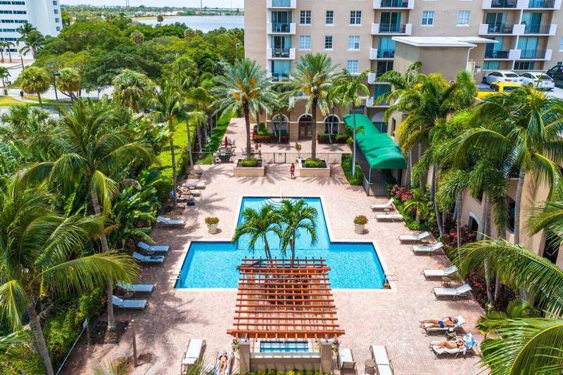This Fully Furnished 12th Floor unit in Downtown WPB features 2 ensuite bedrooms, updated kitchen cabinetry, stainless steel appliances and granite counter tops with updated flooring throughout. Gated covered parking for 2 vehicles. Electric vehicle charging available. Cable, Internet, Water and Sewer included in rent. Short term available, 7 month minimum. Enjoy resort style amenities including fiberoptic internet, 24-hour concierge, pool, jacuzzi, firepit, BBQ grill area, gym, sauna, social room w/TV, bar & billiard table, cyber business center, bike storage. Located minutes to Clematis Street, City Place, NORA, Flagler Drive, Palm Beach Intl Airport, I-95, the Brightline & Tri-Rail Stations.