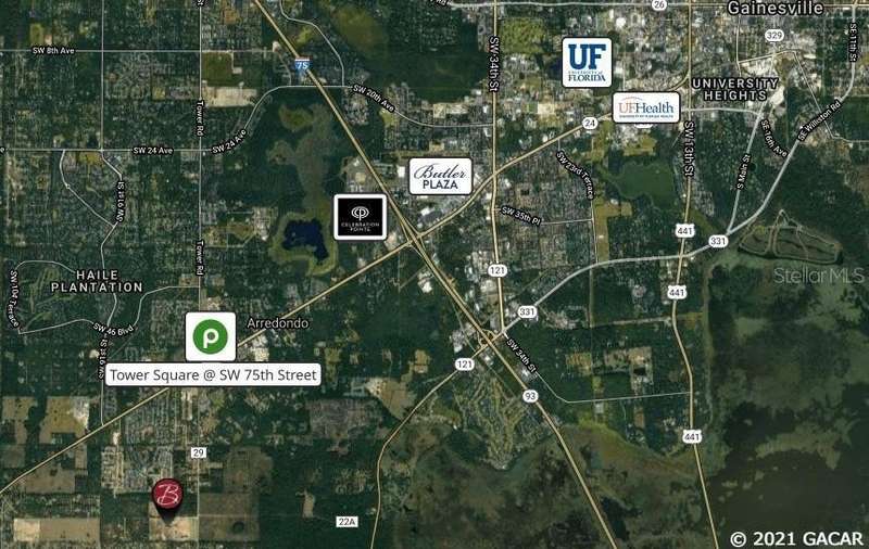 This exceptional, high and dry, approximately 106 Acres parcel is well suited for single family residential development. It is located 1-2 miles south of SW Archer Rd and the Tower Square Publix shopping center and includes over 1200 feet of frontage on SW 75th St, GRU water and possibly sewer (sewer needs to be verified) extend to the northern border of the property. The site is also located a few miles west of Celebration Pointe, Butler Plaza, and an easy 15 minute commute to the University of Florida and Shands Hospital. An additional, potential future ingress/ egress is located at the immediately adjacent Meadows of Kanapaha subdivision Phase 2 at SW 84th ST. This property is composed of multiple Alachua County TP #''s 07099-002-003 #07100-001-000, TP# 07099-002-004 , TP#07100-000-000 and TP# 07099-002-011.