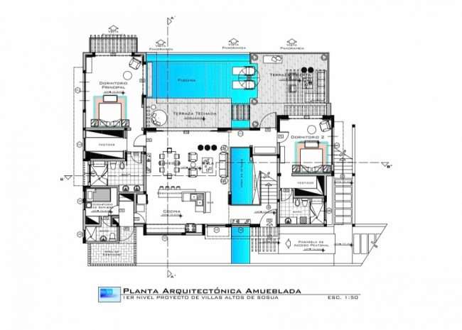 Overlooking the ocean from the top of Sosua's hills, the villas offer all comfort you might ask for. The concept of an open indoor living plan combining kitchen and living room is very much desired. Two and a half bedrooms are on ground level and the master bedroom is on the top floor with stunning ocean views. Stepping outside you find a beautiful terrace next to the pool which is partially covered.