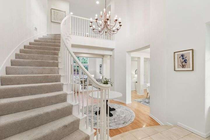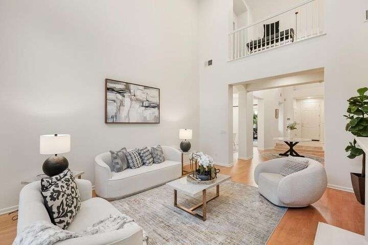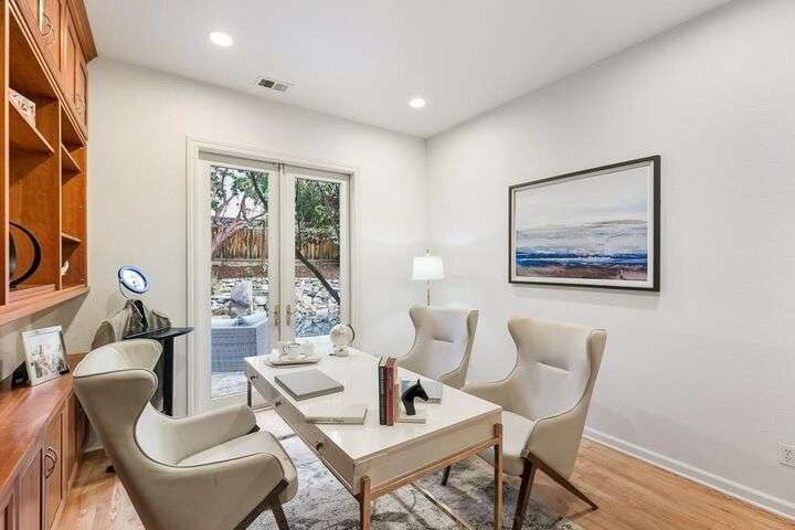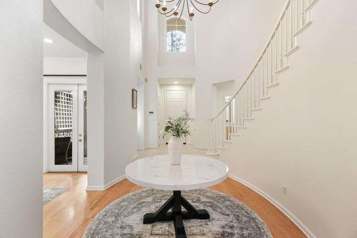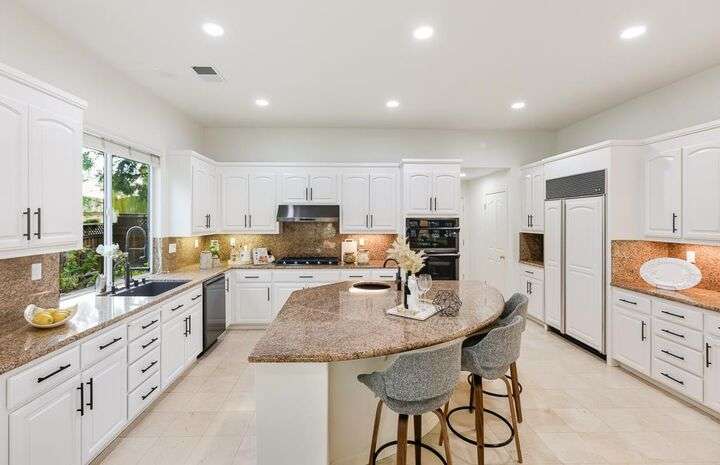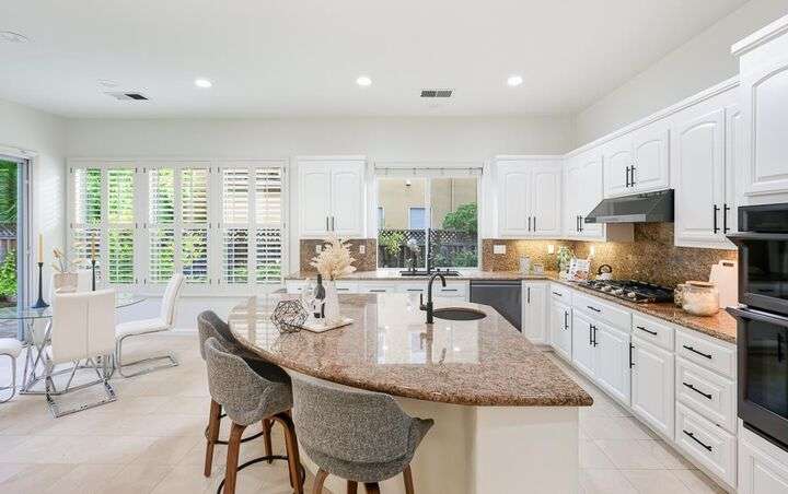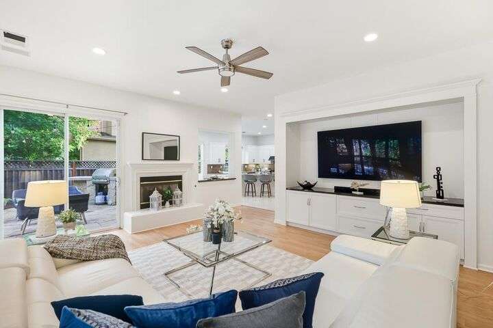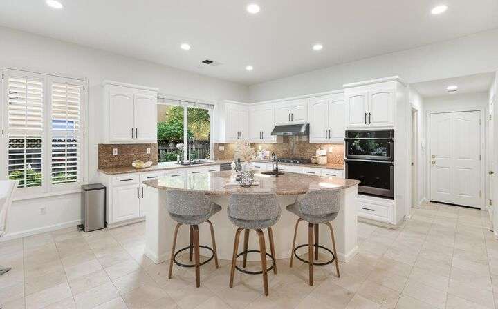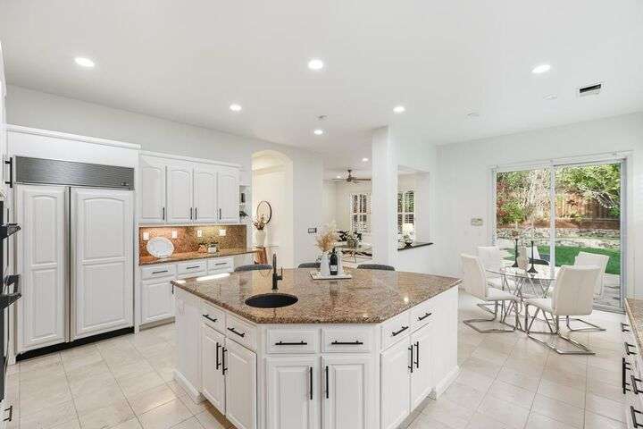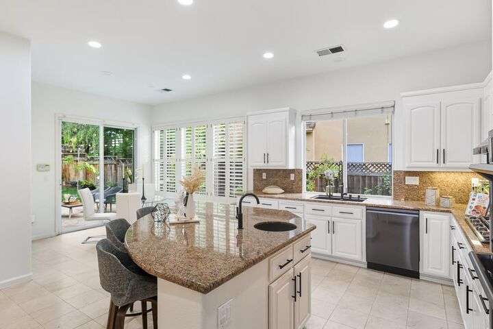 Perched atop one of Silver Creek Valley Country Clubs most coveted streets, this spectacular estate blends luxury, comfort, and functionality. With approximately 3,809 sq. ft. on an almost 12,000 sq. ft. lot, this 5-bedroom (4 plus office), 4.5-bath home offers an idyllic lifestyle complete with a sparkling pool and resort-style ambiance.The desirable floor plan suits families and multigenerational living, featuring two bedrooms on the main levelincluding a dedicated officeand a side play yard with a swing set. From the formal entry with soaring ceilings and hardwood floors, step into elegant, light-filled living spaces.The chefs kitchen showcases freshly painted cabinetry, stainless steel appliances, an expansive island, and a walk-in pantry. The family room offers a cozy gas fireplace and windows framing picturesque pool views. Upstairs, the primary suite is a serene retreat with a spa-inspired bath and custom walk-in closet, while two additional ensuite bedrooms offer comfort and privacy.Additional highlights include plantation shutters, solar panels, double-pane windows, an EV charger, and an entertainers backyard perfect for relaxing or hosting gatherings.Residents enjoy world-class golf, tennis, swimming, and dining amenities.