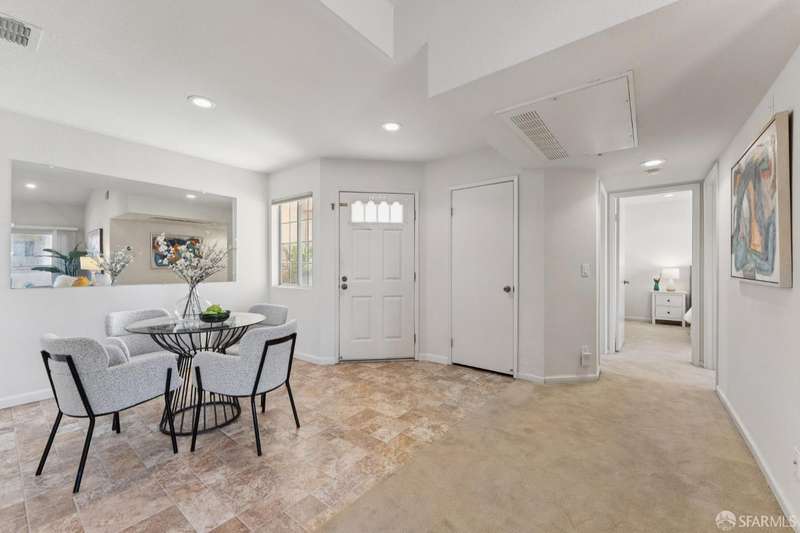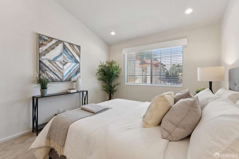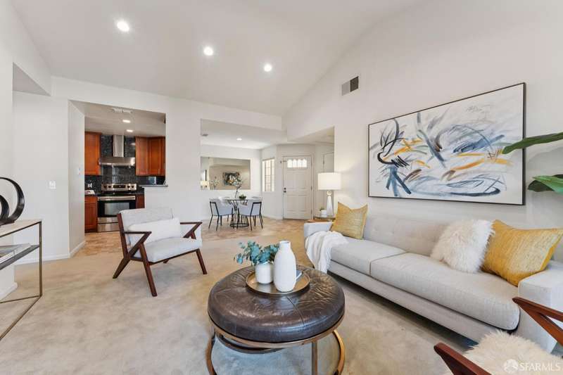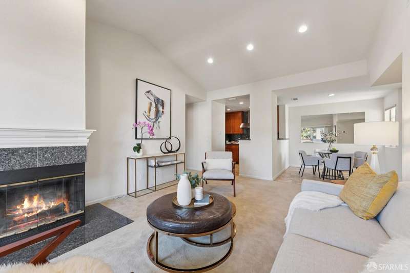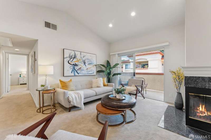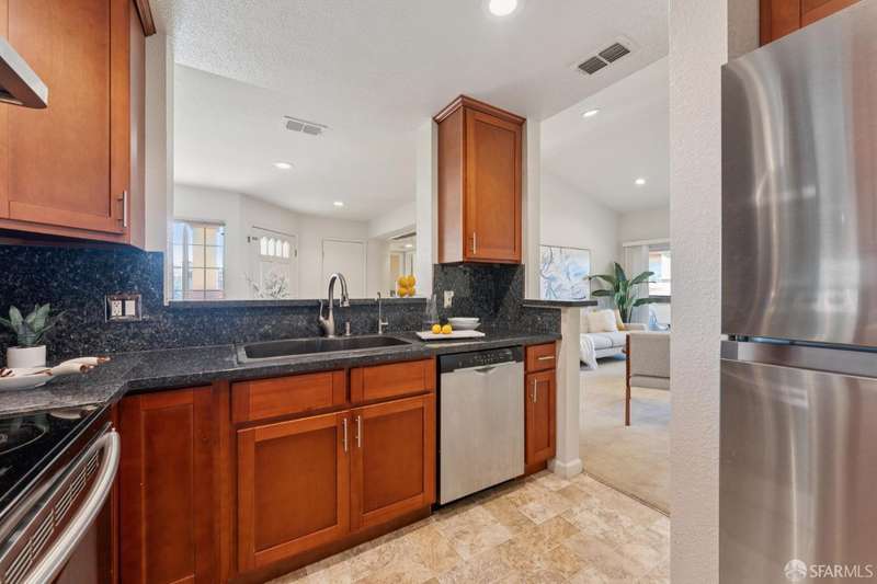 New Price! Don't miss this beautiful top-floor, 3-bedroom, 2-bath, single-level condo in the sought-after Alamo Creek Villas community. This light-filled home features an open floor plan with vaulted ceilings and modern finishes throughout. The inviting living room offers a cozy fireplace and a large sliding glass door that opens to a private patio perfect for relaxing or entertaining. The updated kitchen is appointed with granite countertops, stainless steel appliances, and a conveniently located laundry area.The private primary en suite is thoughtfully separated from the secondary bedrooms for added privacy. Bedroom three includes a walk-in closet, while bedroom two enjoys direct patio access. Additional highlights include recessed lighting, central A/C, and abundant natural light.A detached one-car garage, an additional assigned parking space, and ample guest parking add everyday convenience. Residents enjoy resort-style amenities including a clubhouse, fitness center, sauna, pool, tennis court, basketball court, and sand volleyball court. With low HOA dues covering water and garbage, this home offers incredible value.Ideally located near top-rated schools, scenic trails, Dougherty Hills Dog Park, BART, shopping, and freeways experience the very best of Tri-Valley living!