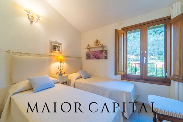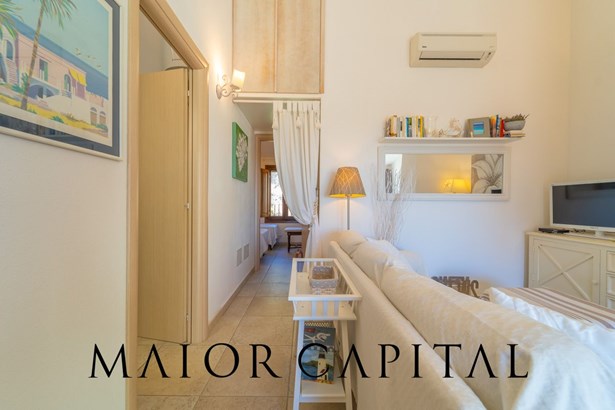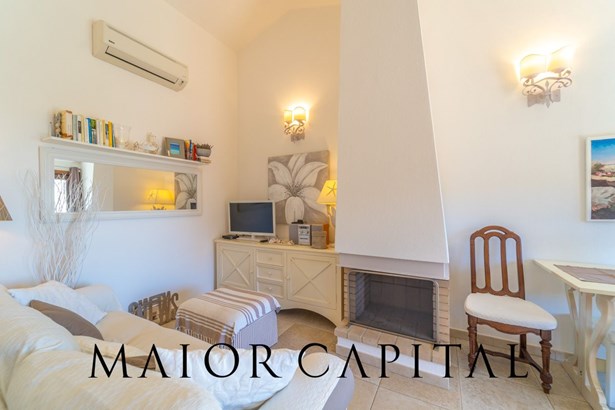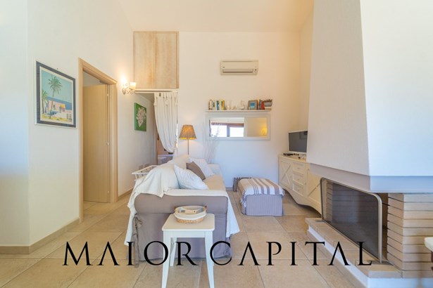 Inside, the refined ambience is made even warmer and cosier by the working fireplace, which creates an intimate atmosphere even during the autumn and winter months. The custom-made wooden furniture adds a touch of timeless elegance, making the house an ideal retreat even out of season.