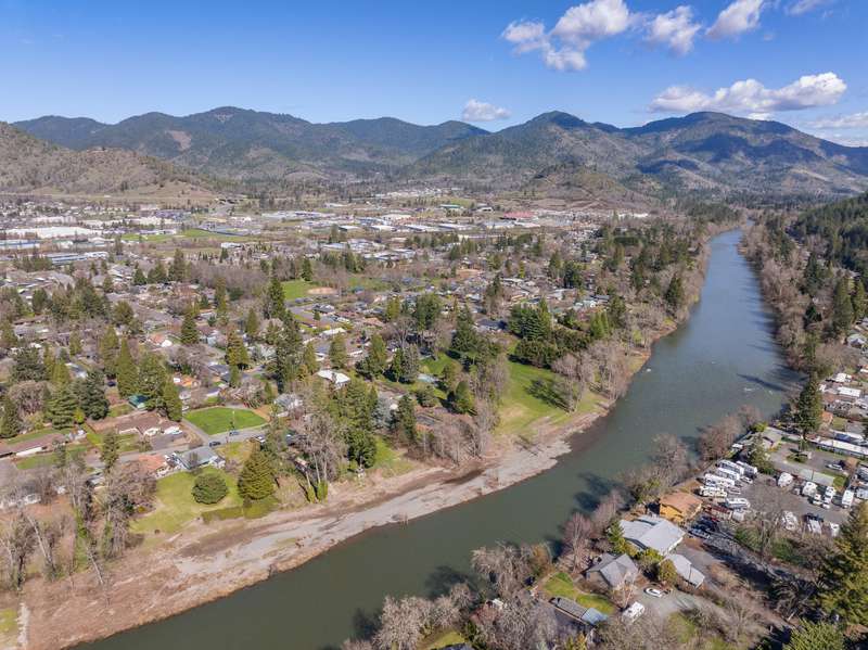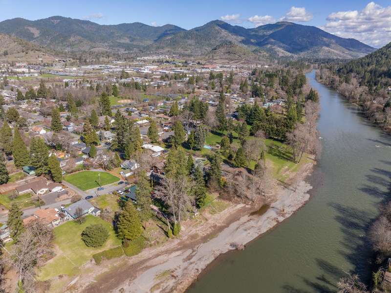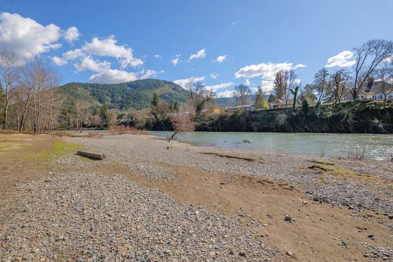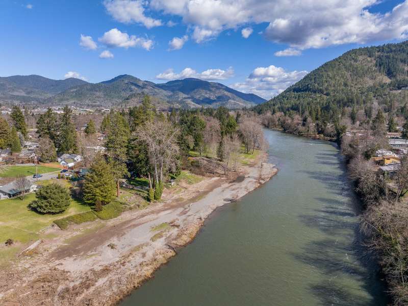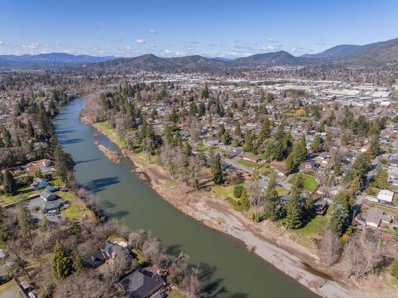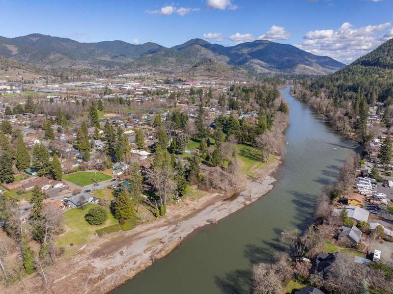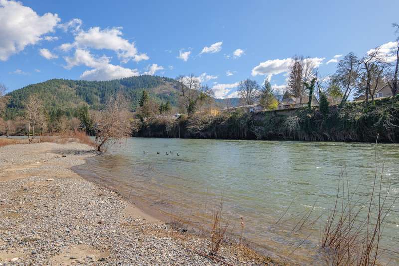 Nestled along a picturesque stretch of the Rogue River, this rare and breathtaking .33 acre parcel offers low-bank river frontage with easy, usable access. A gravel bar with a sandy beach lies between the homesite and the river, creating an ideal setting for relaxation and recreation. Situated down a quiet paved drive within a small, peaceful community, this property offers the tranquility of country living while still being within city limits. This is an exceptional opportunity to own one of the few remaining buildable riverfront properties in the area. The lot is already equipped with grid power and city water and sewer at the property line, making it ready for your dream home. There was previously a home on the property. The seller has removed the old structure and has engineered plans that mee county specifications for a new build, which are available for purchase separately. This is an impressive and rare find - don't miss your chance to own this remarkable riverfront property.